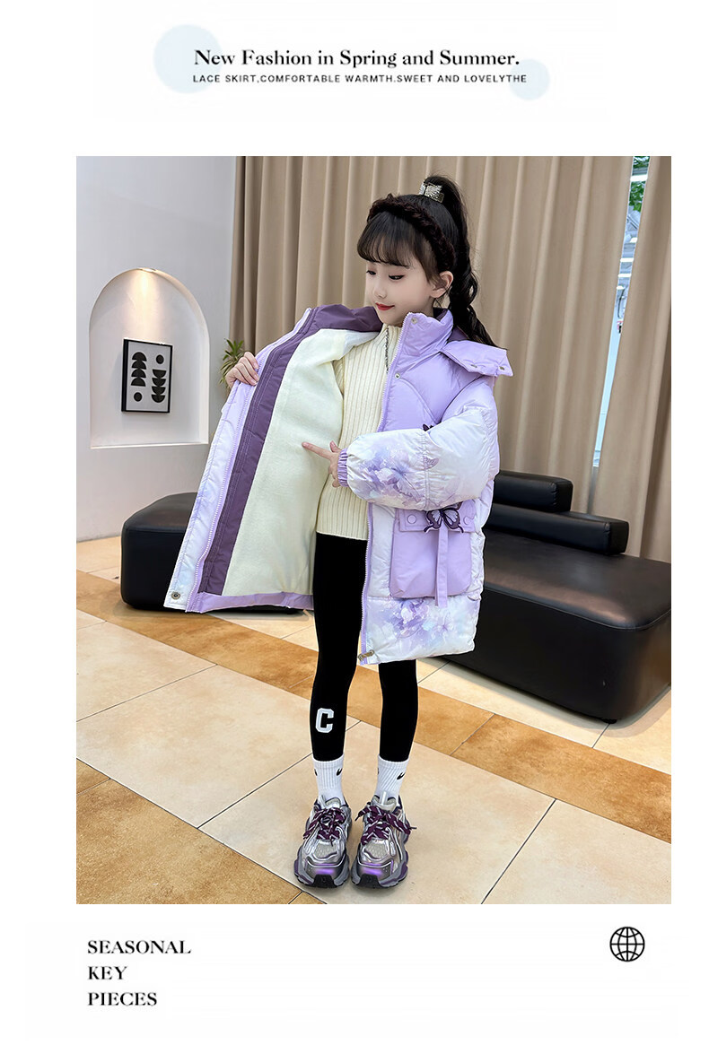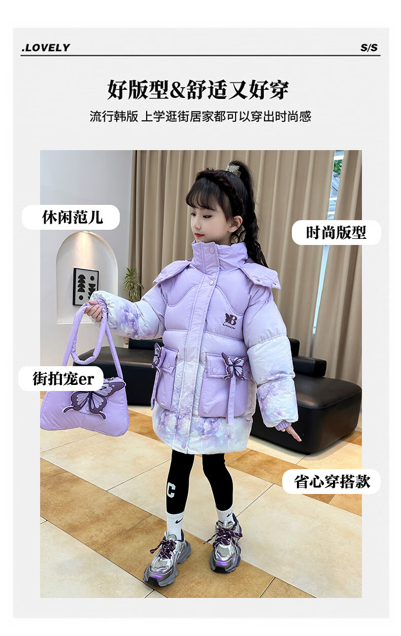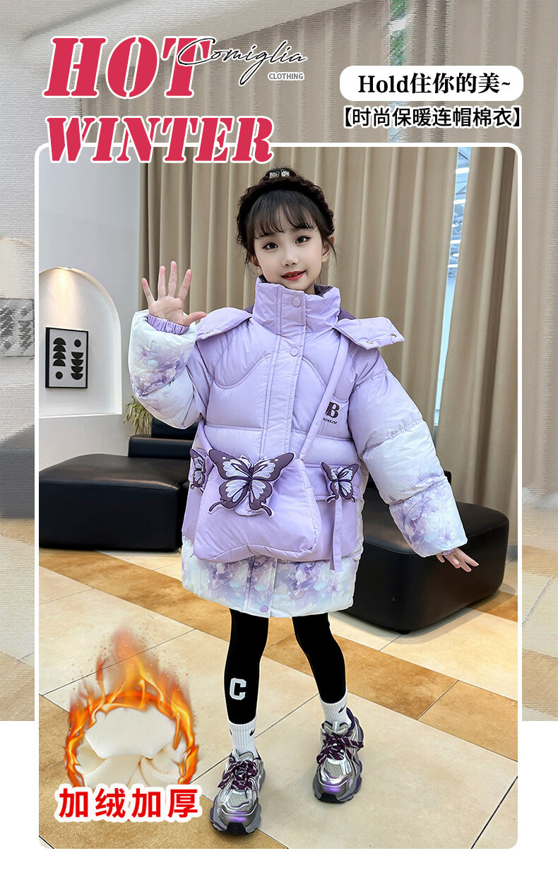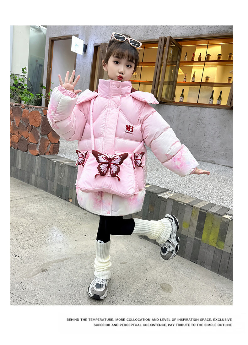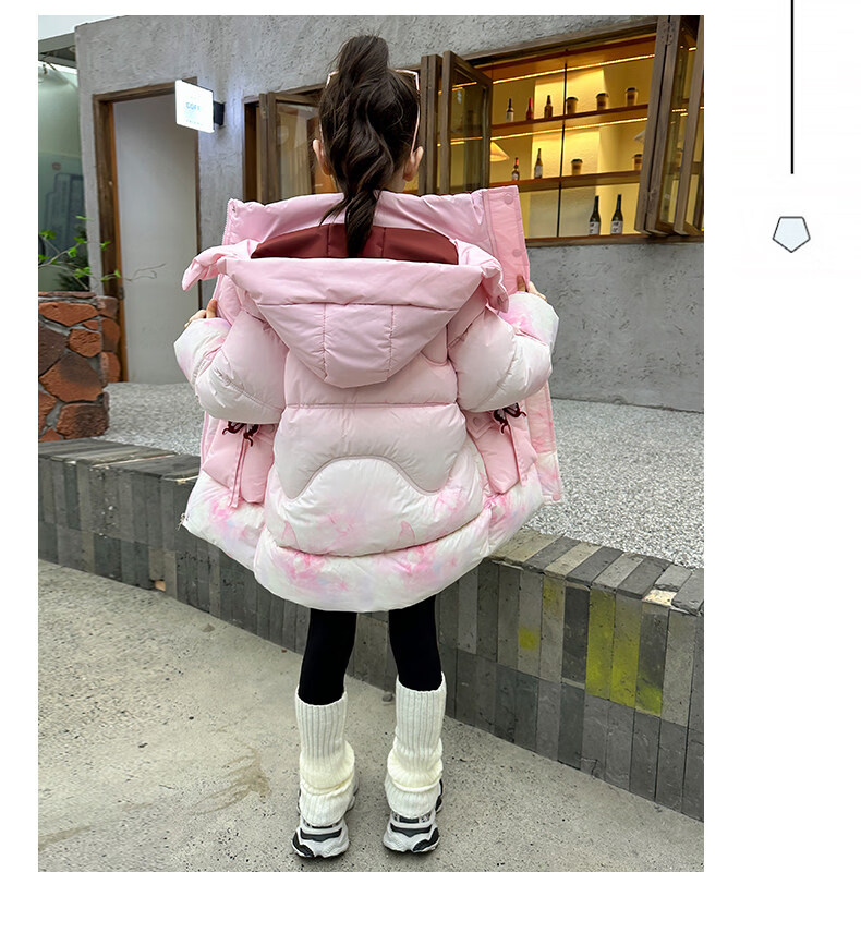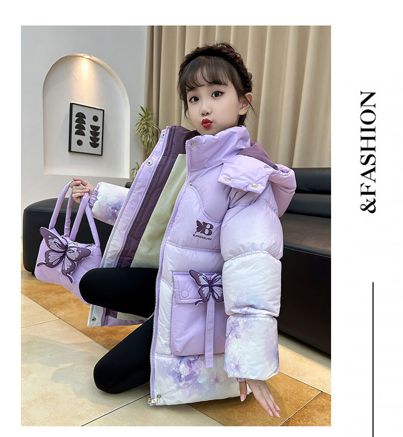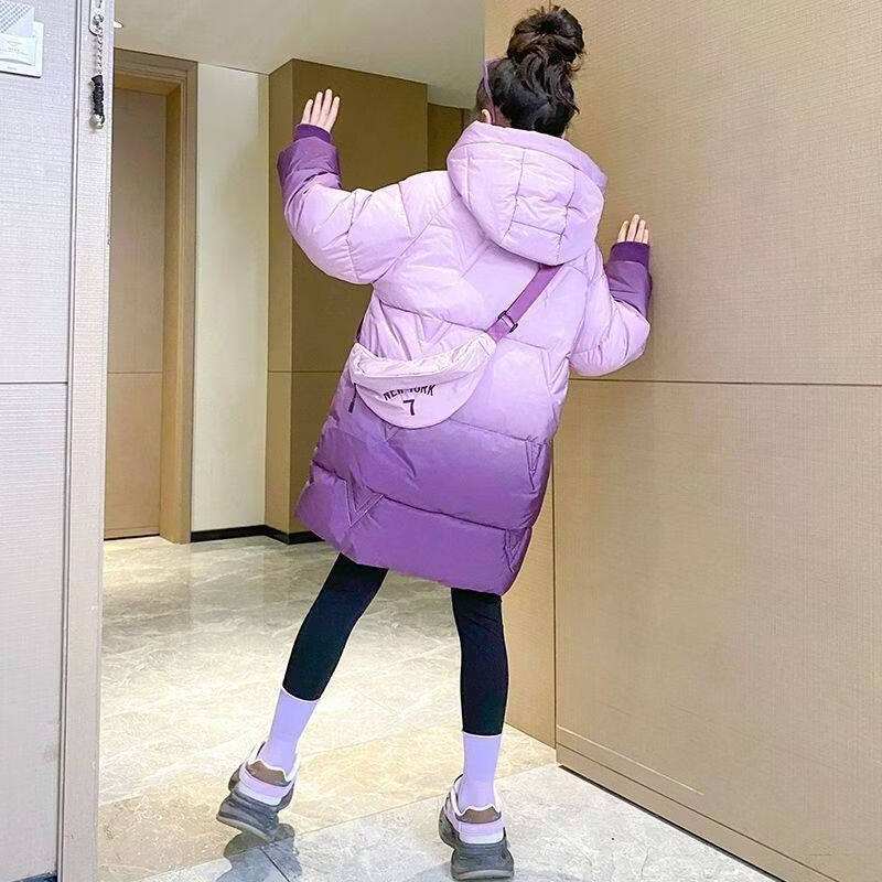 Disney Down Jacket Girls' Cotton Jacket New Winter Clothes Children's Cotton Clothes Gradient Medium and Big Children's Western Style Plus Velvet Thick Cotton Jackets Cotton Clothes Watermelon Red Egg Style Free Same Style Bag 130 (Recommended Height 115-125)
