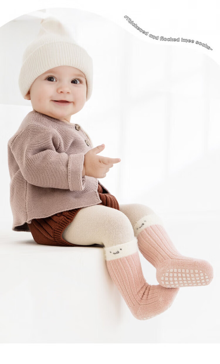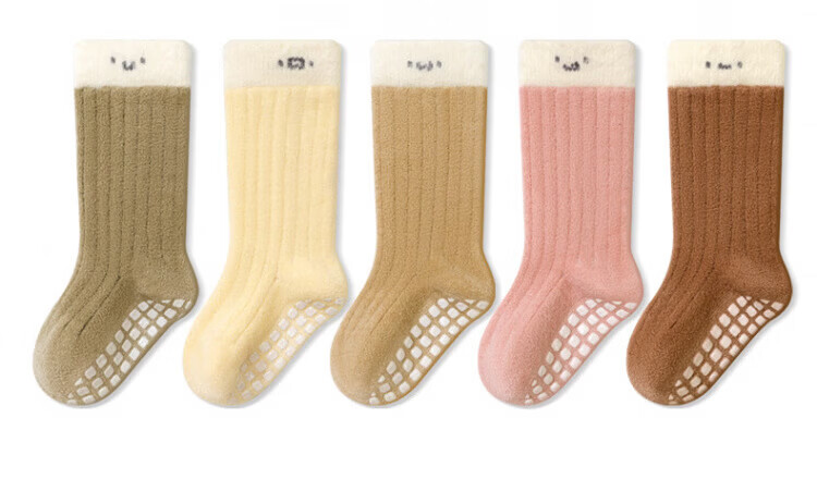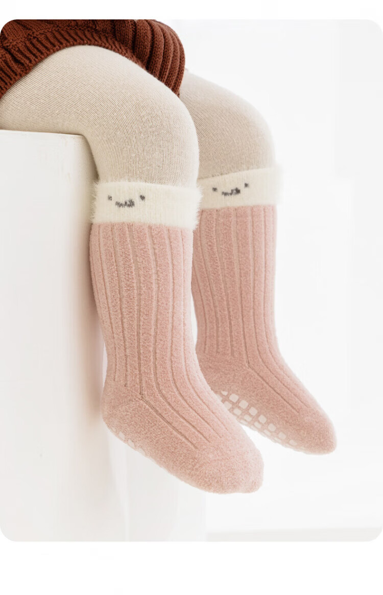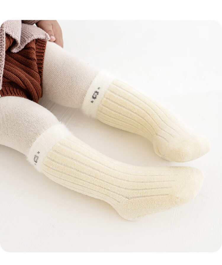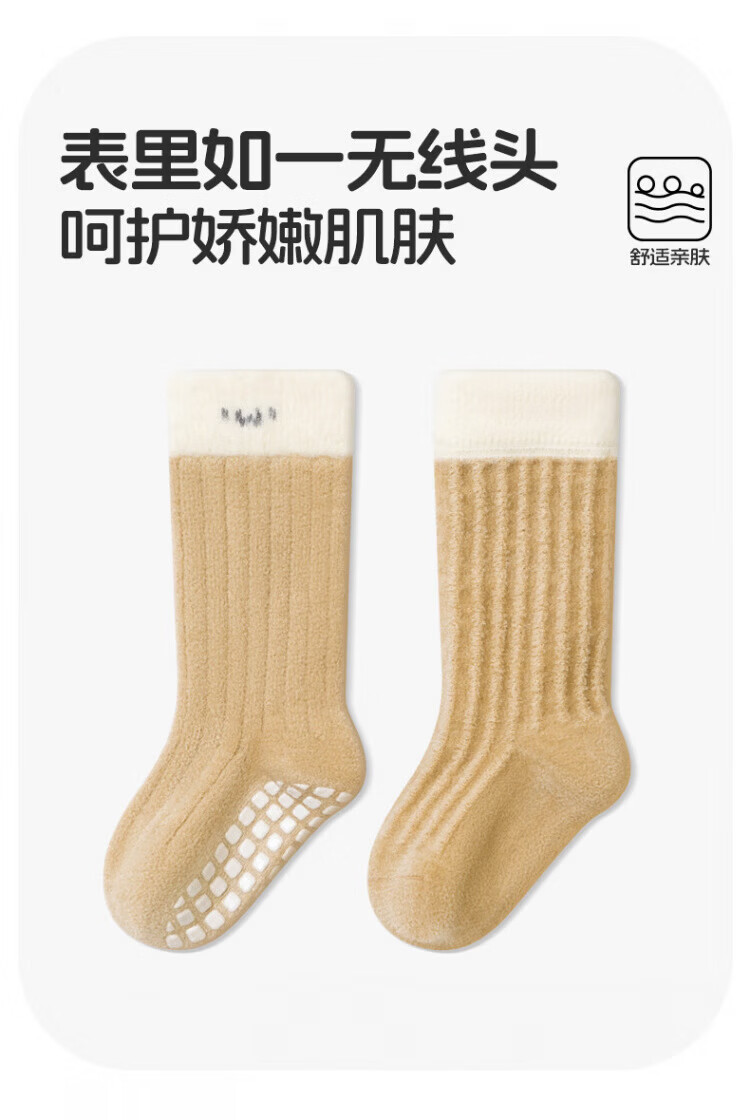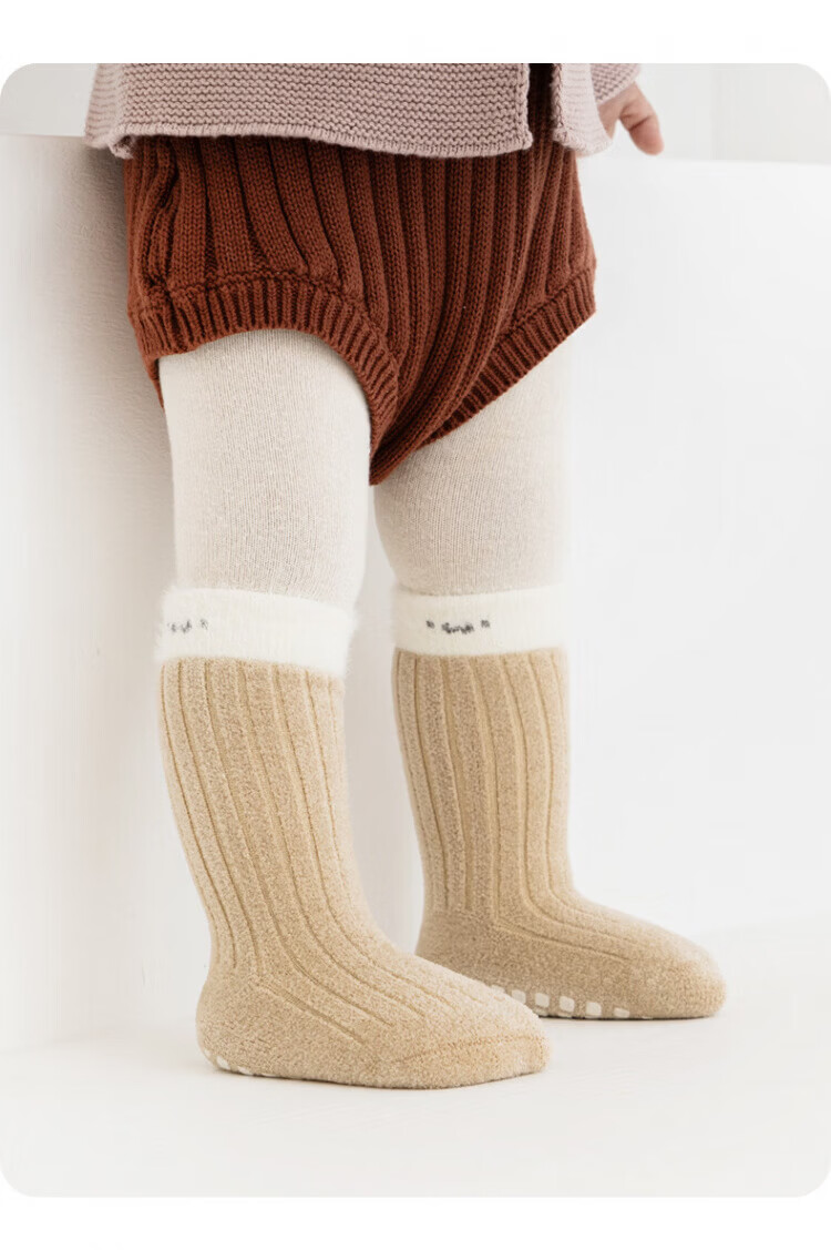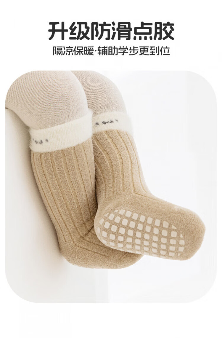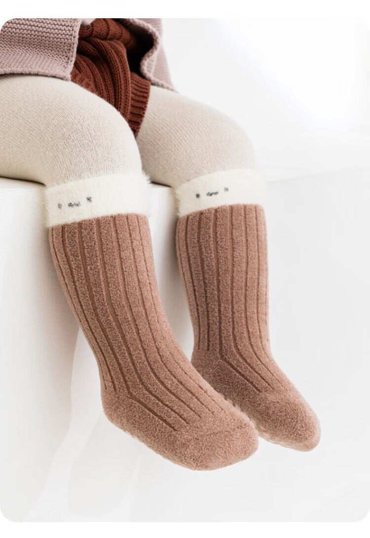 Disney baby socks winter thickened velvet warm mid-calf socks newborn baby indoor toddler non-slip cooling floor socks green + light khaki + dark coffee set 3 pairs 0-1 years old S size (recommended foot length 10-12cm)