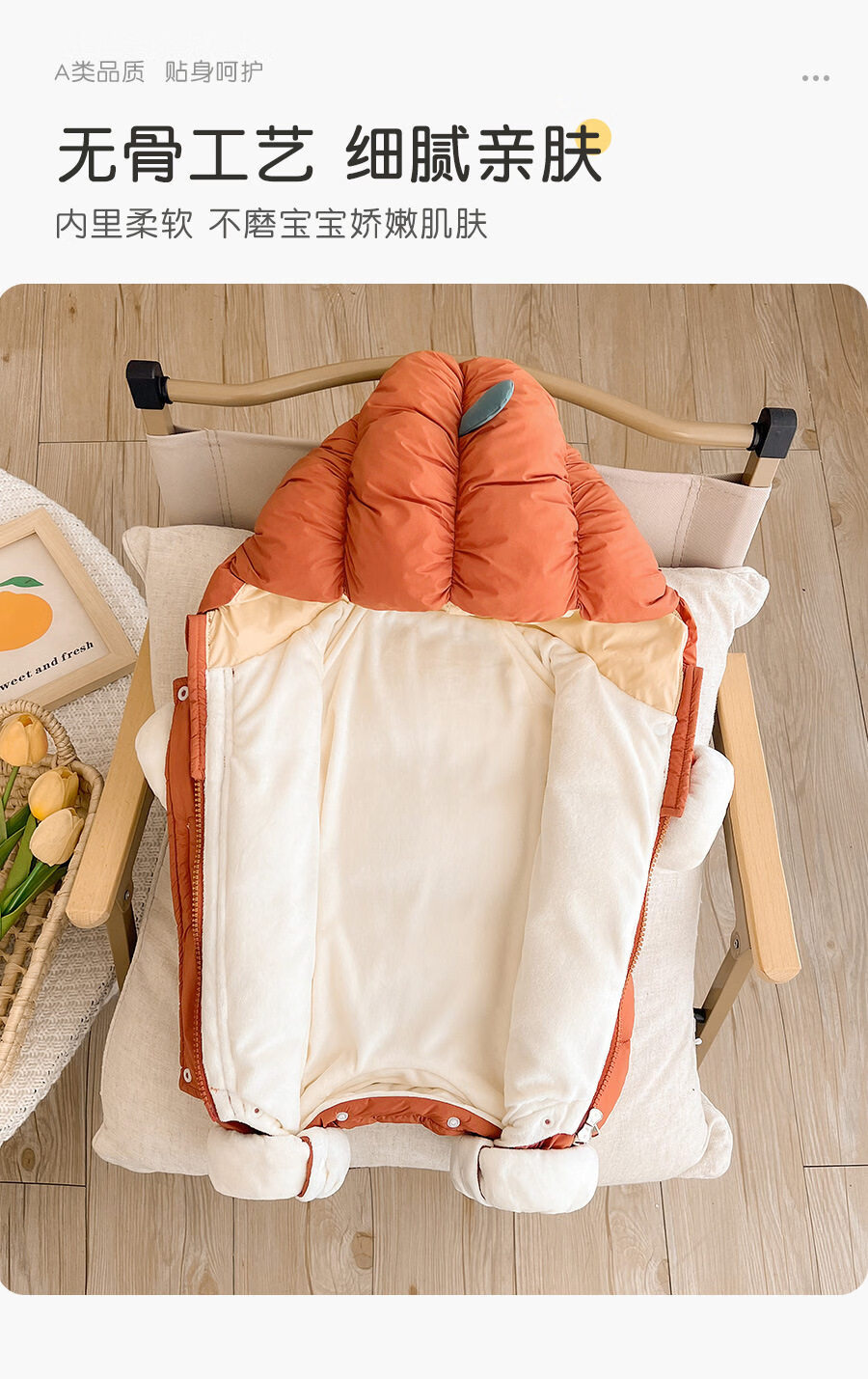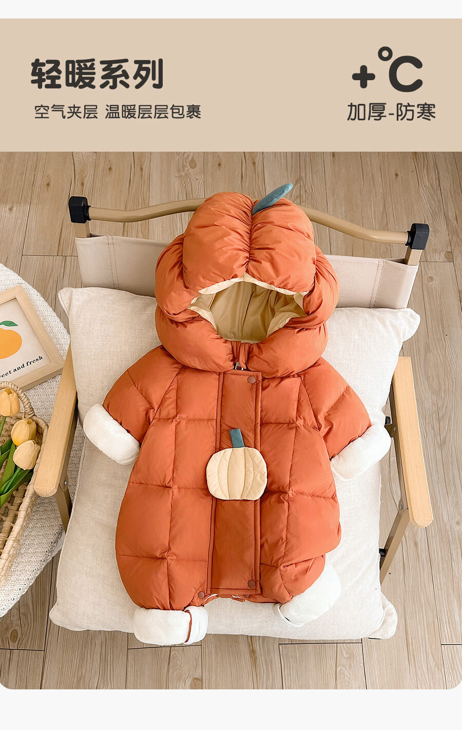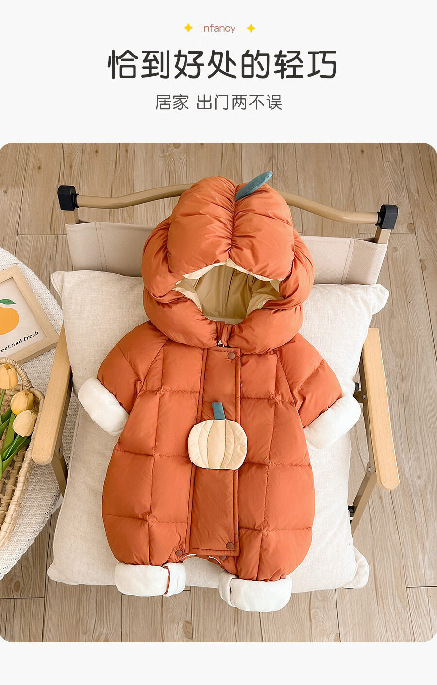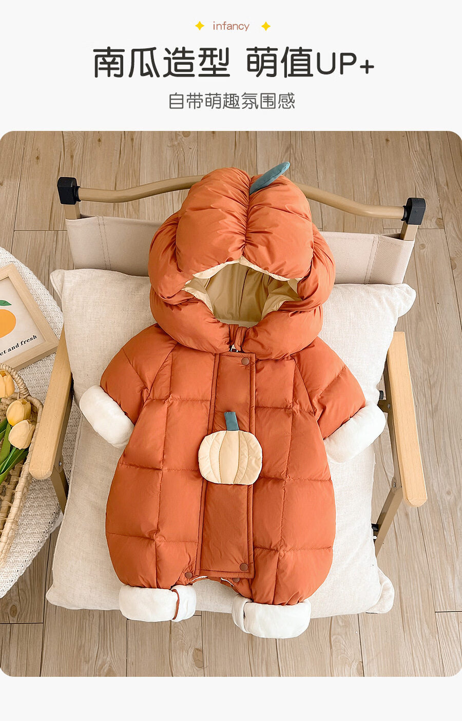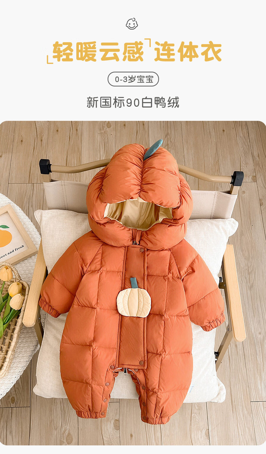 Disney baby down jacket autumn and winter jumpsuit winter born baby travel clothes winter newborn clothes winter thickened orange 66cm