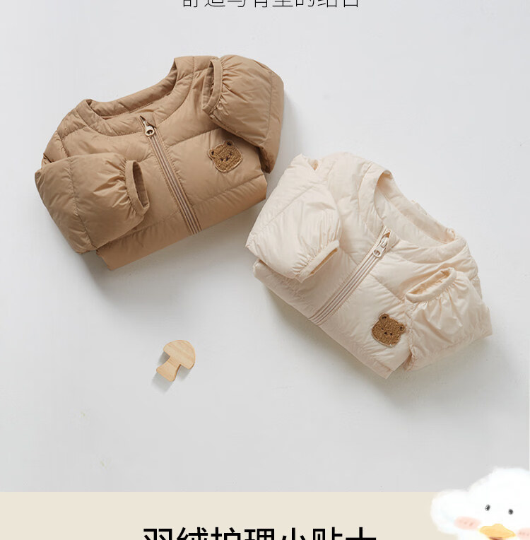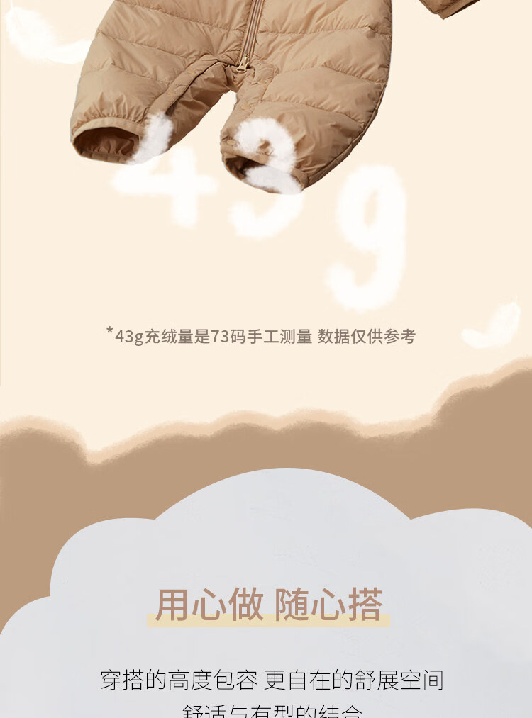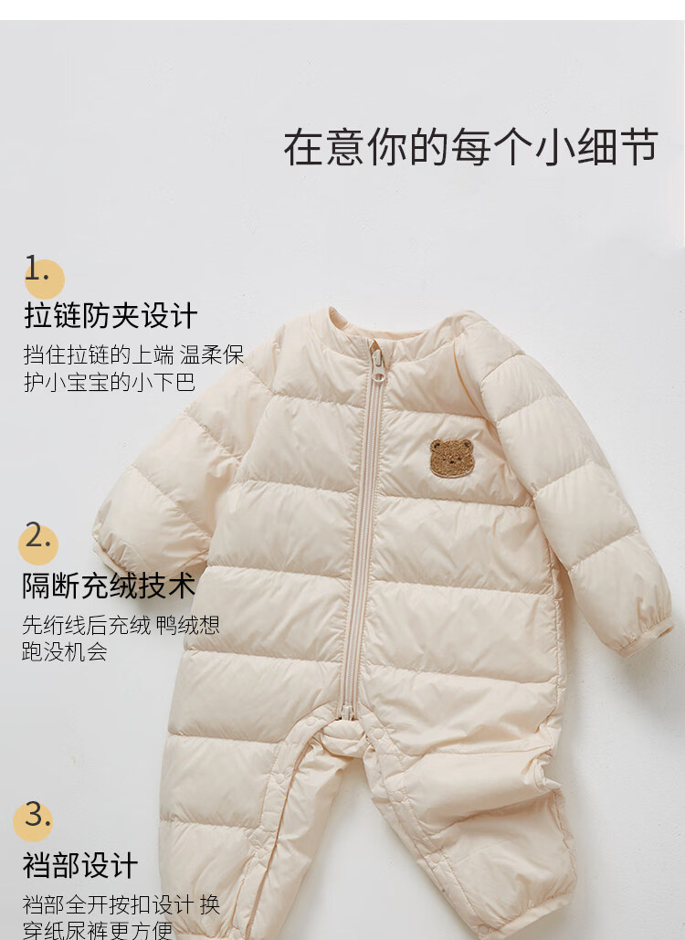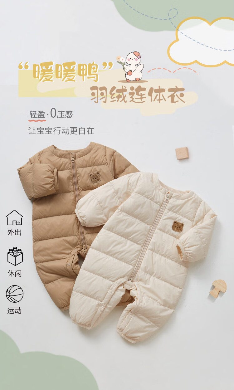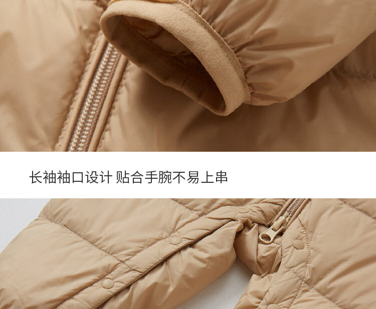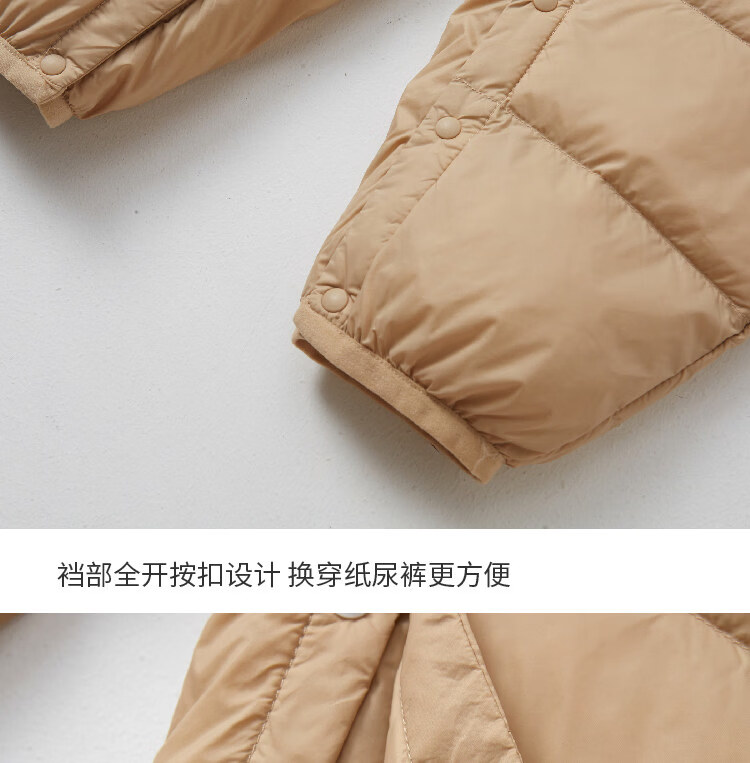 Disney baby winter down jacket rompers inner liner - warm white duck down outer wear inner wear baby one-piece down jacket apricot dog embroidered logo 70cm 73cm height 60-weight 15Jin Jin equals 0.5kg, inside filled with down