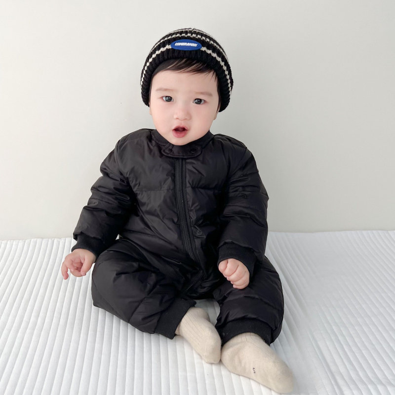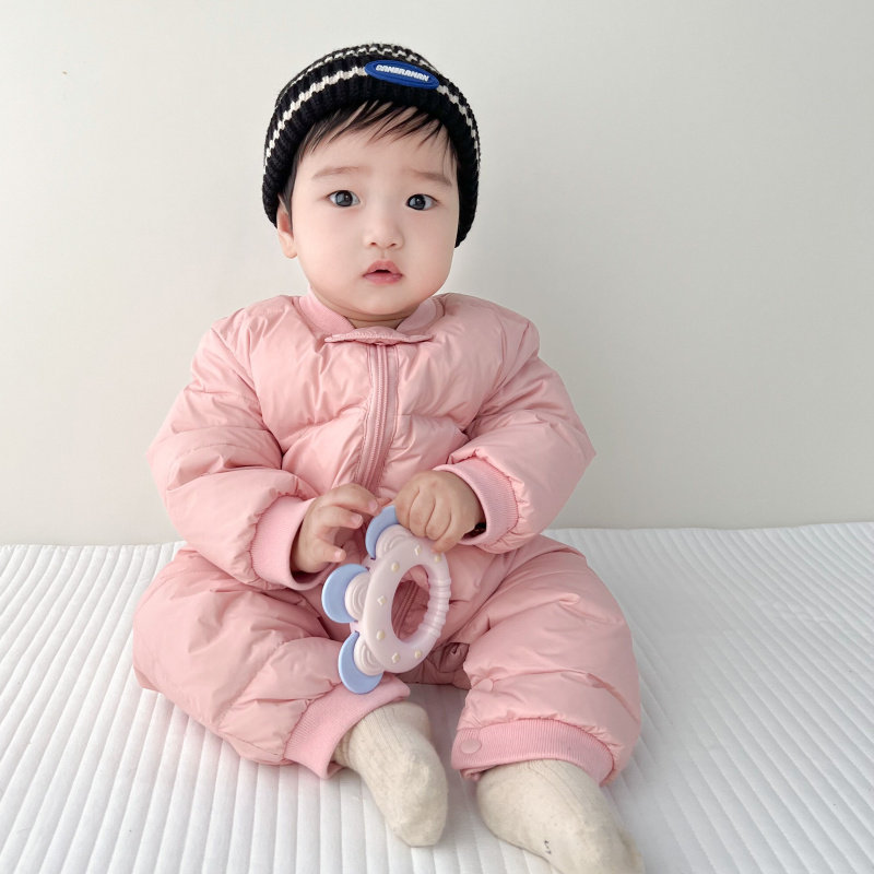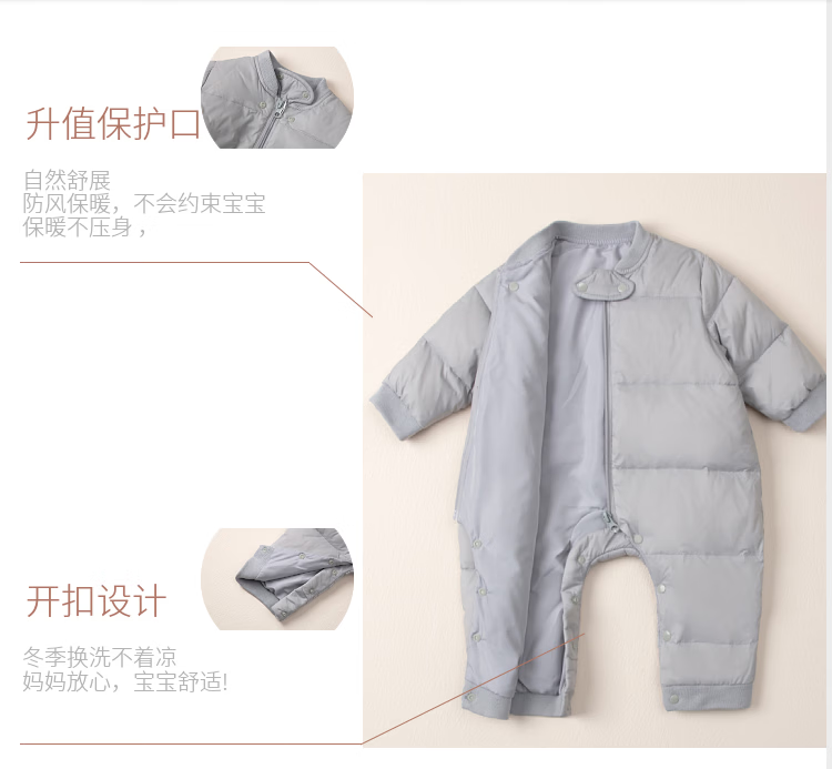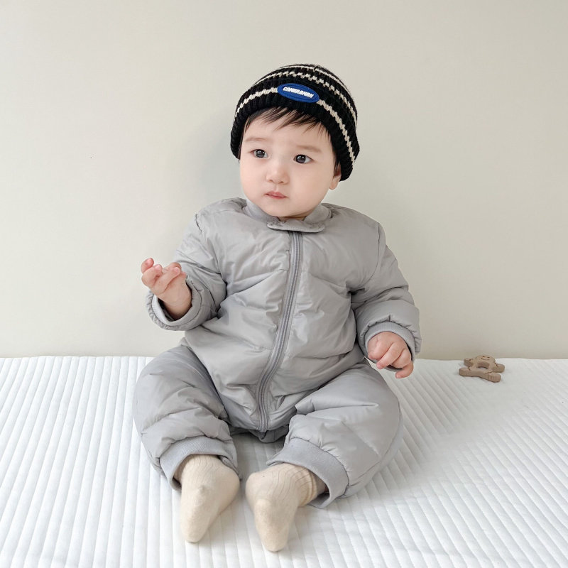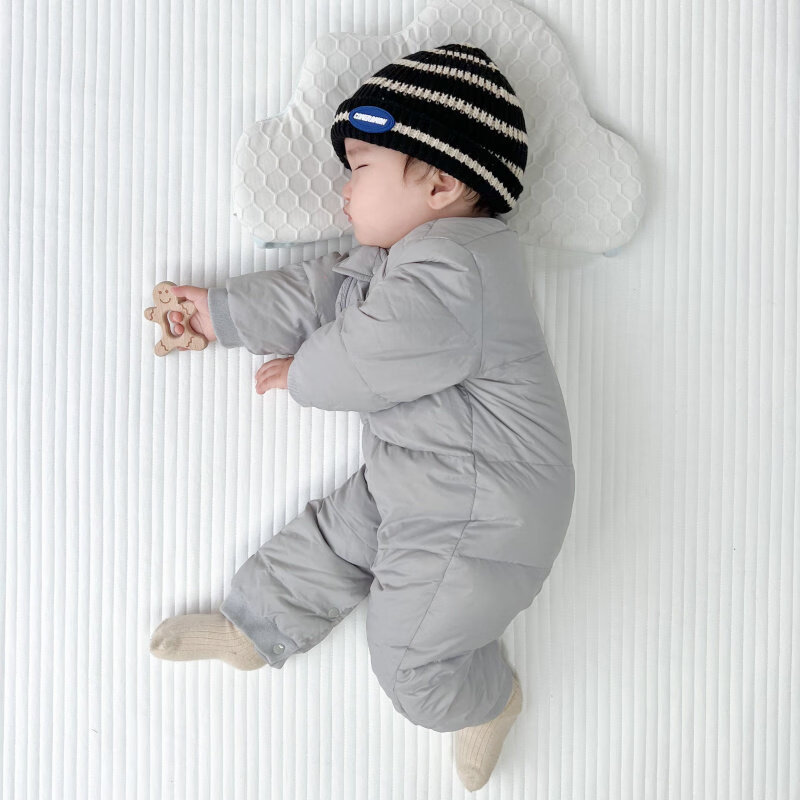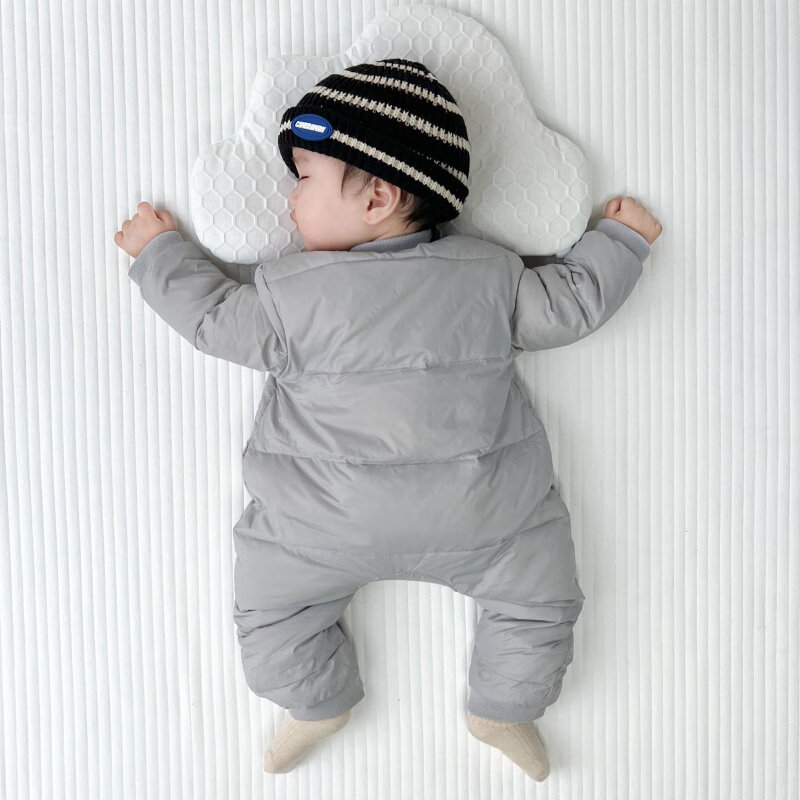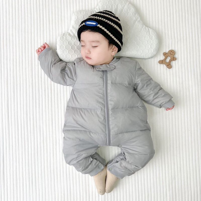 Disney baby winter down jumpsuit for men and women, thickened winter outdoor clothing, plus down rompers, children's warm clothes, gray 59cm