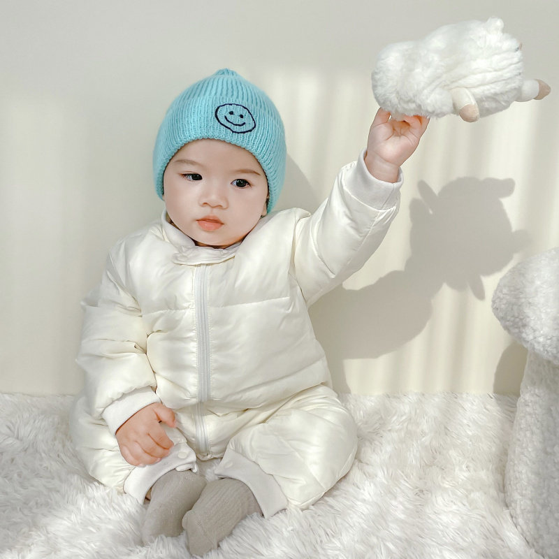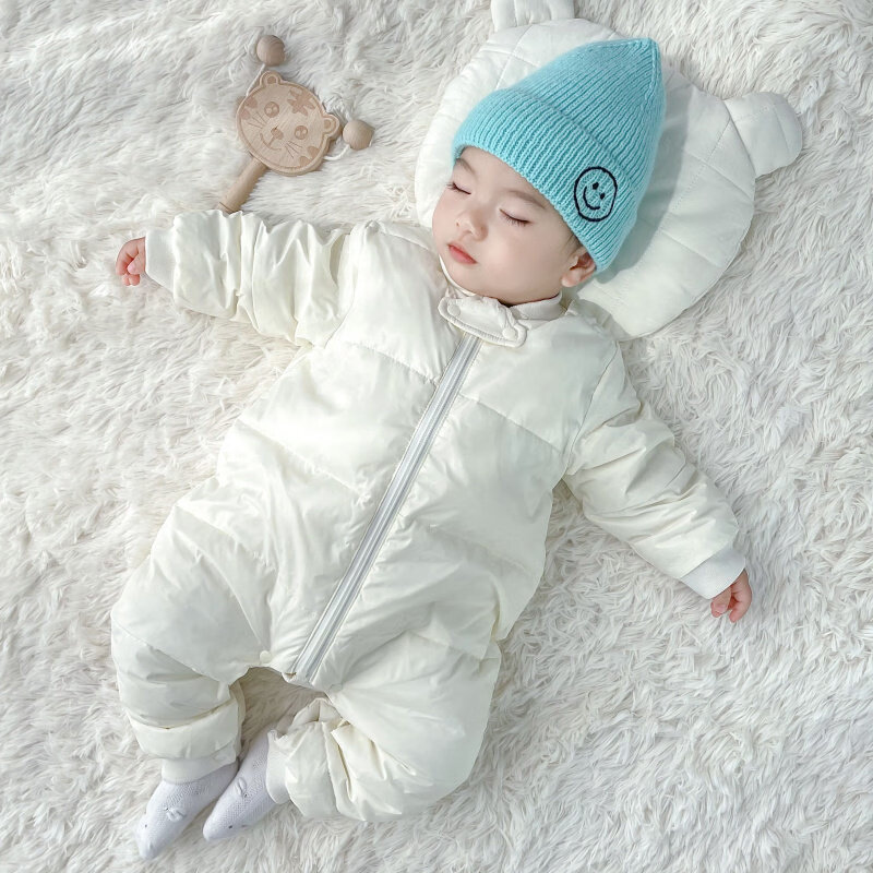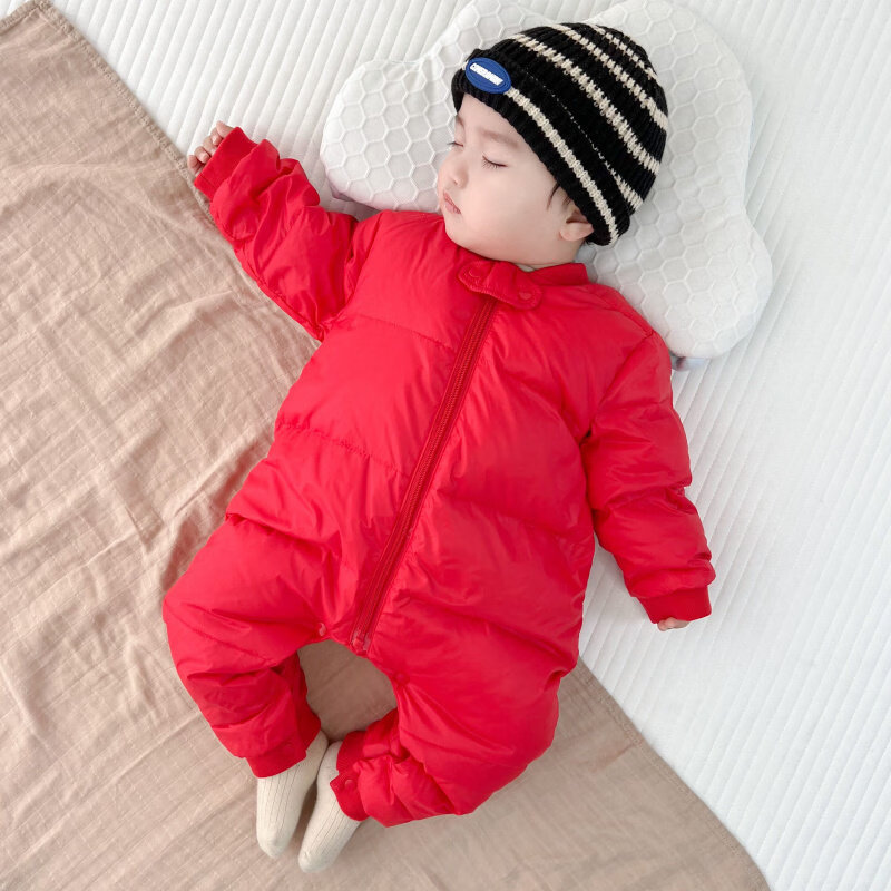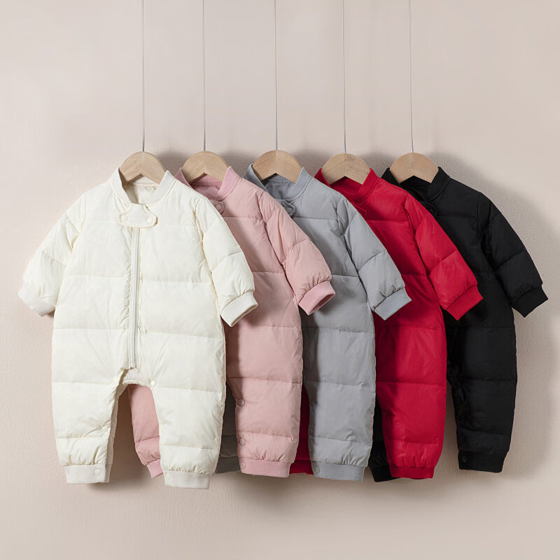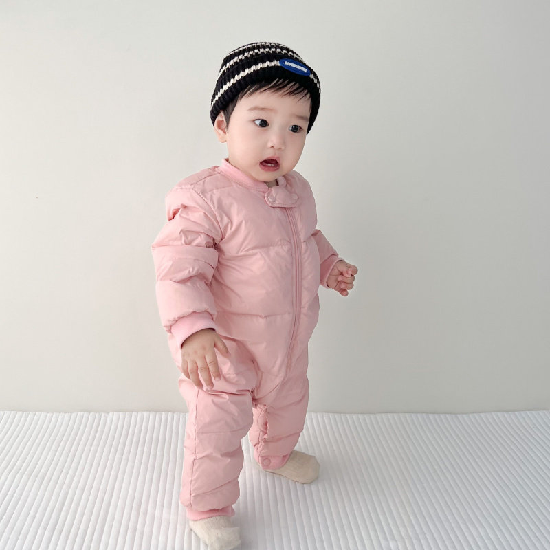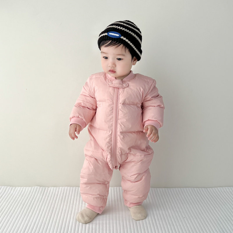 Disney baby winter down jumpsuit for men and women, thickened winter outdoor clothing, plus down rompers, children's warm clothes, gray 59cm
