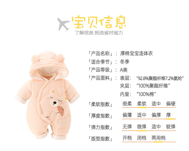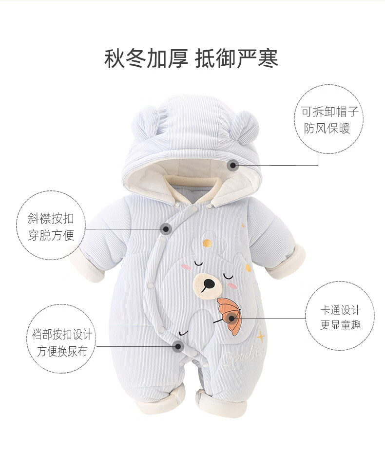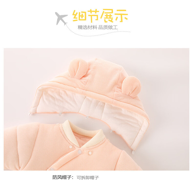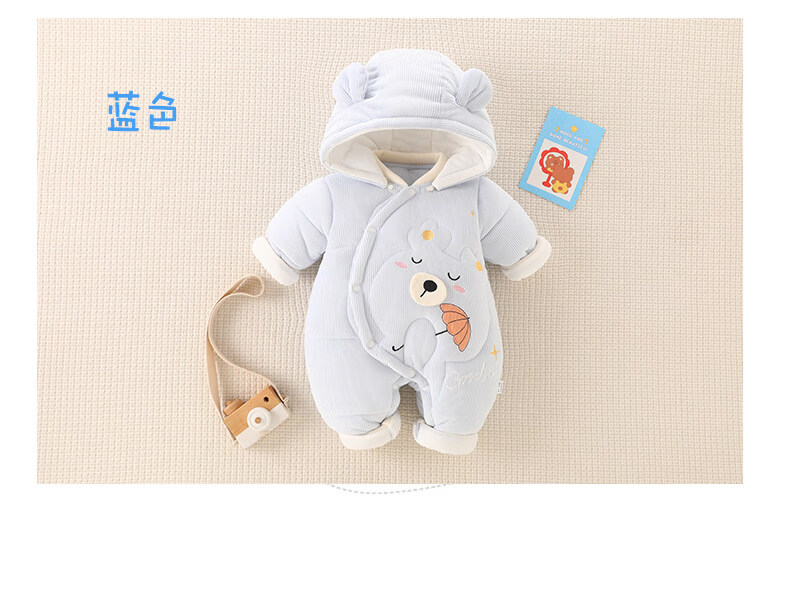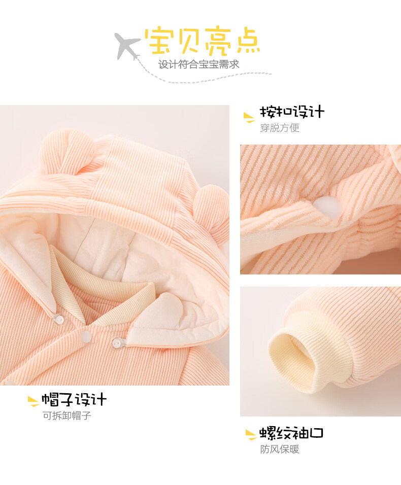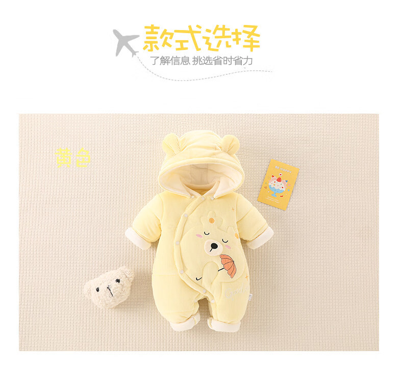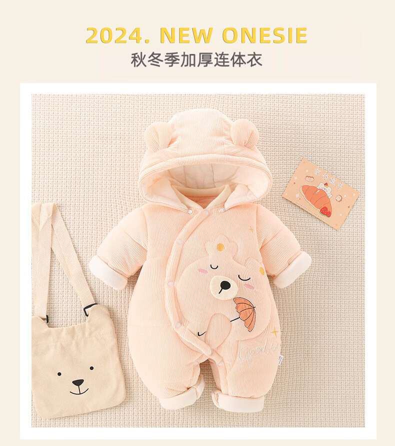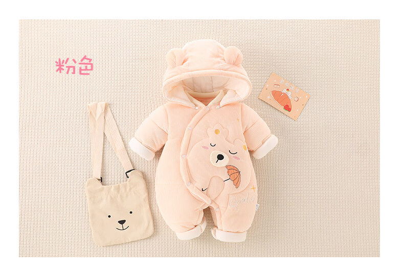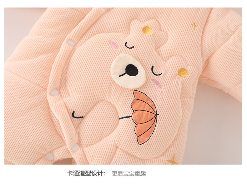 Disney Newborn Baby Jumpsuit Autumn and Winter Thickened Heated Clothes Full Moon Baby Outing Clothes Cotton Clothes Winter Clothes Umbrella Bear Pink 66cm