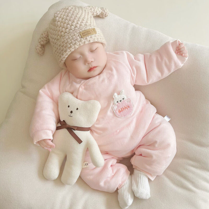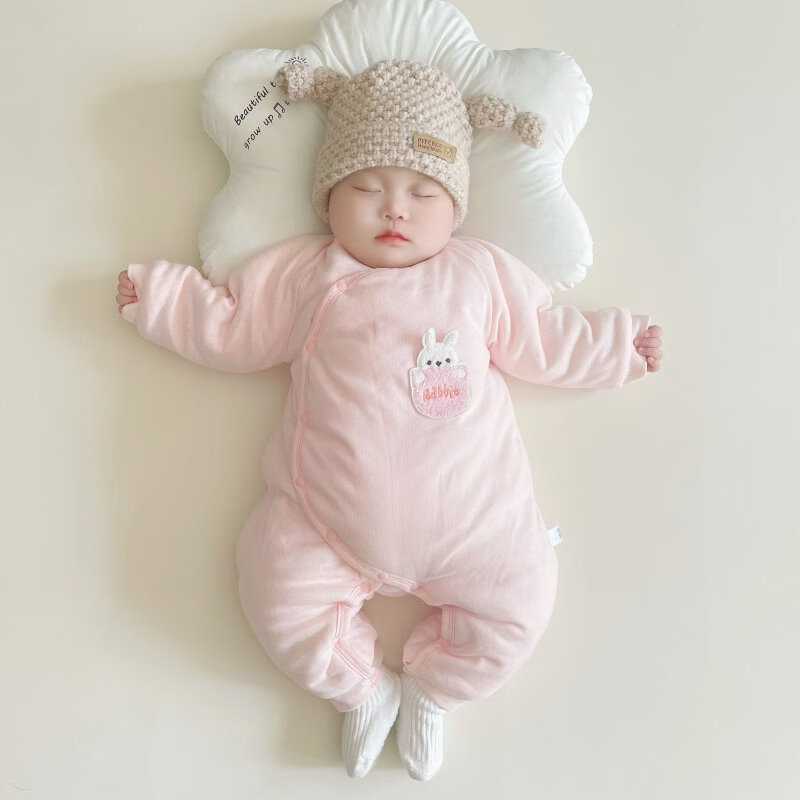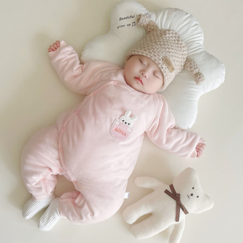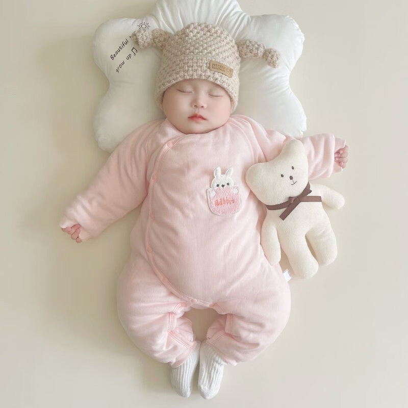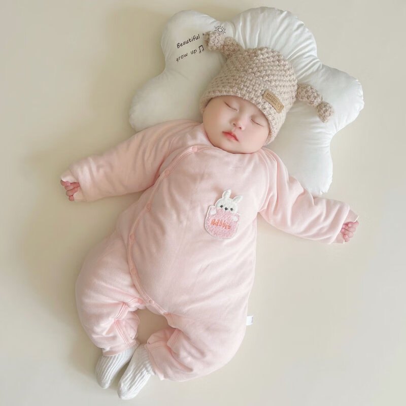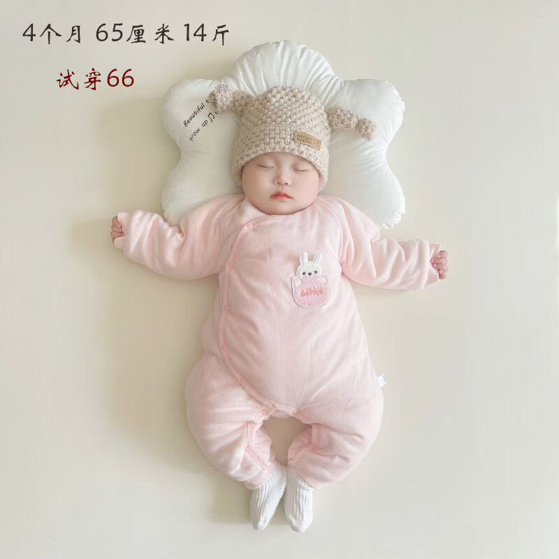 Disney baby winter clothes newborn tummy protection thickened jumpsuit for men and women baby cotton clothes and long-sleeved romper, pink 99 butterfly jumpsuit 52cm