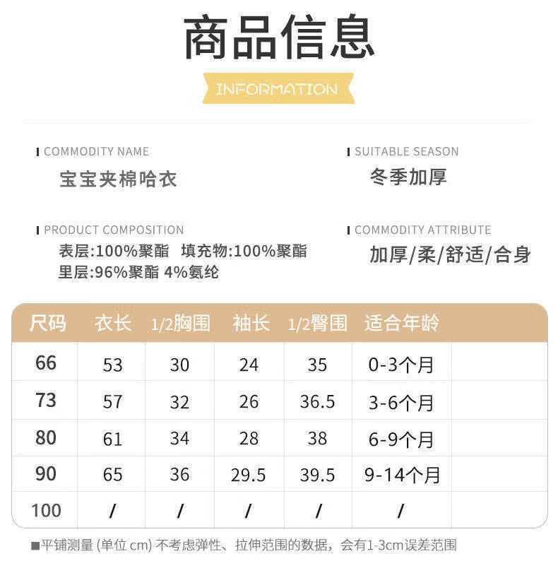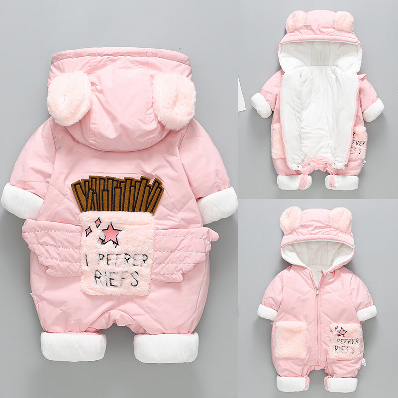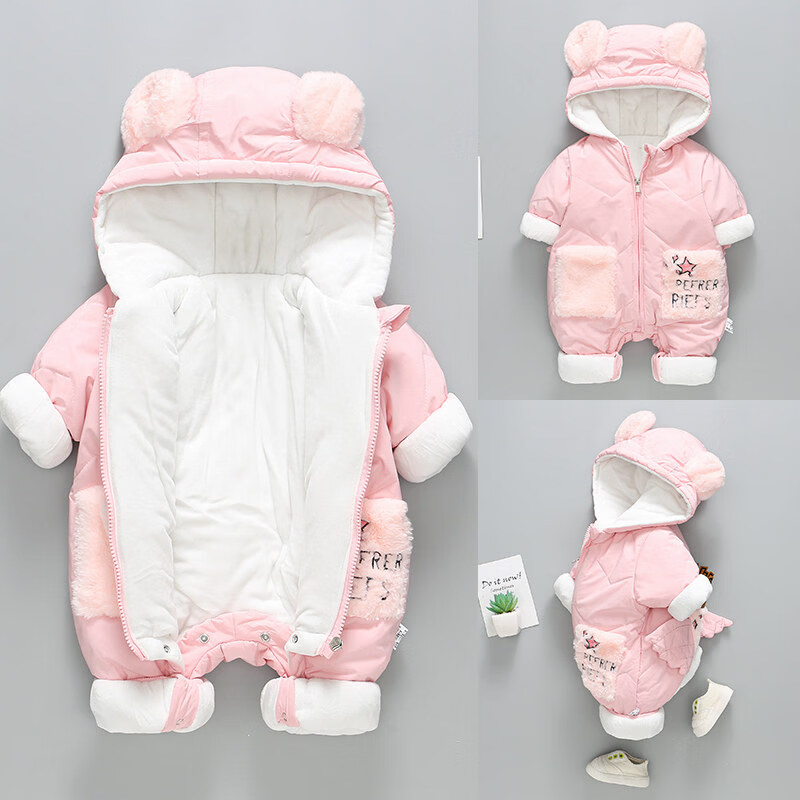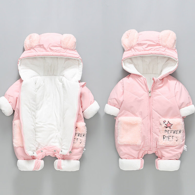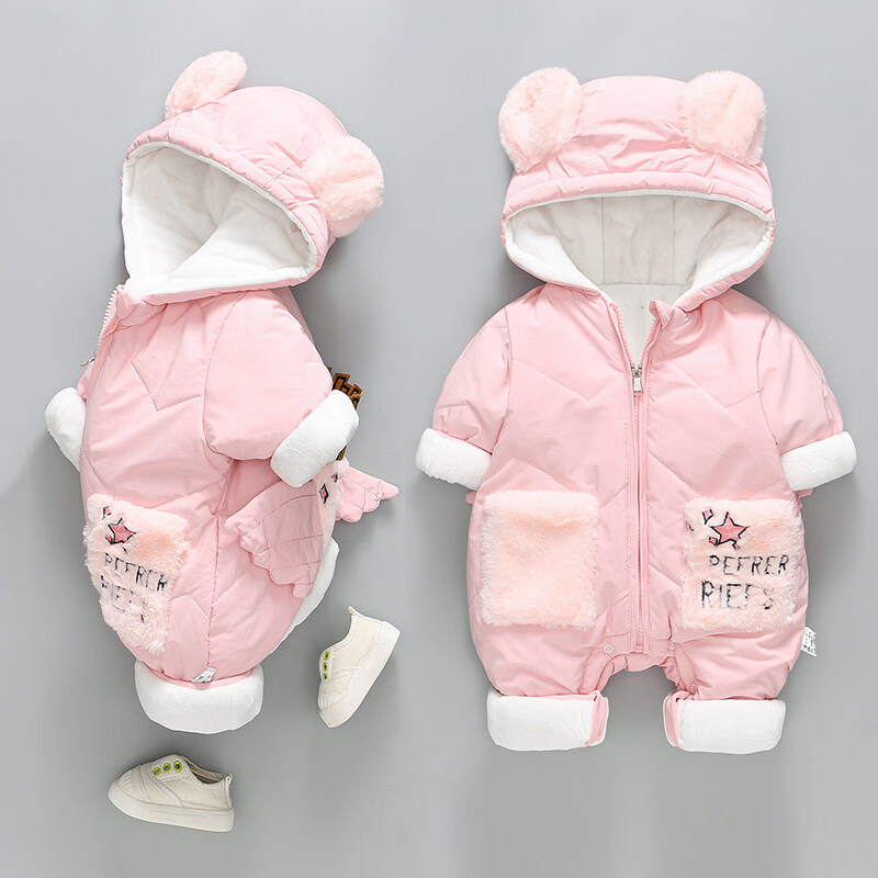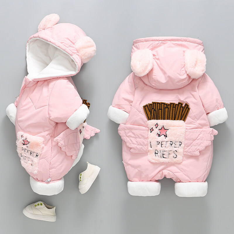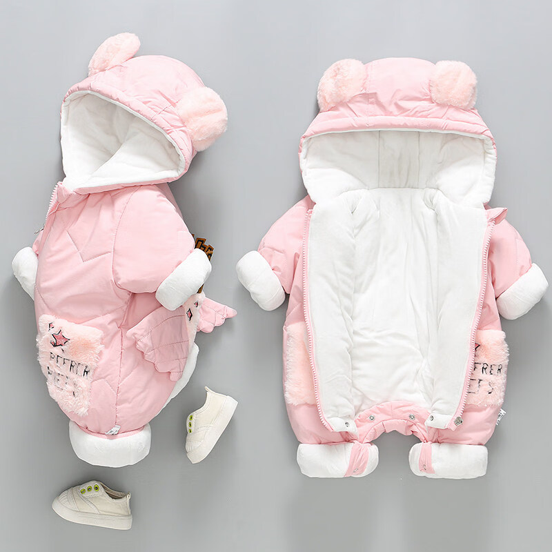 Disney Newborn Baby Autumn and Winter Jumpsuit Baby Outing Clothes Wing Jacket Padded Jacket Winter Plush Suit Apricot 66cm