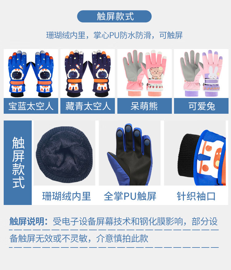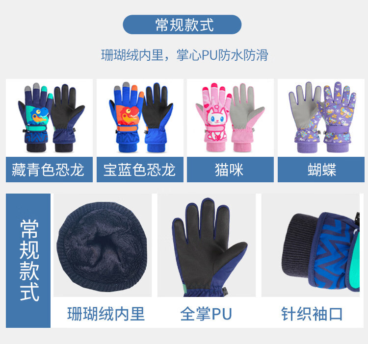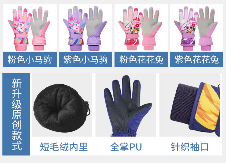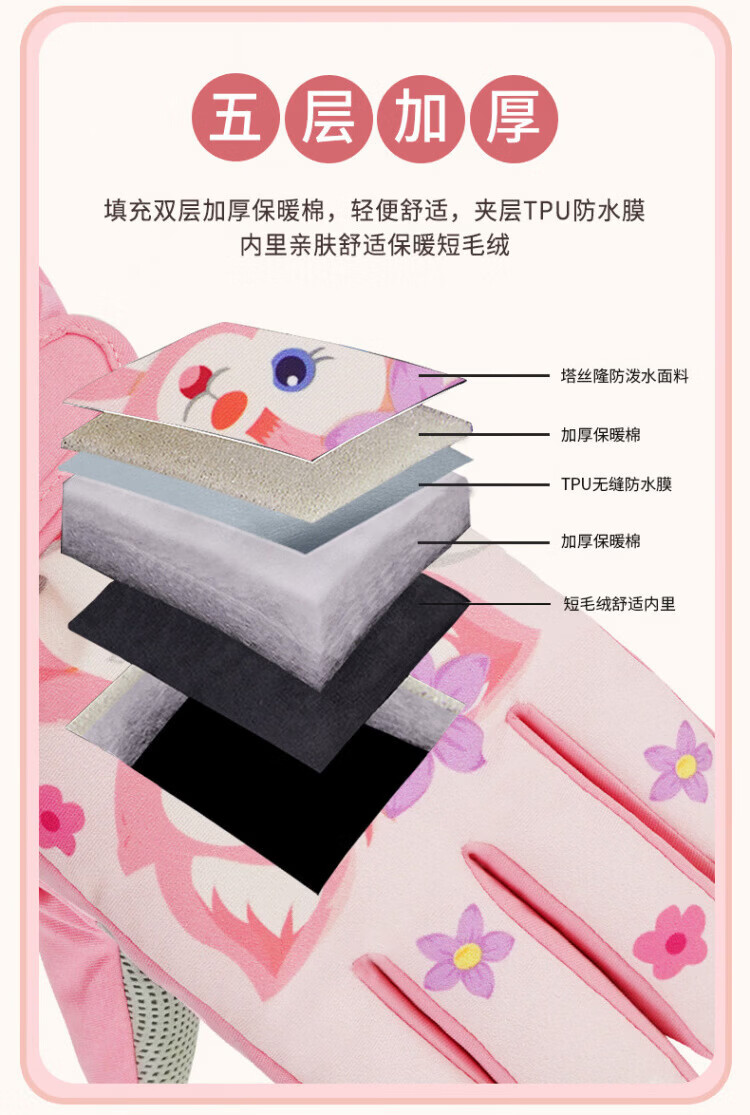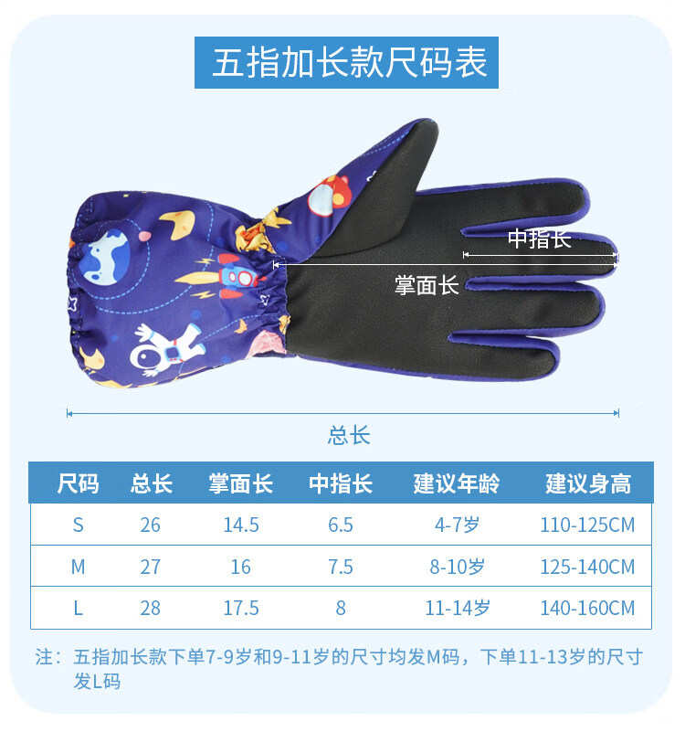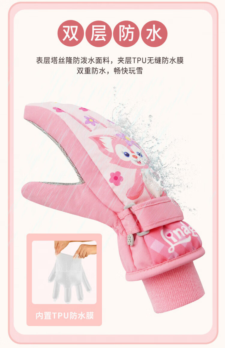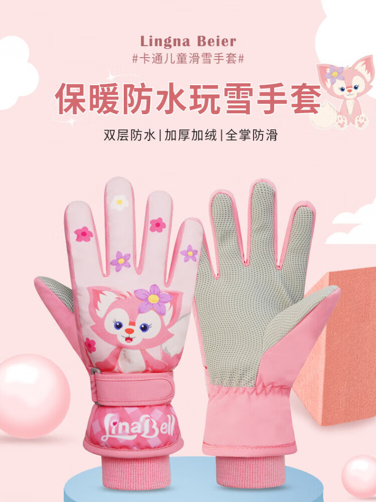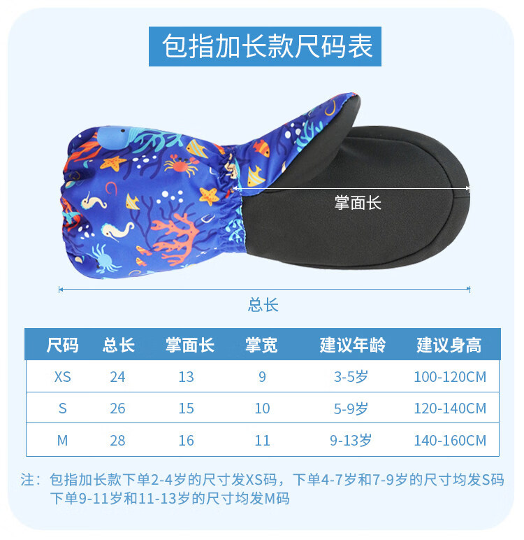 Disney children's down gloves for skiing and playing in the snow, Harbin girls' winter waterproof autumn and winter warm five-finger baby girl's bag with extended fingers/underwater world 2-4 years old (90-105cm)