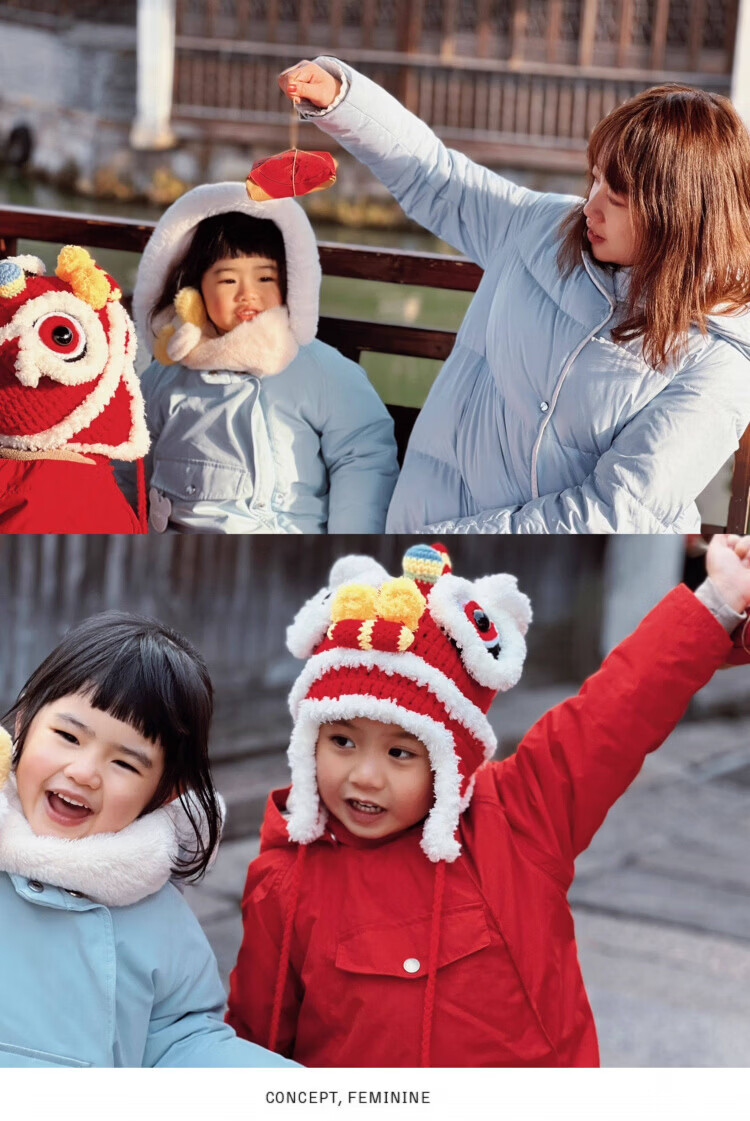 Disney Lion Hat Baby New Year Gift Handmade New Year Children's Wool Hat Women's Autumn and Winter Baby Ear Protection Tiger Head Hat Red Small Baby Style (0-6 Months)