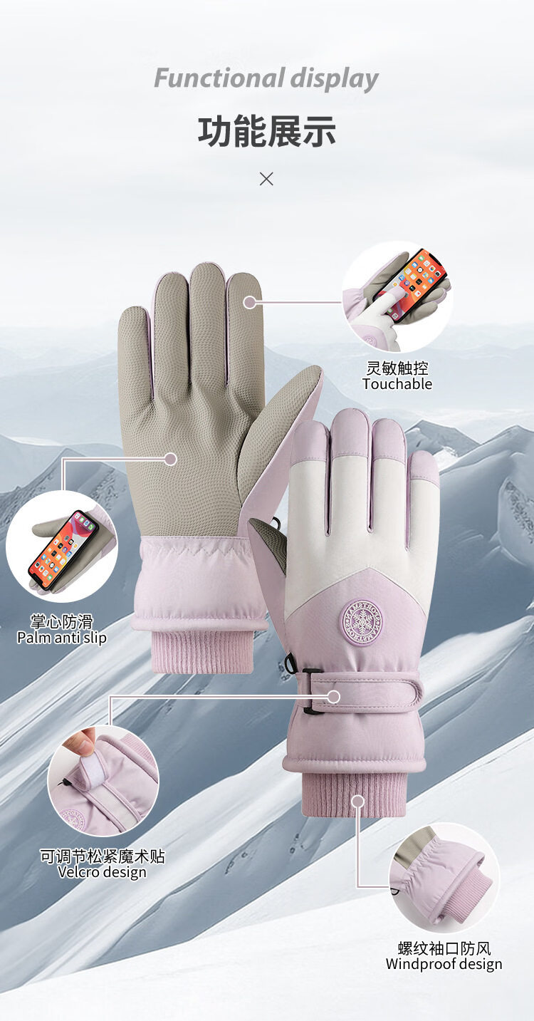 Disney children's down gloves skiing and playing in the snow Xuexiang Harbin women's winter warm and cold protection men's outdoor riding motorcycle women's pink thickened waterproof and wear-resistant one size