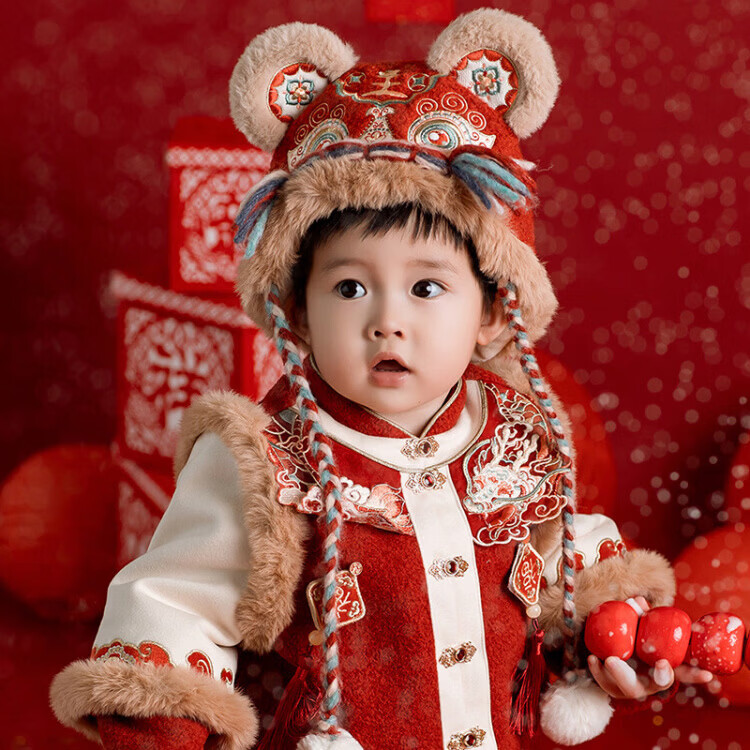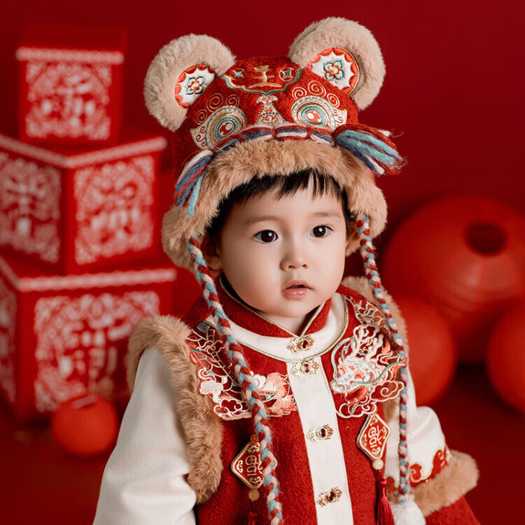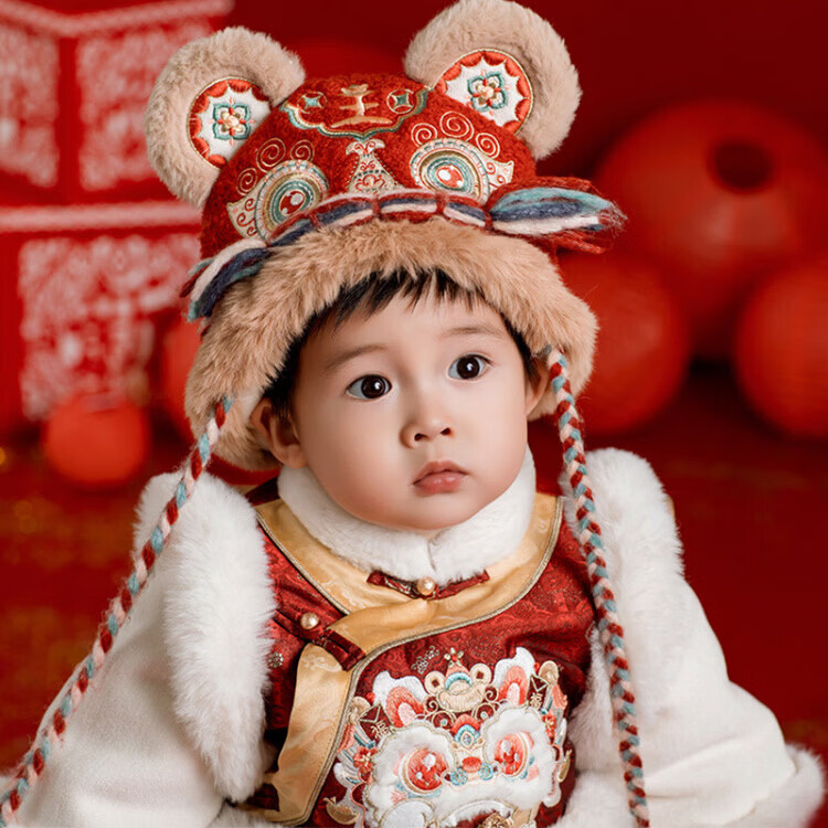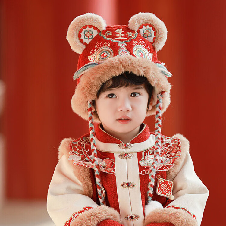 Disney Baby New Year Tiger Head Hat Boys Hanfu with One-Year-Old Dress Male Dragon Head Hat Handmade Embroidery Thickened Hat Red 0-9 Years Old Small Size (0-3 Years Old)