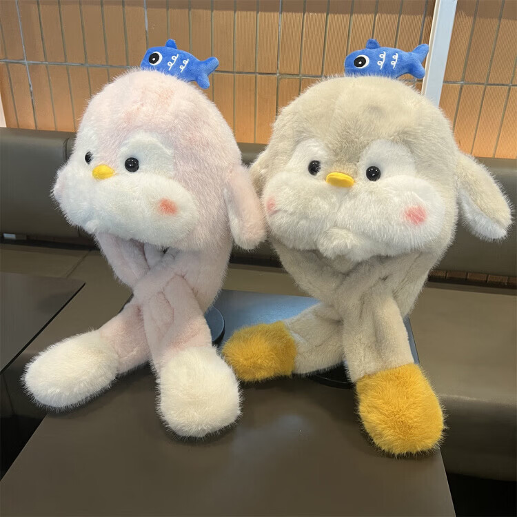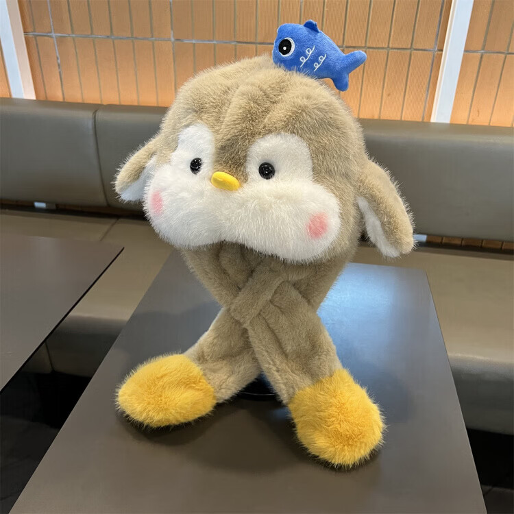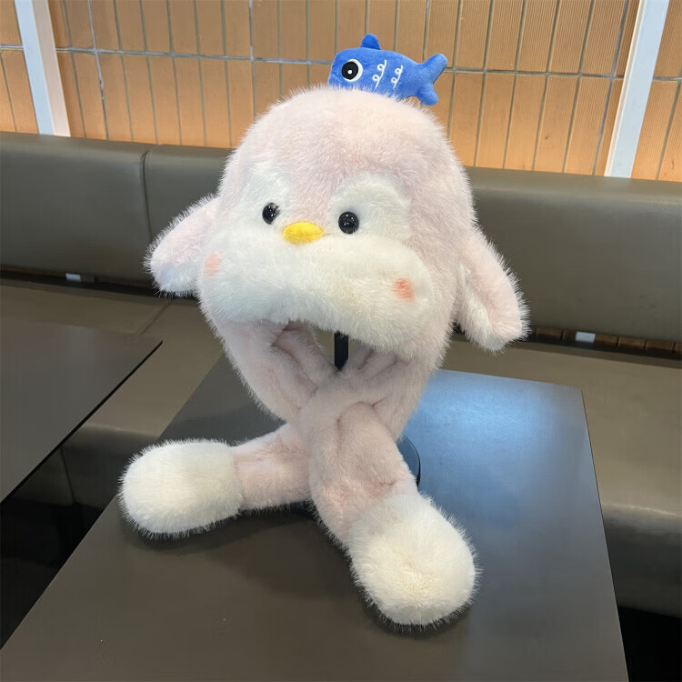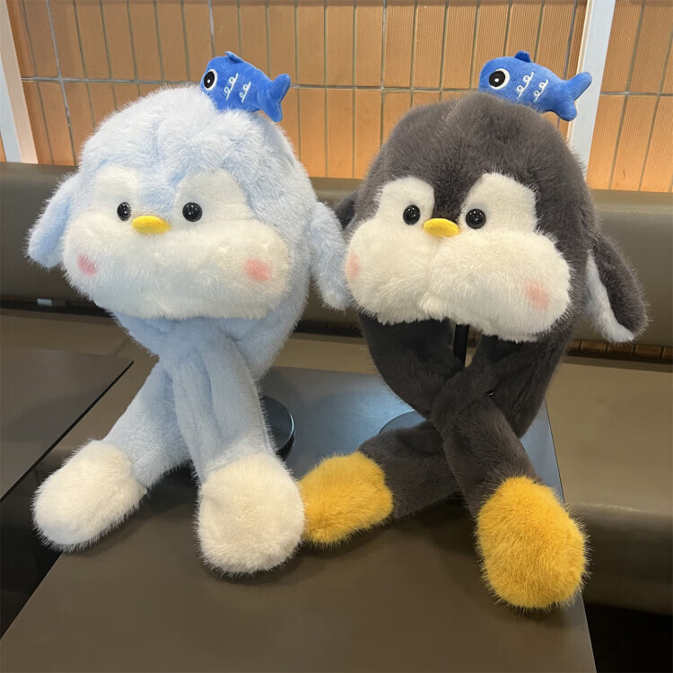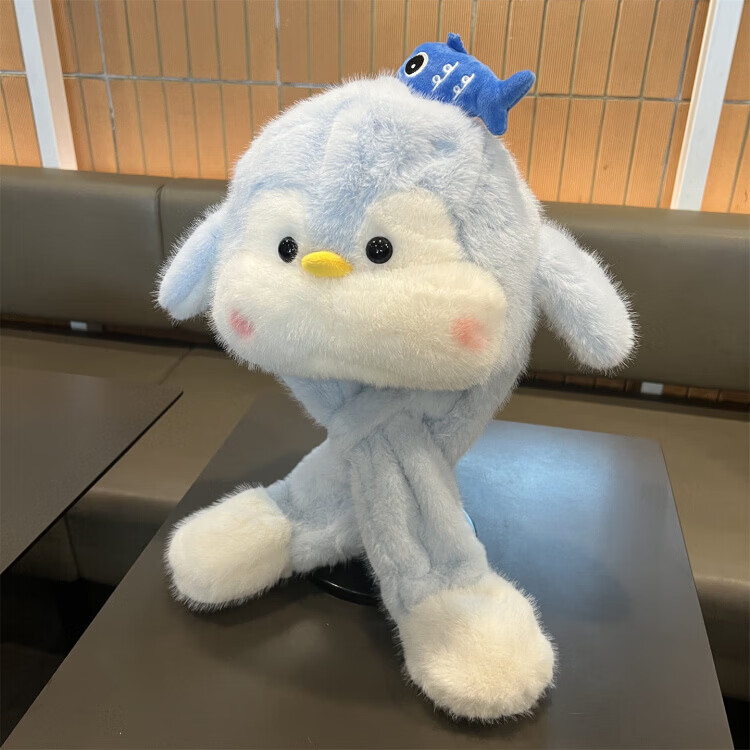Disney children's hat winter plush hat cute penguin warm thickened ear protection hat for male and female babies that moves when you pinch the ears sky blue - penguin plush one-piece hat 2-10 years old (cap circumference 48-54cm) one size