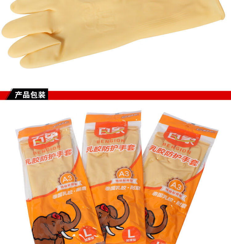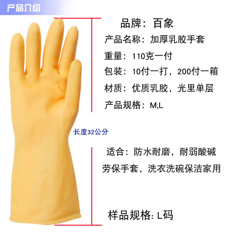 Baixiang latex gloves thickened housework waterproof dishwashing beef tendon wear-resistant household kitchen rubber gloves labor protection S Baixiang brand latex gloves 32 cm 50 pairs