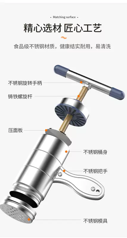 Yusen Yilao noodle machine household hand-cranked steel functional machine multi-faceted artifact squeezing artifact noodle network stainless steel stainless steel noodle machine ordinary model (1 mold)