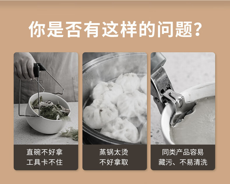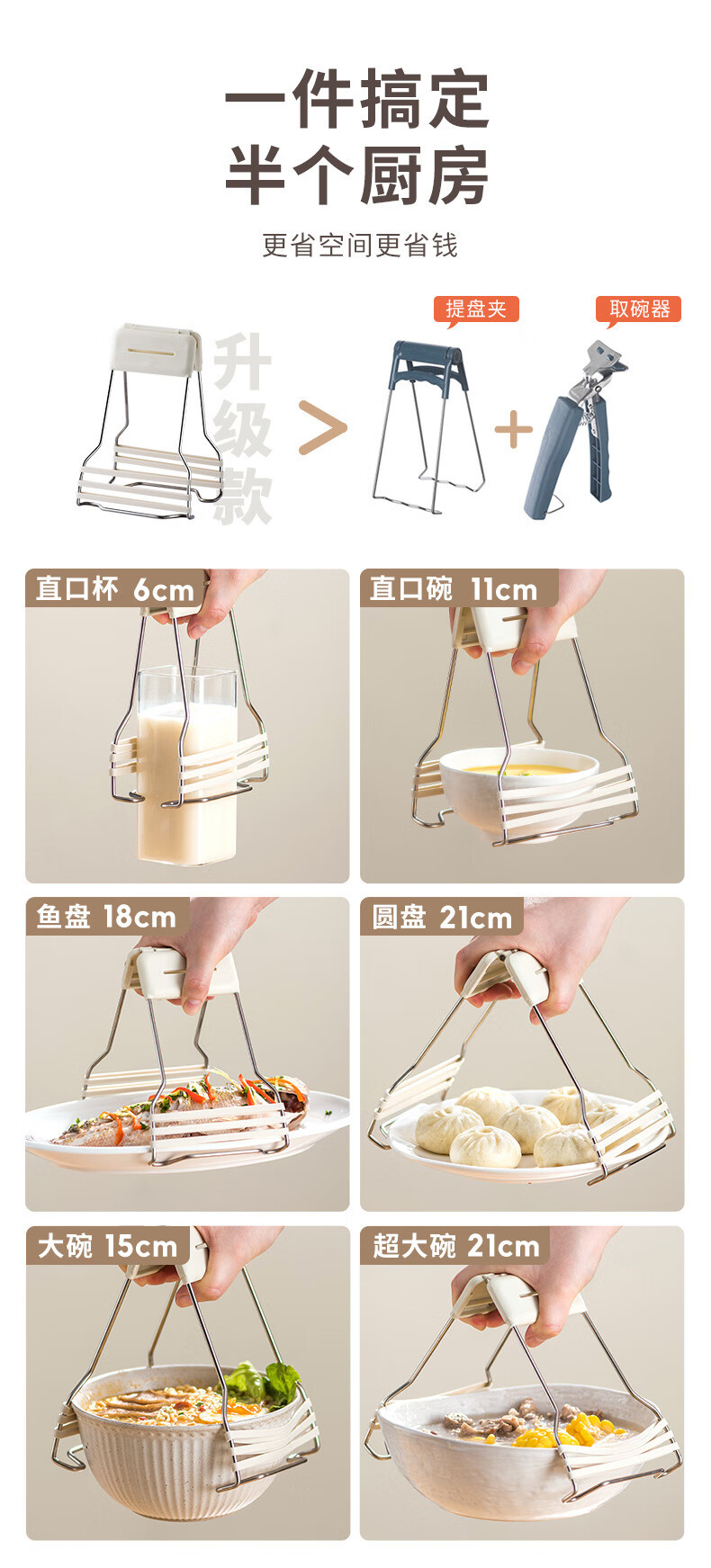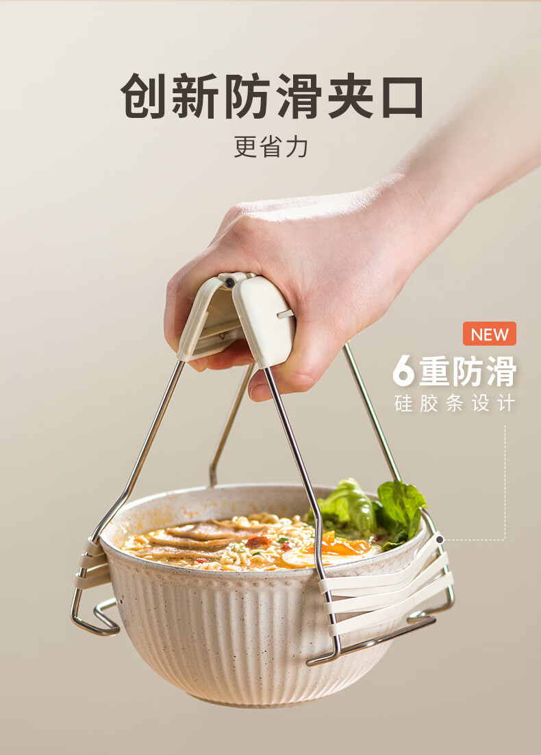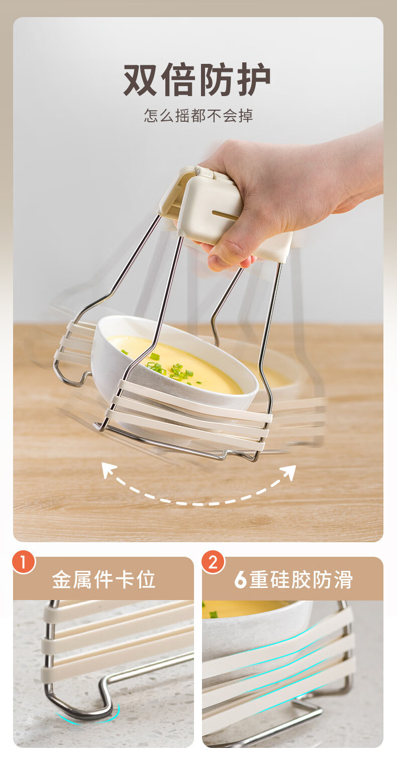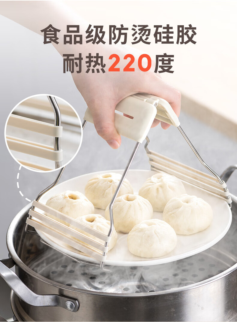 RSRDDY anti-scalding bowl clamp, stainless steel plate grab bowl clamp, tray clamp, anti-slip steamer steamer clamp, gray and white anti-scalding two-piece set