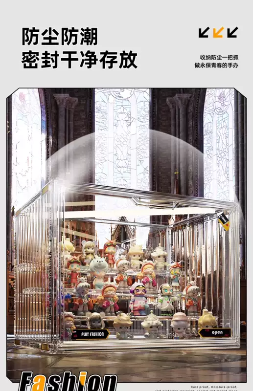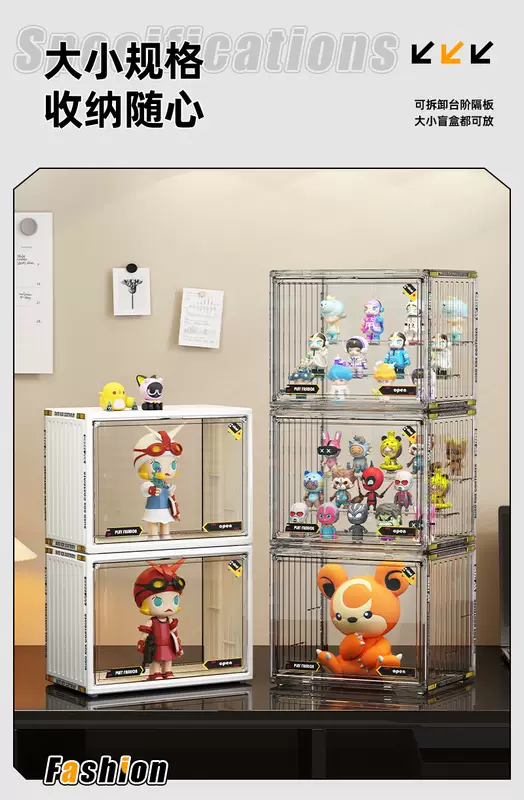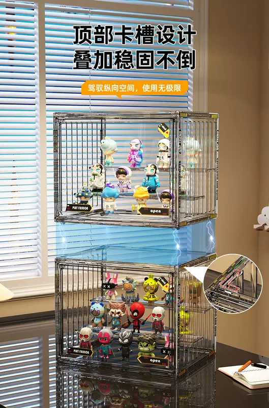 Yusenyi Transparent Special Model Display Cabinet Bubble Dustproof Blind Box Storage Detachable Scaffold Ladder Display Rack Translucent Pink (Extra Large) Ladder Style (Free Sticker Figure Glue)