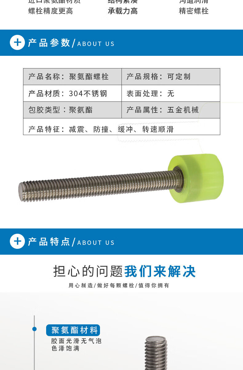 XMSJ304 stainless steel M8 screws polyurethane anti-collision buffer hexagon socket bolts coated flat head screws national standard customization The following are all natural color 90A