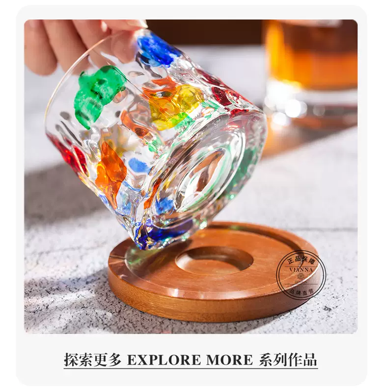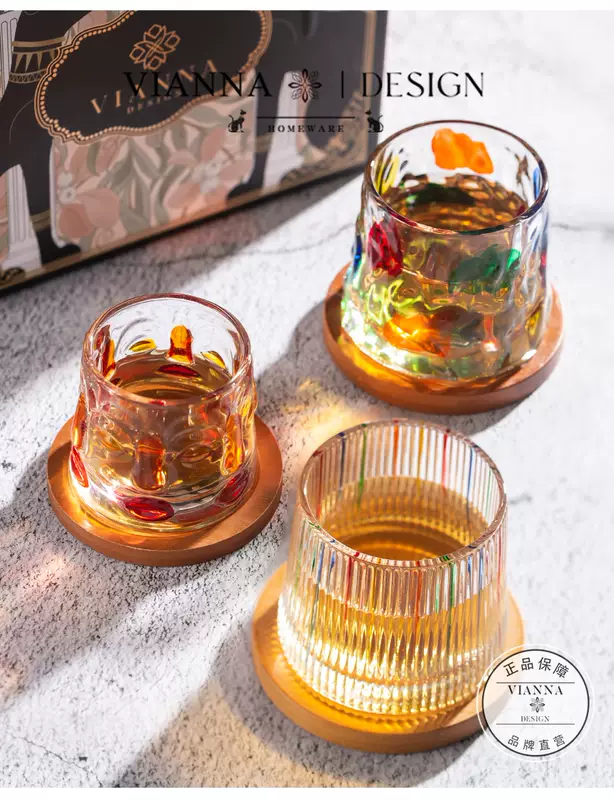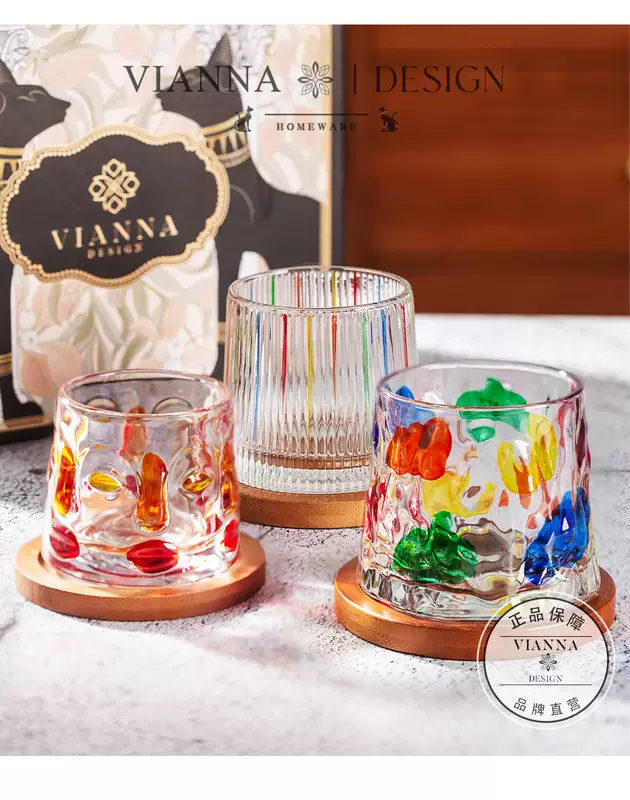 Yusen Yi Water Cup Rotating Twist Cup Wine Glass Retro Painting丨Whiskey Vianna Wine Glass Neal Gift NEAL Tree Pattern Contrast Color-Check (Pair) 1L 1 Piece