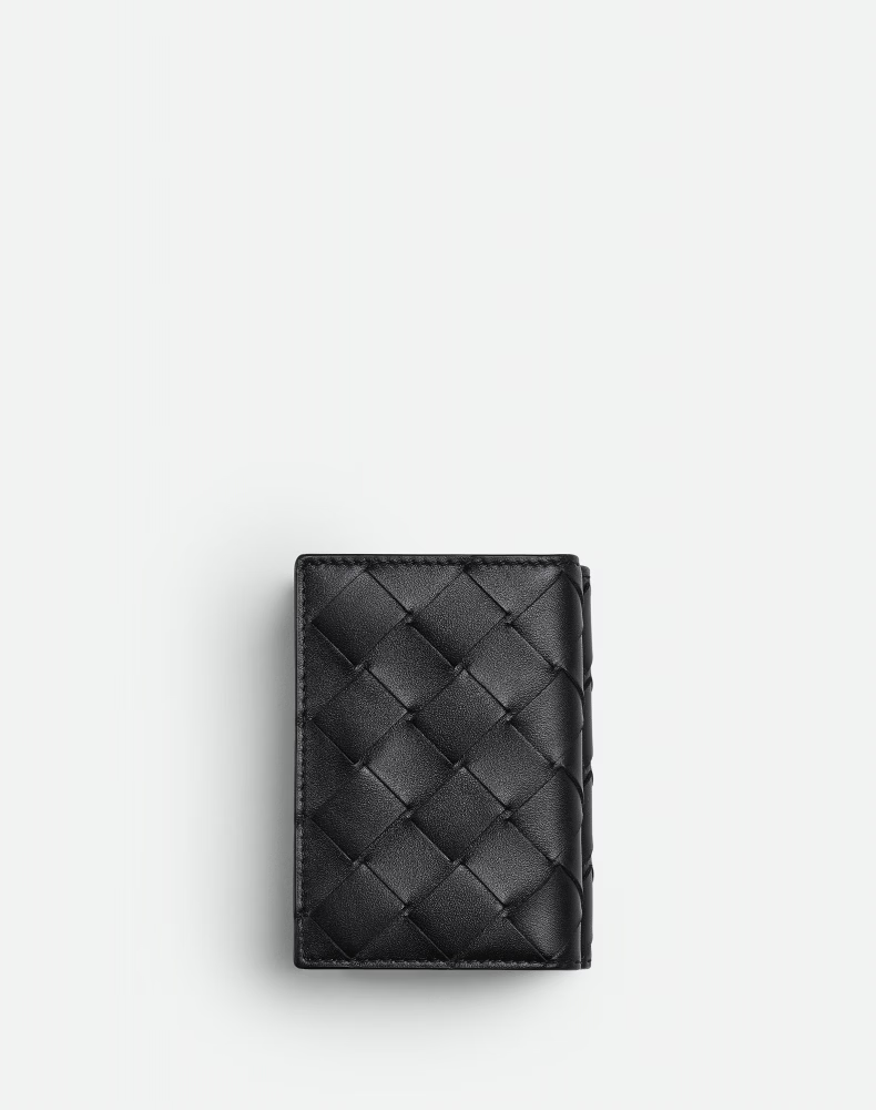 Bottega Veneta BV gift men's Intrecciato woven small tri-fold wallet for boyfriend, black, one size fits all