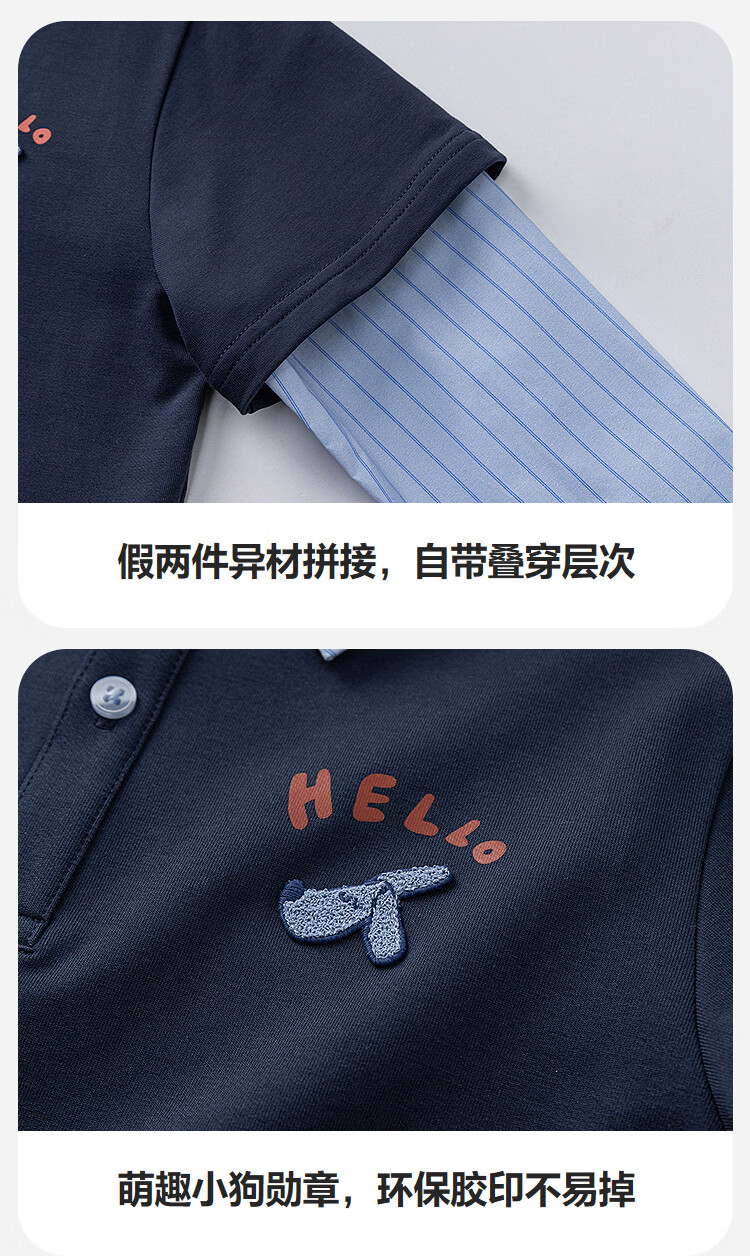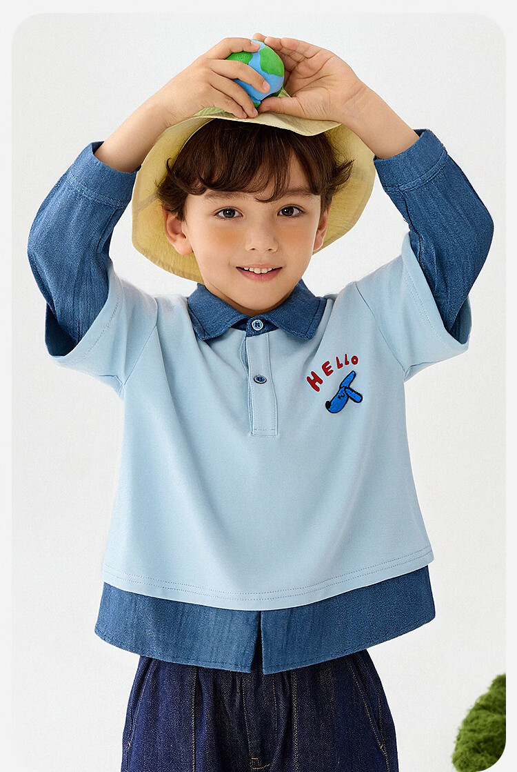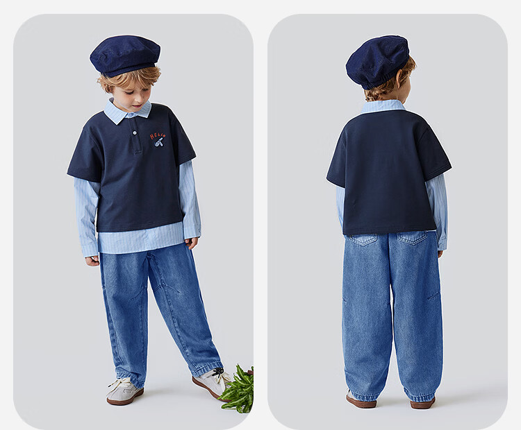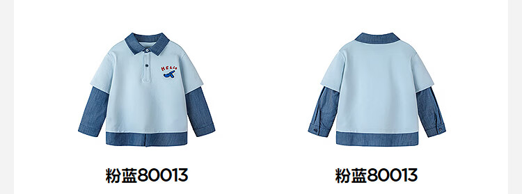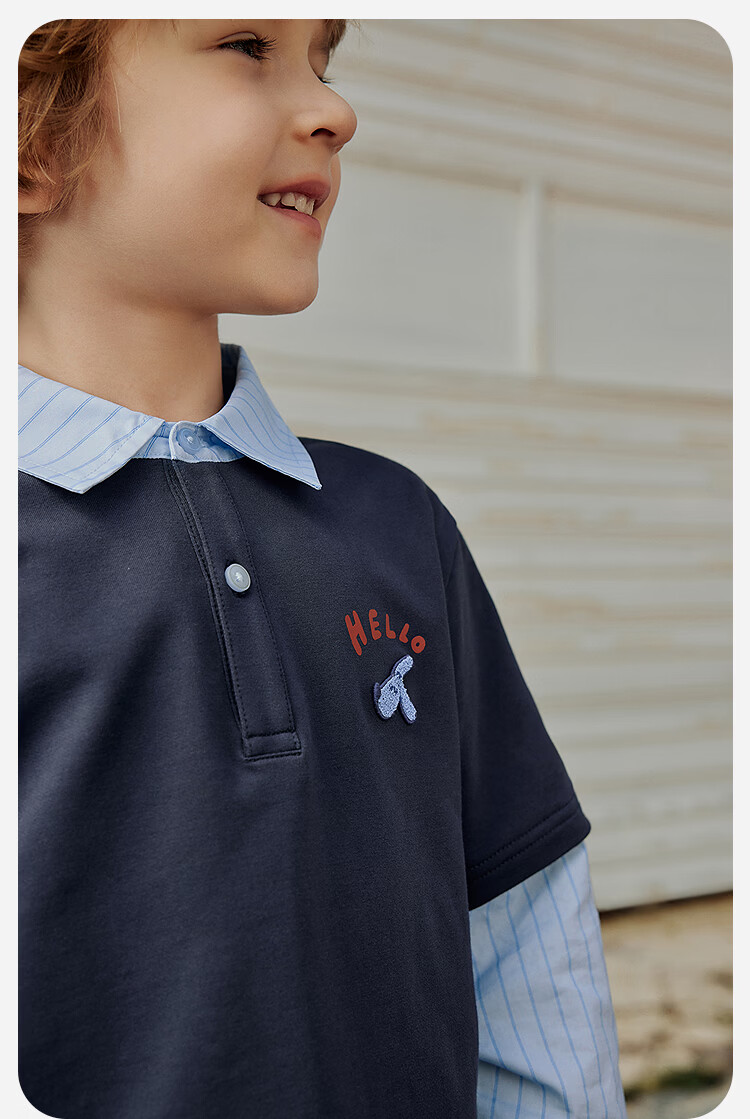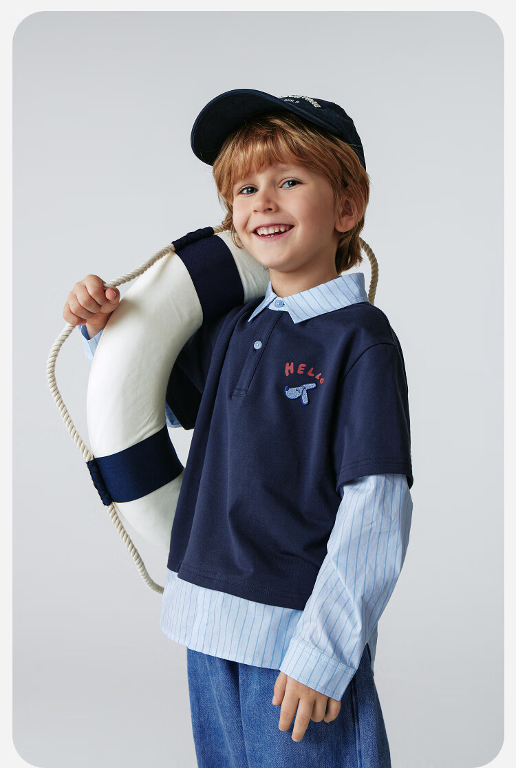 Mini Bala (minibala) boys and children fake two-piece long-sleeved T-shirt spring new soft and comfortable elastic college style top dark blue 80857 150