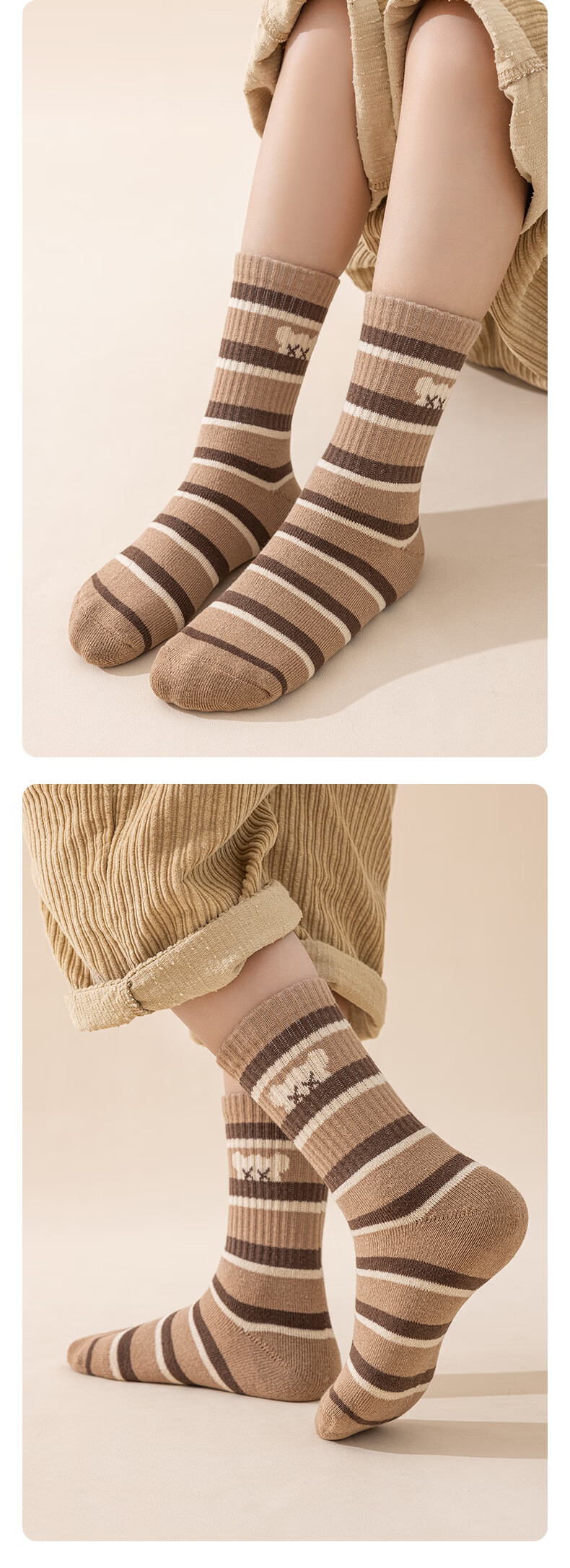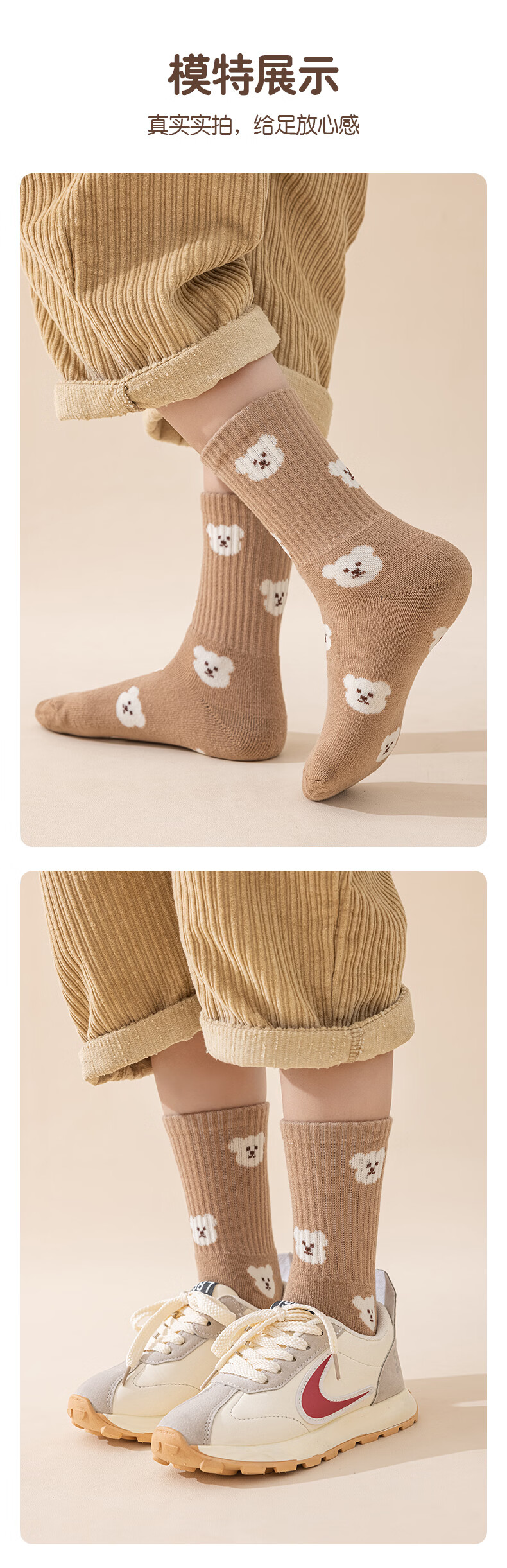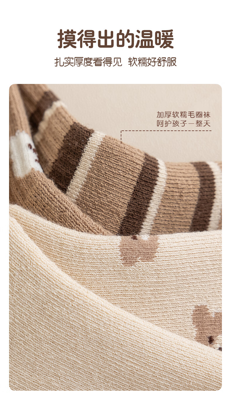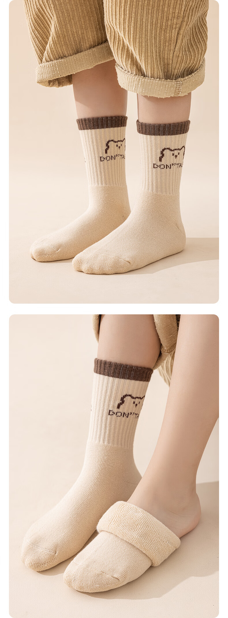 Girls' socks, autumn and winter children's cotton socks, bear terry sweat-absorbent mid-calf socks, girls' autumn and winter terry socks, bear terry, 10 pairs, 5-9 years old, 20-22cm (suitable for shoe sizes 31-34)