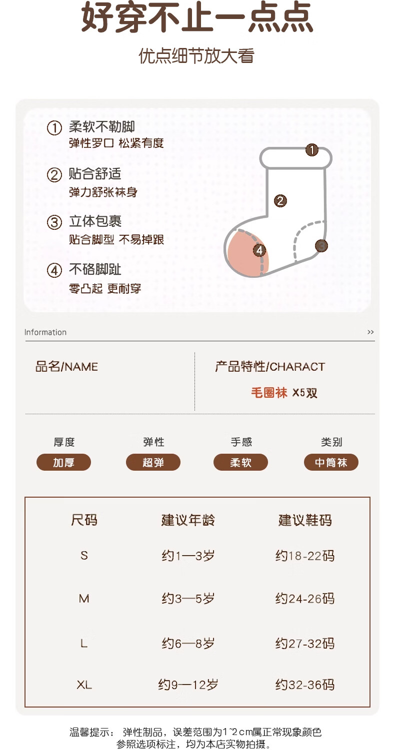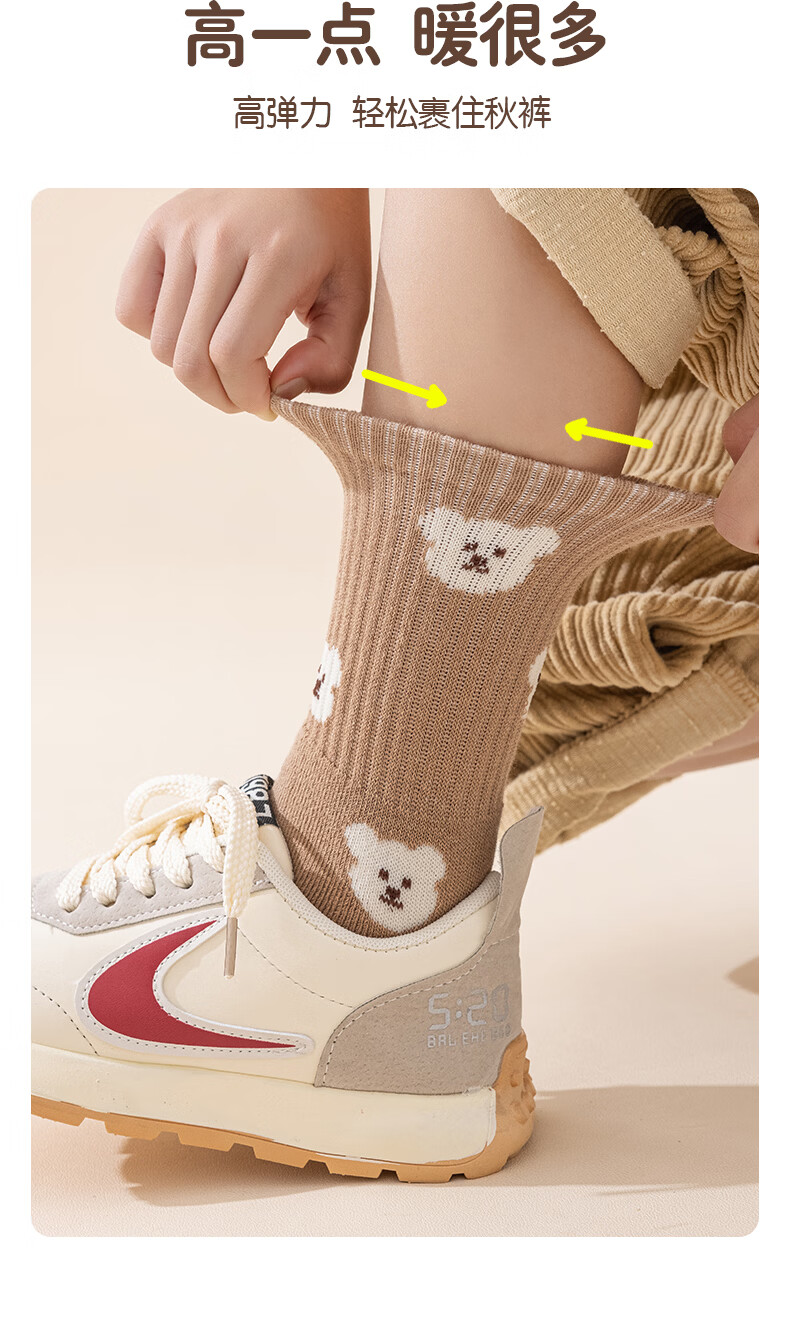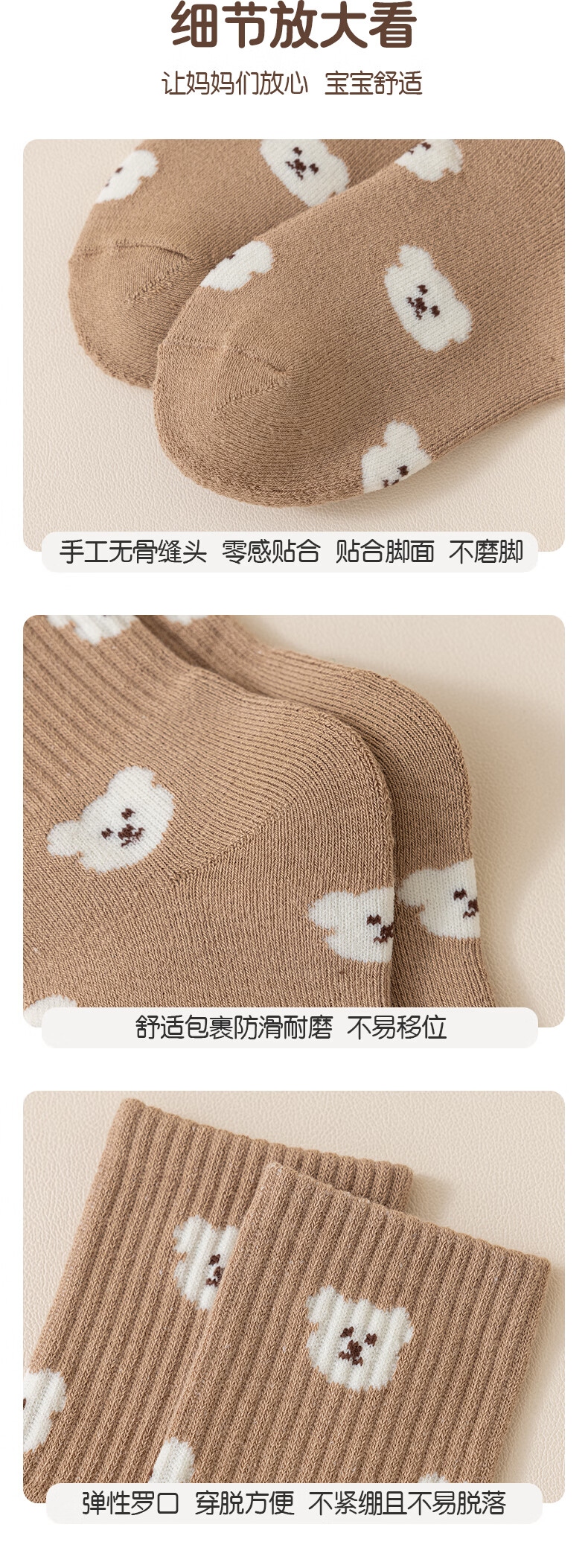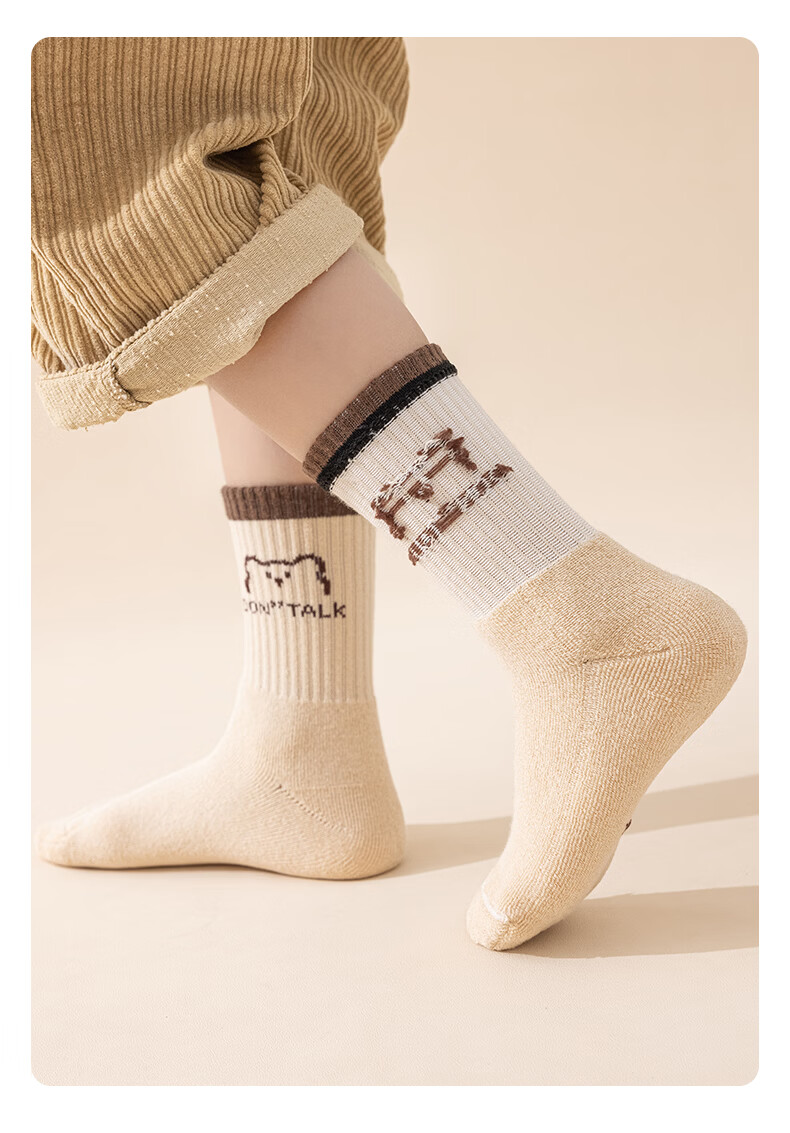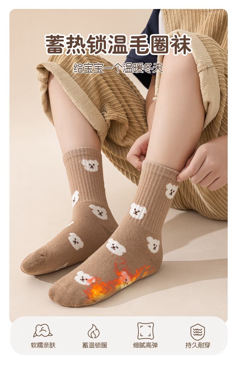 Girls' socks, autumn and winter children's cotton socks, bear terry sweat-absorbent mid-calf socks, girls' autumn and winter terry socks, bear terry, 10 pairs, 5-9 years old, 20-22cm (suitable for shoe sizes 31-34)