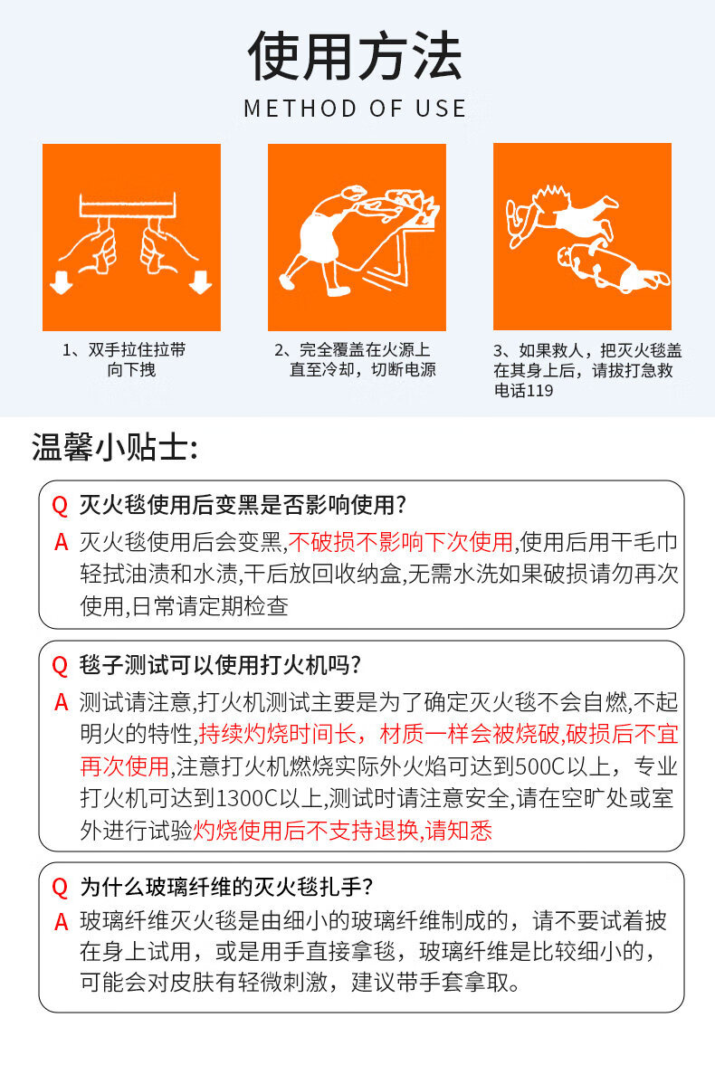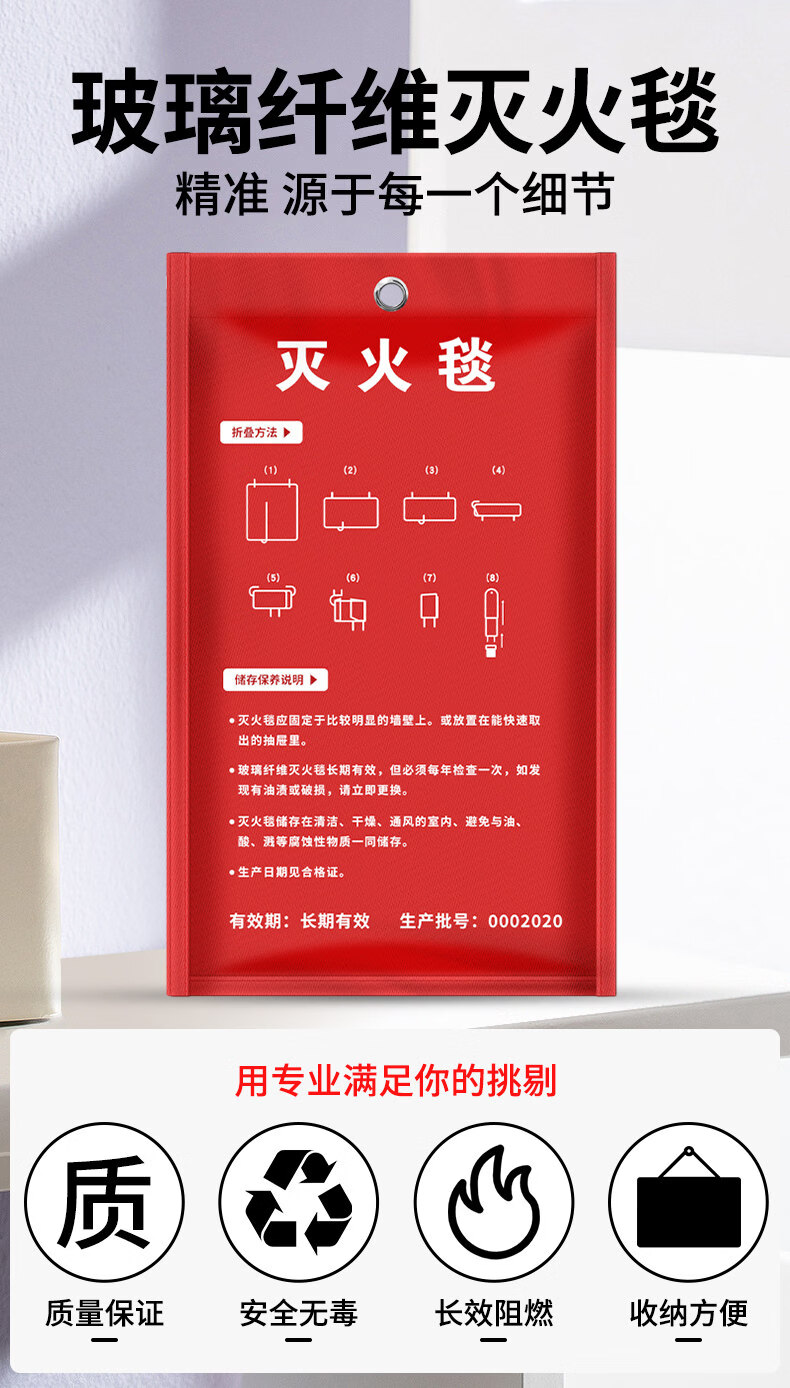 Fire blanket, commercial fire equipment, fiberglass national standard fire certification, special home kitchen escape fire blanket, fire mask