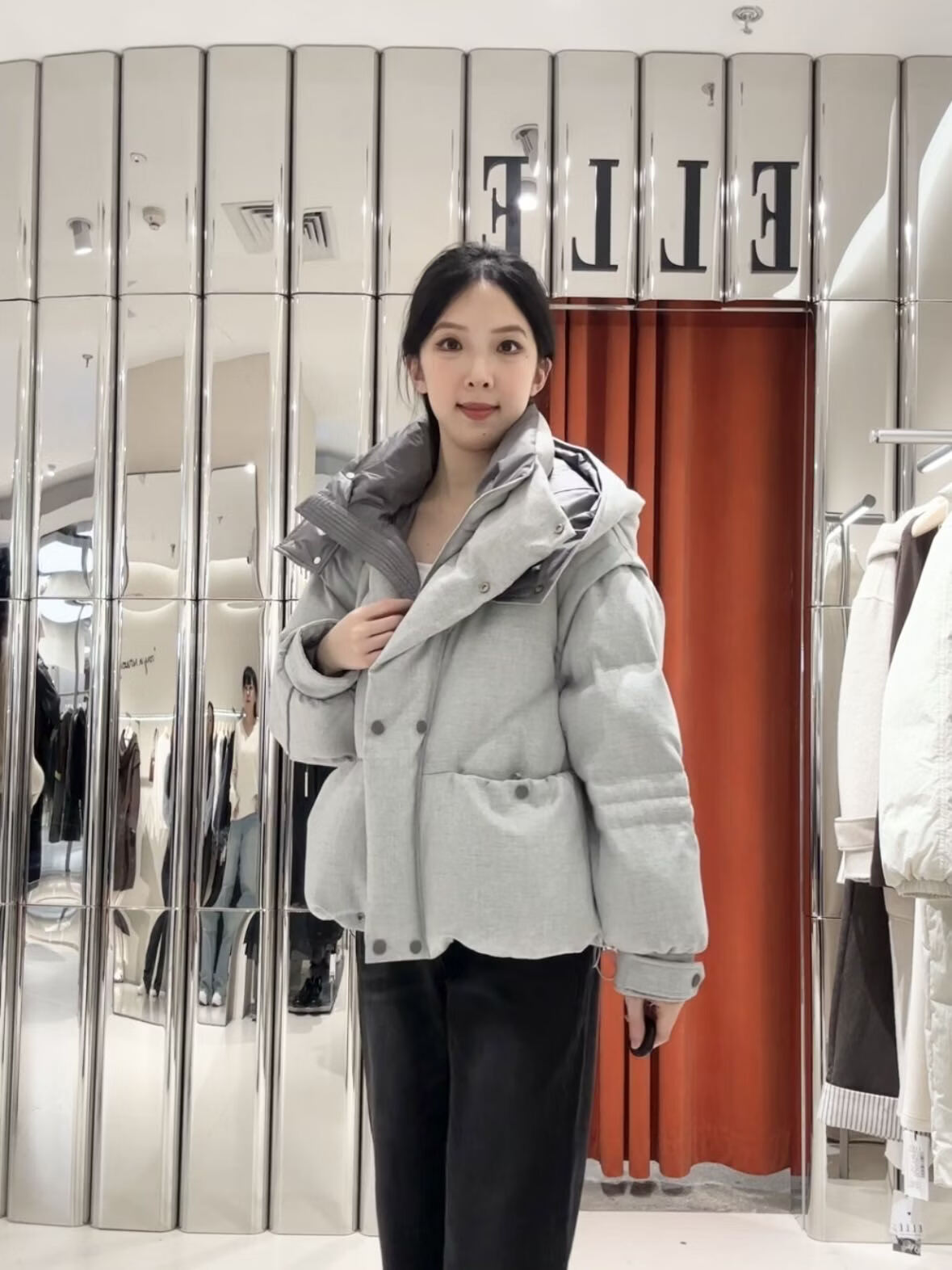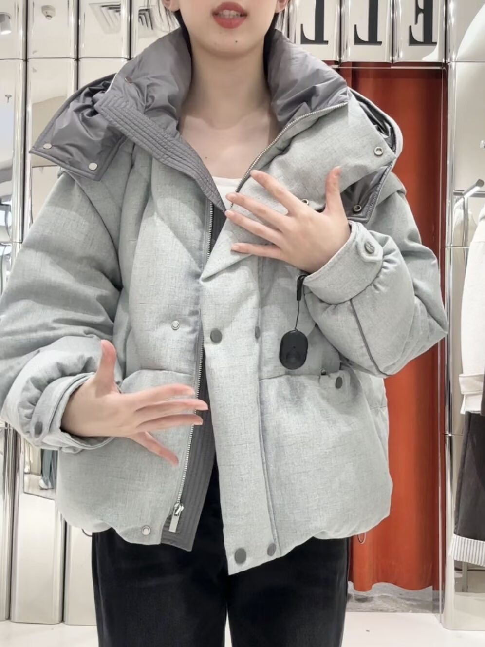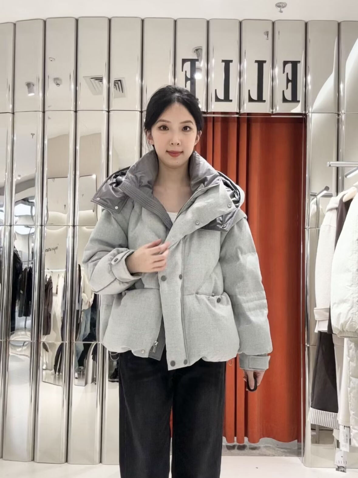 ELLE Women's Fashion Casual Down Jacket EY48894061 Light Gray M
