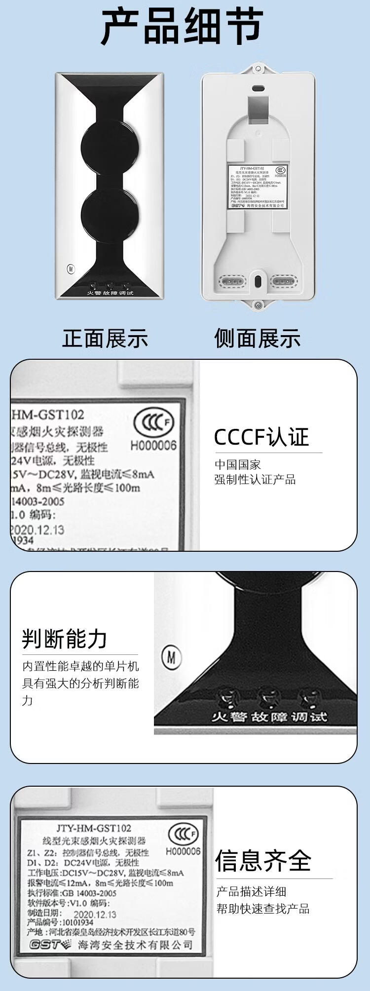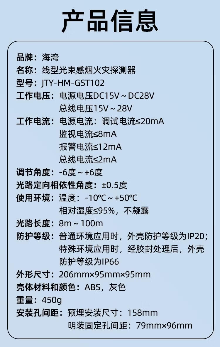 Gulf JTY-HM-GST102 linear beam smoke fire detector infrared through-beam reflector non-coded JTY-HM-GST102 (coded type)