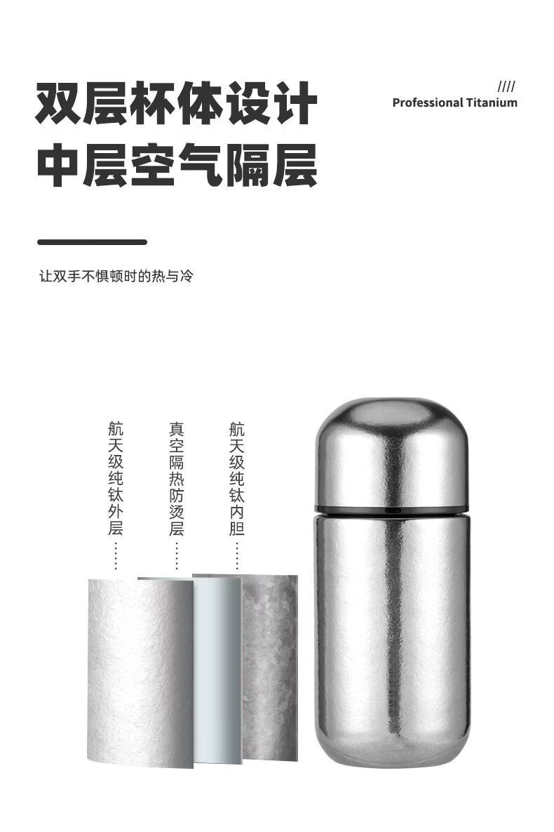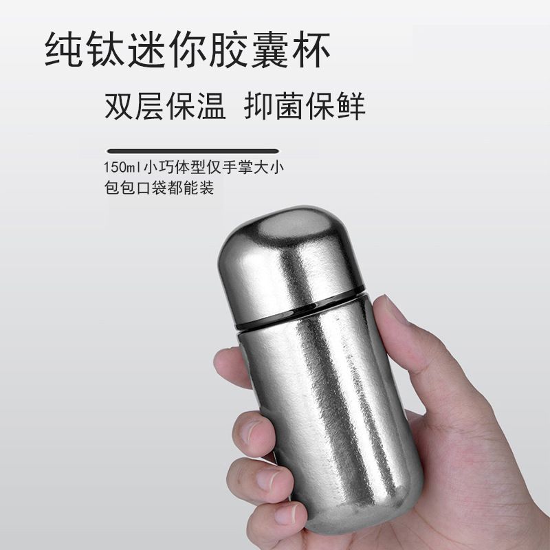 Yonghuan Factory Direct Sales Pure Titanium Insulated Cup Mini Ladies Portable Cup Compact Pocket Cup 150ml Capsule Cup Pure Titanium Inside and Out Haoyue Silver 150ml