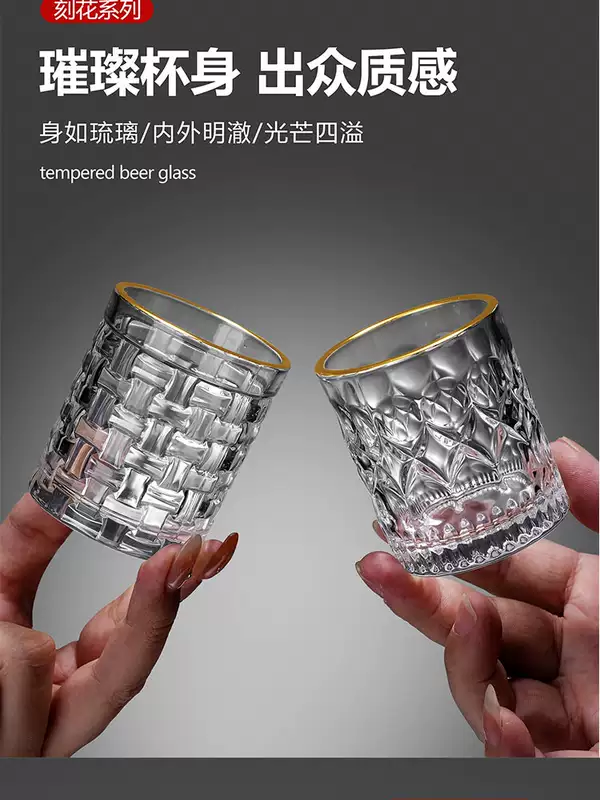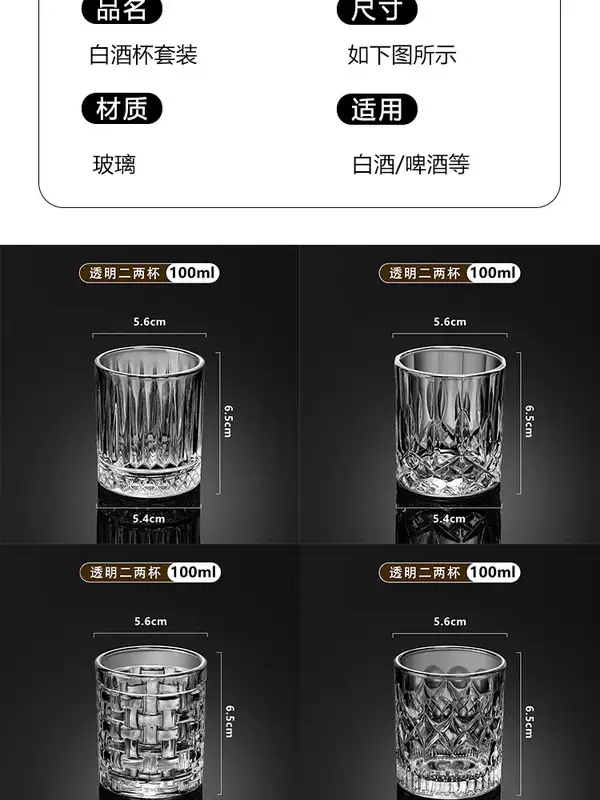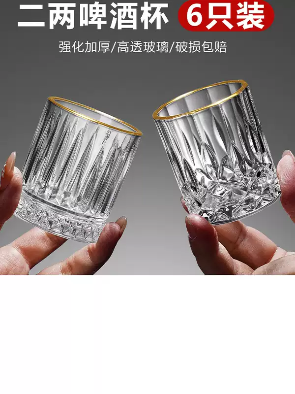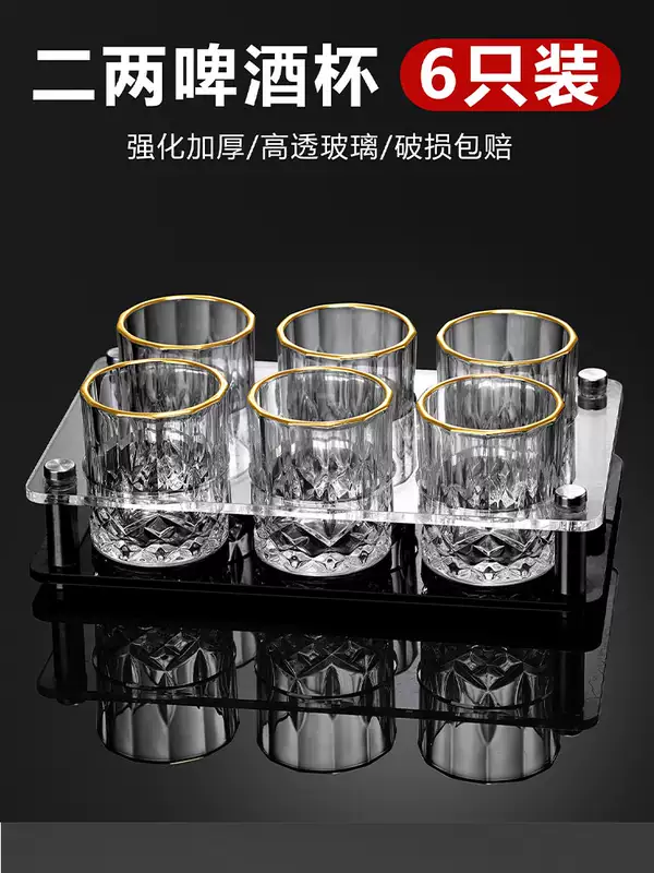 Yusenyi Home Thick Wine Glass Two Liang White Spirit Drinking Set Cup Small Glass Beer Cup Commercial Bottom Small Wine Cup Bamboo and Rattan (Transparent 8 Pack) Two Liang Wine Glass-PC Stand