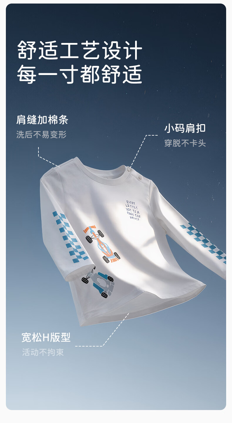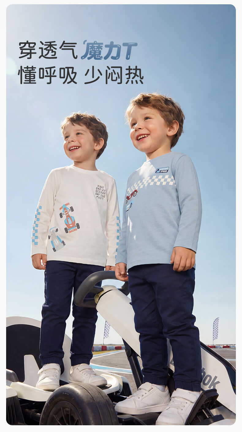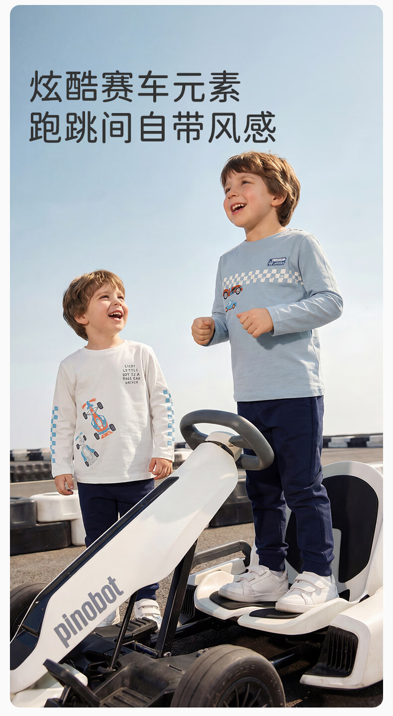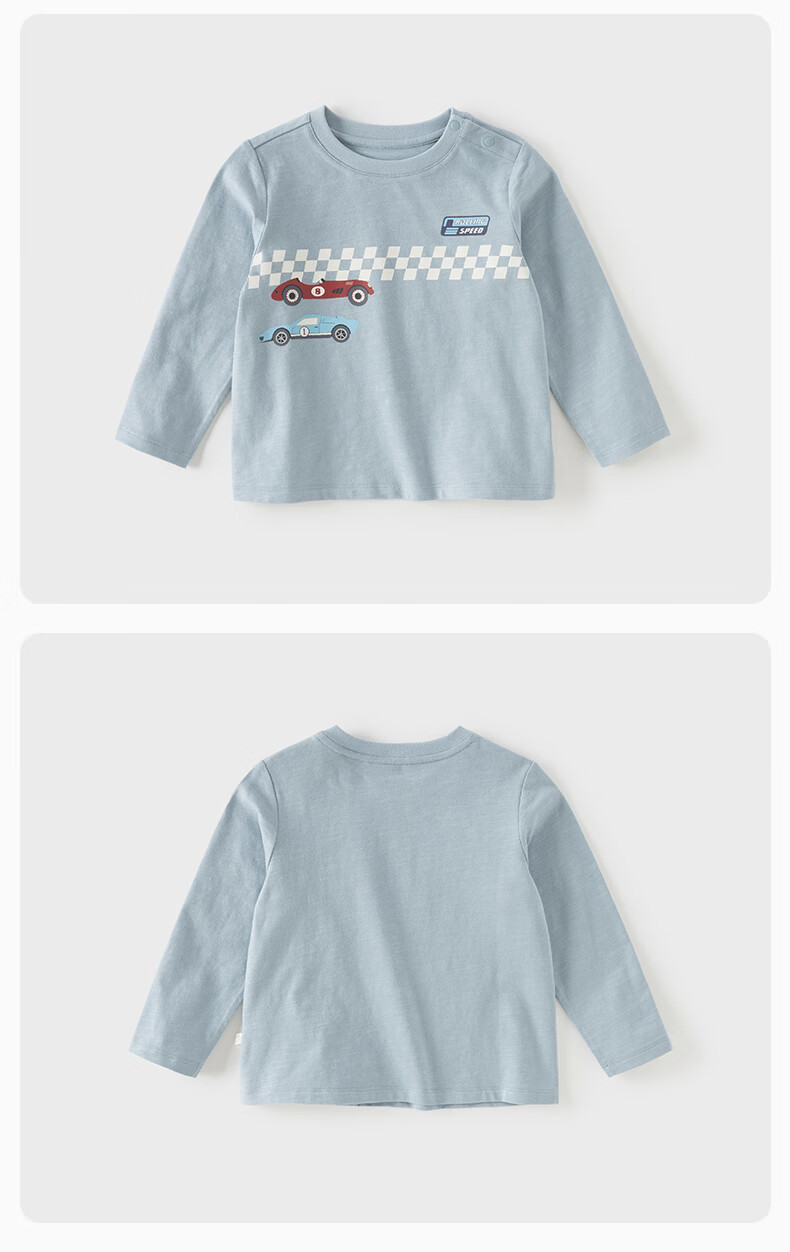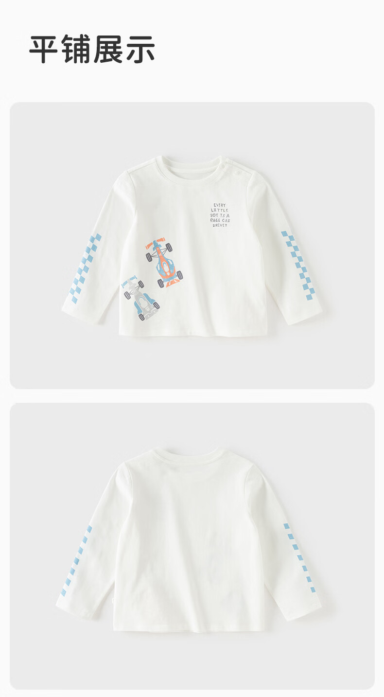 DAVE&BELLA children's long-sleeved T-shirt 2026 spring new pure cotton boys' bottoming shirt boys' tops children's pullover steam white ready stock 73 cm (recommended height 66-73cm)