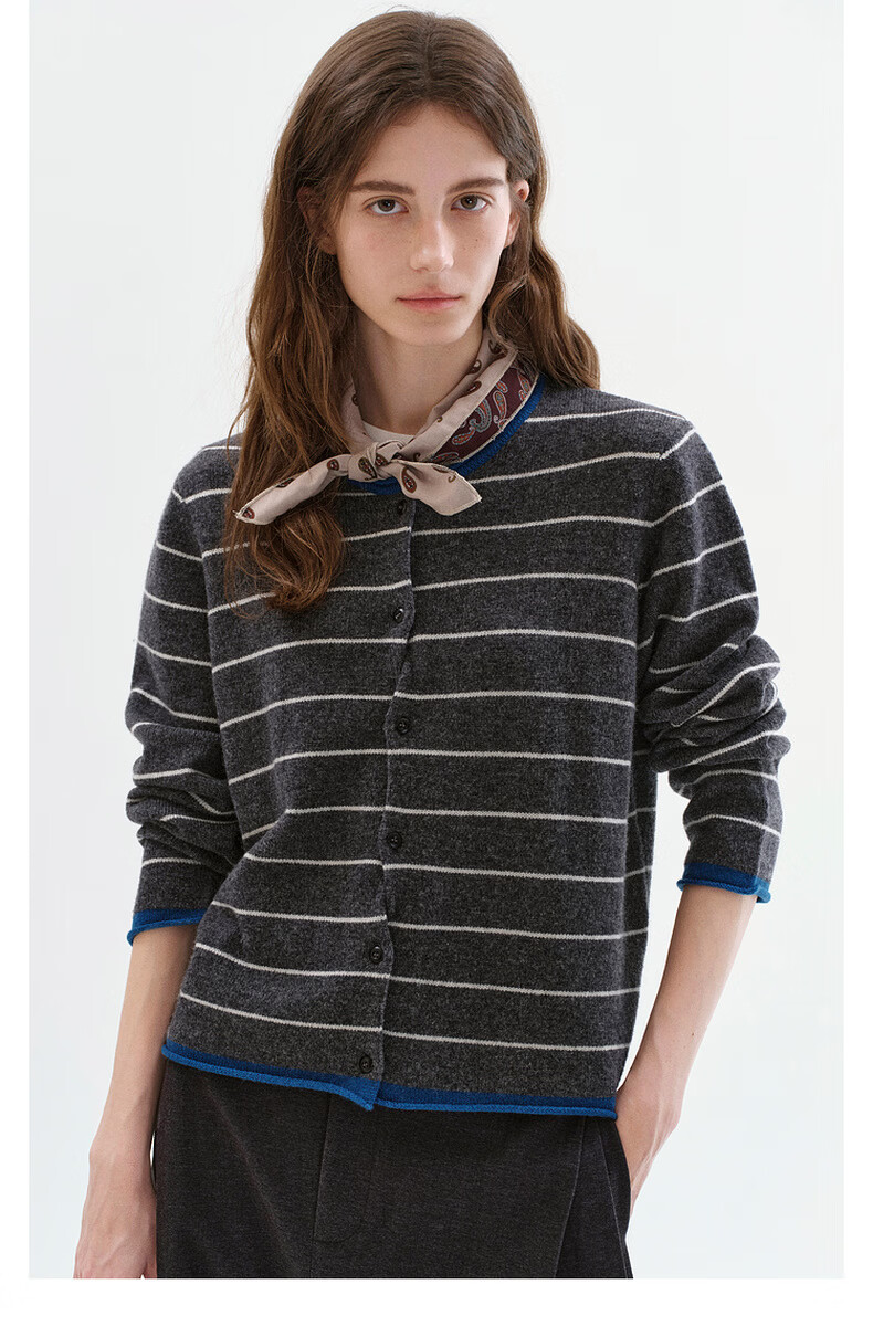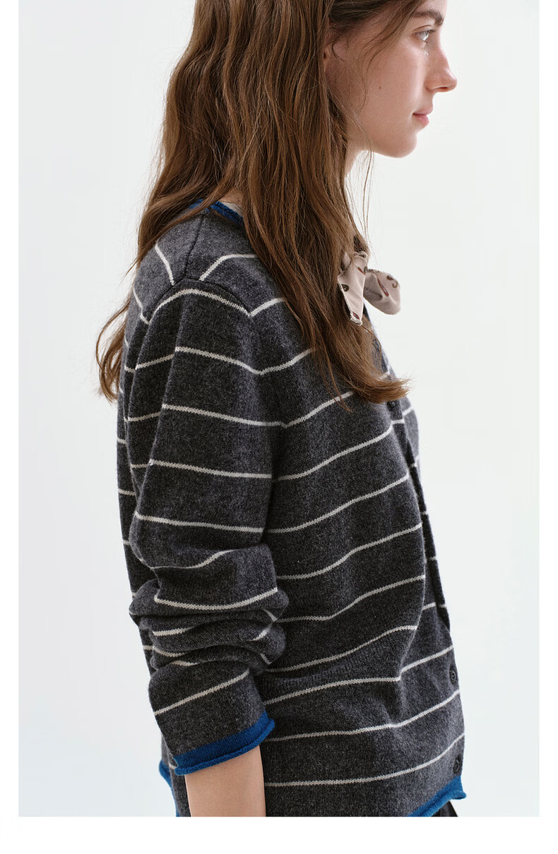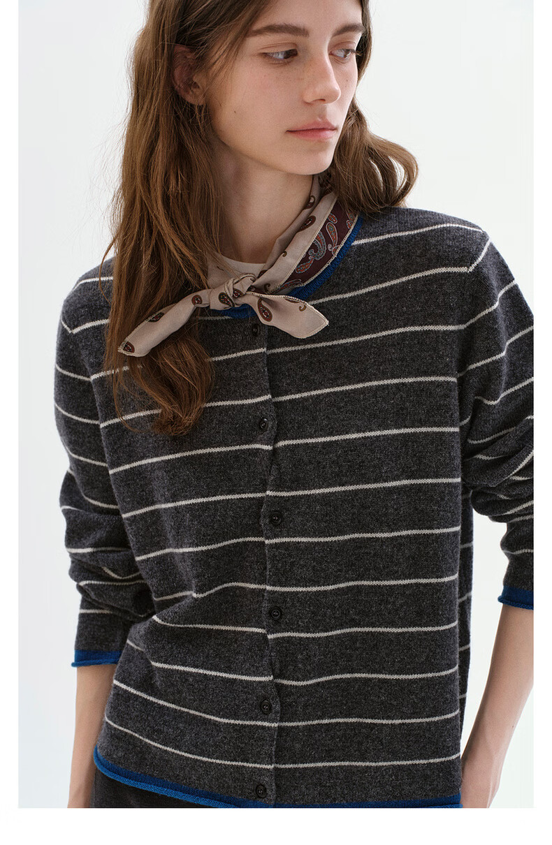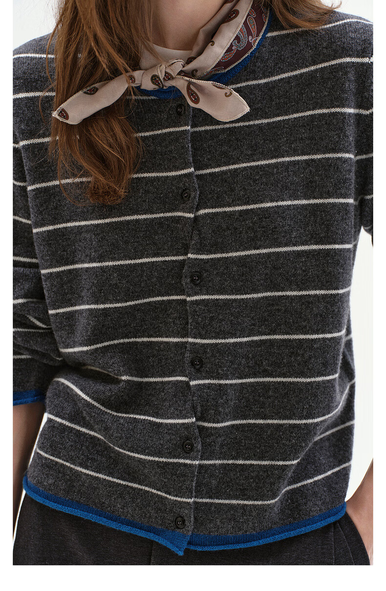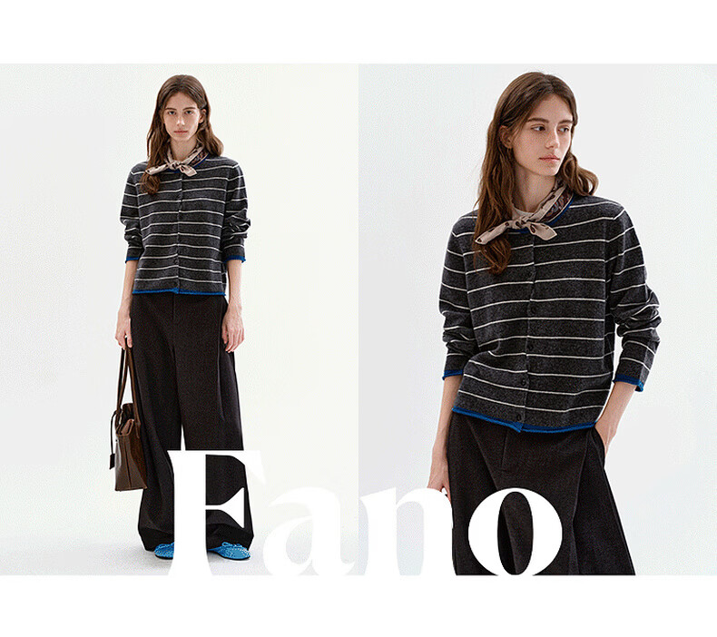 Fano studios Fan Luo Fano 100 sheep wool knitted cardigan spring new soft waxy skin-friendly lazy feeling contrast striped top gray stripes ready stock S