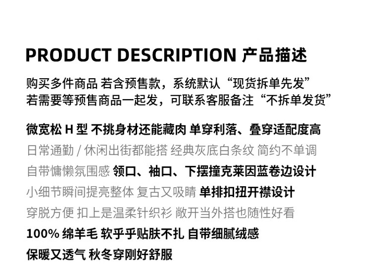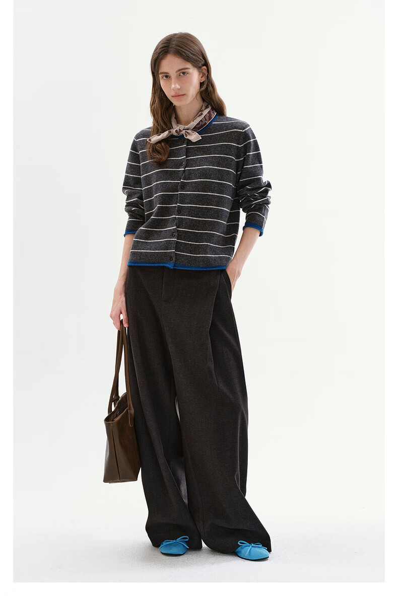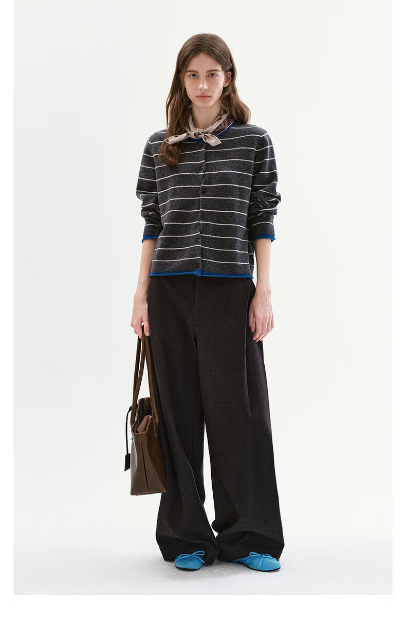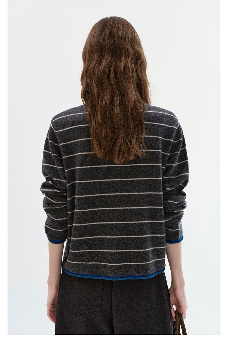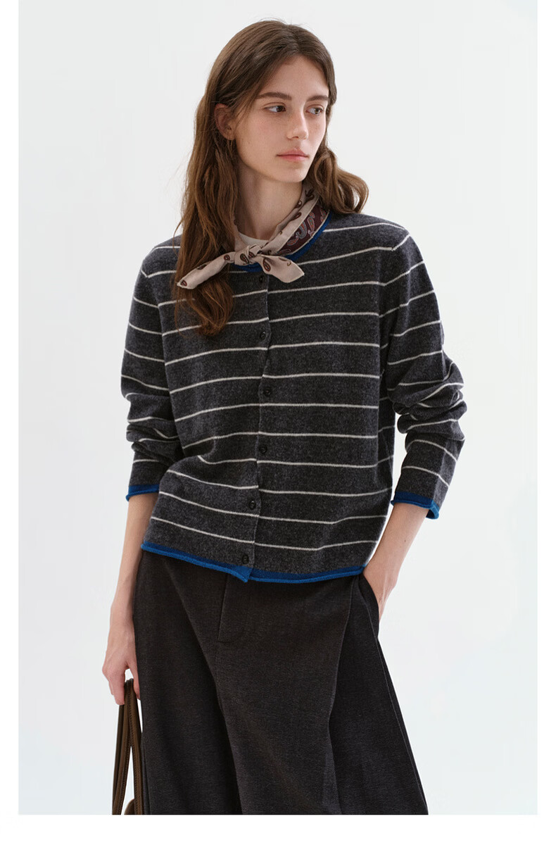 Fano studios Fan Luo Fano 100 sheep wool knitted cardigan spring new soft waxy skin-friendly lazy feeling contrast striped top gray stripes ready stock S