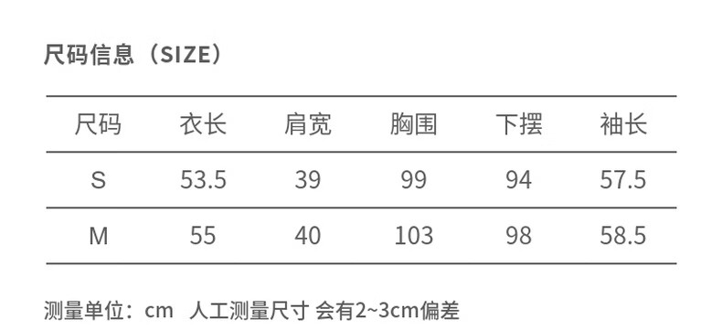 Size (cm) 42 44 46 48 50