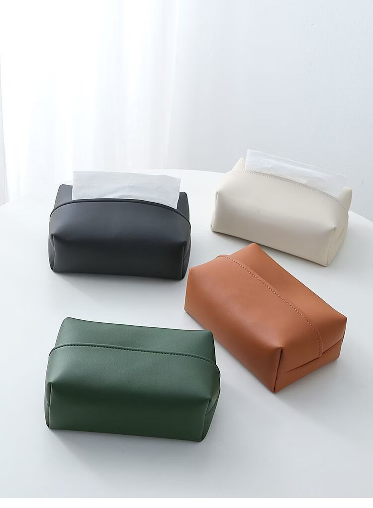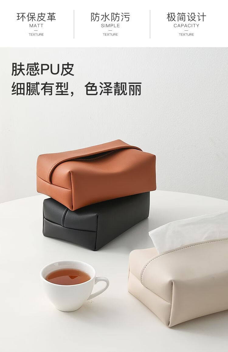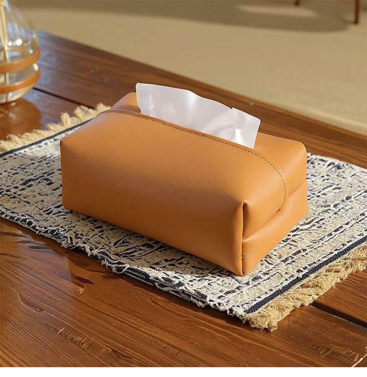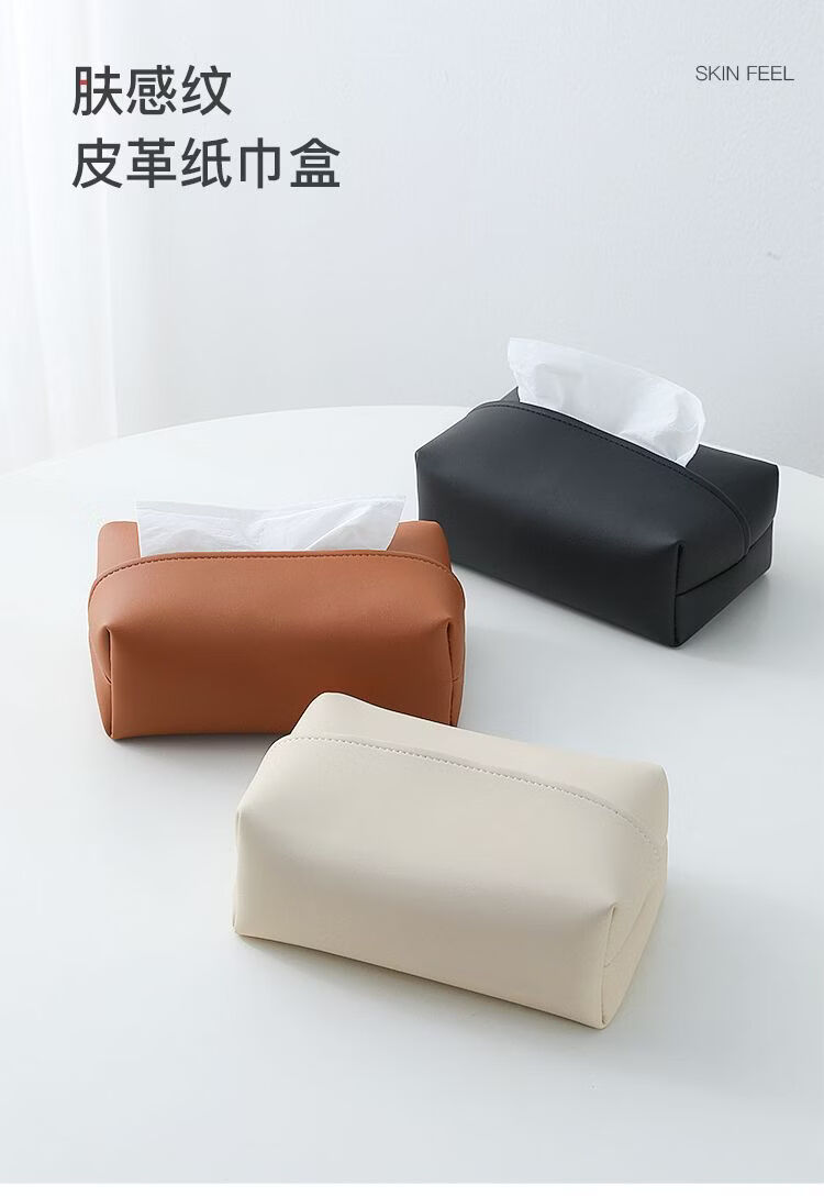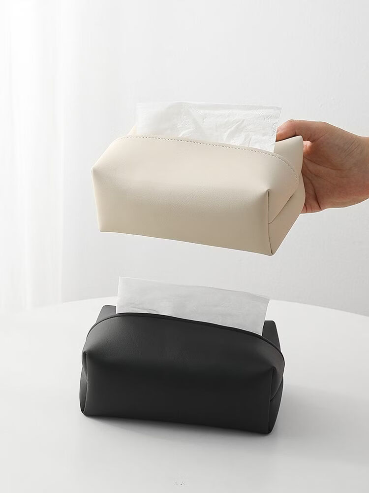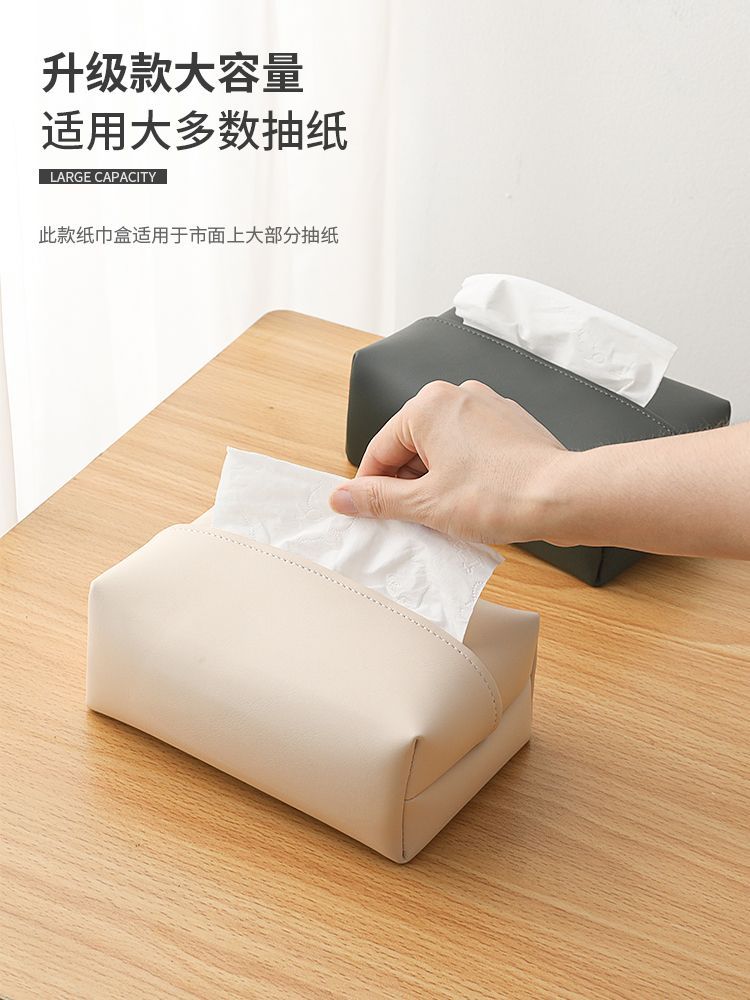 Fantasy solid color leather tissue box large bag desktop tissue box living room napkin box bathroom bedroom bedside table light luxury beige (skin-feeling tissue box)