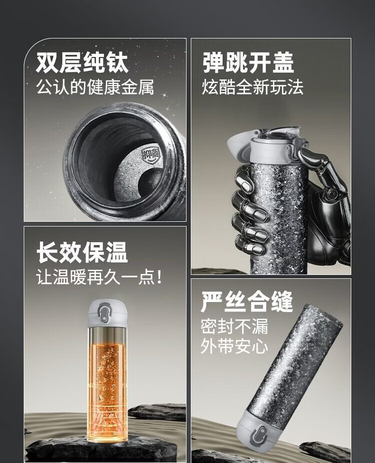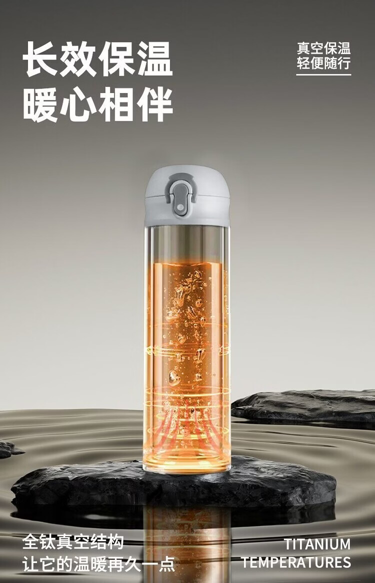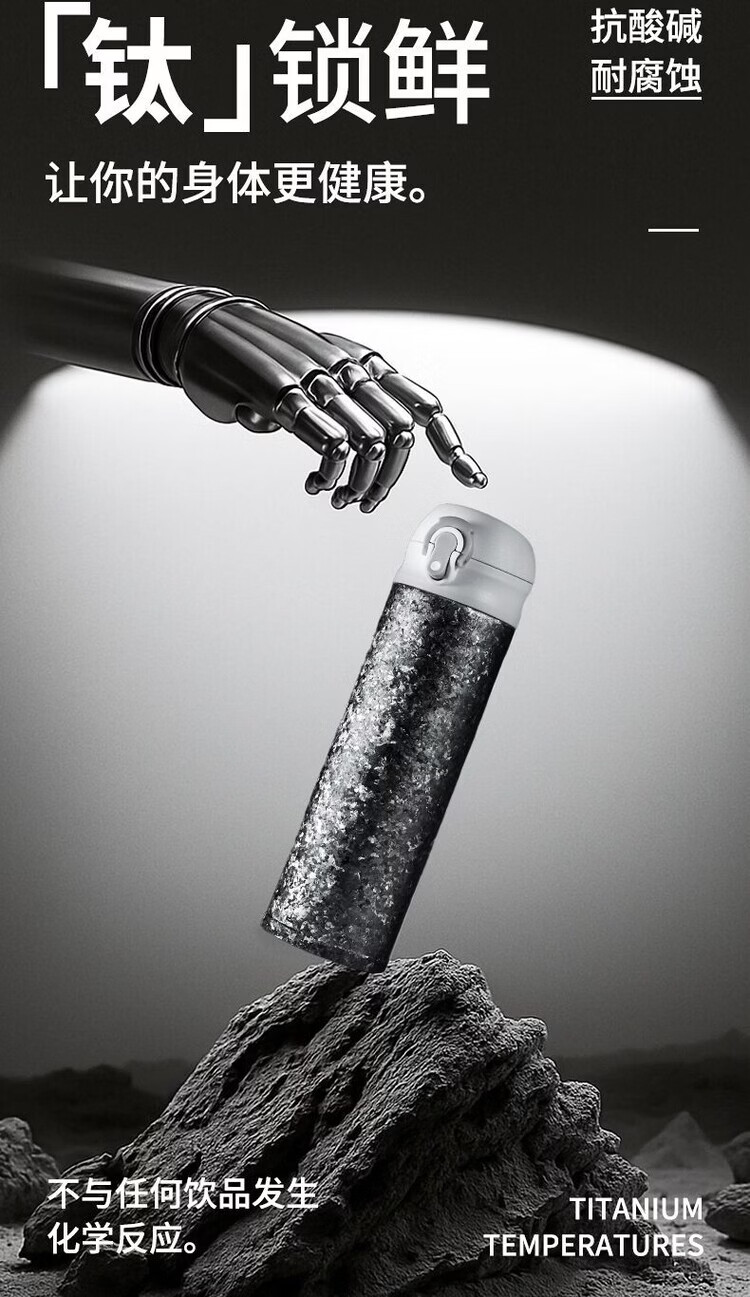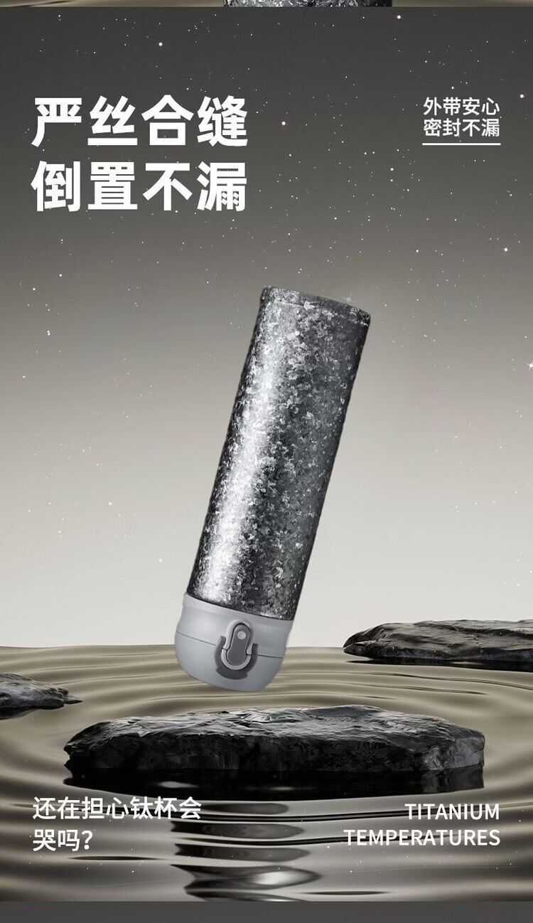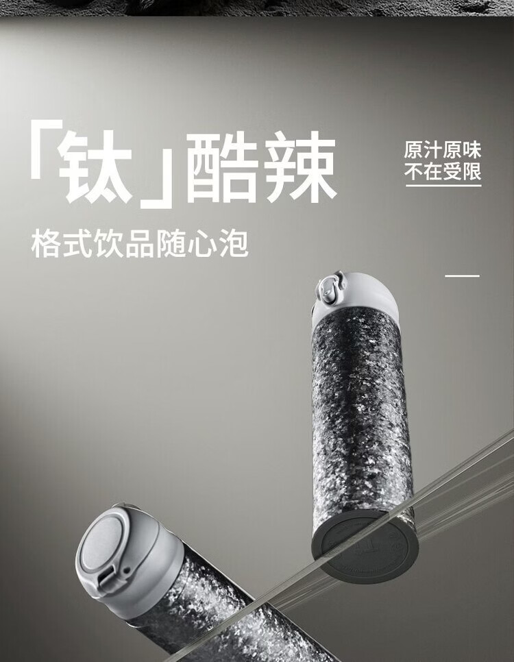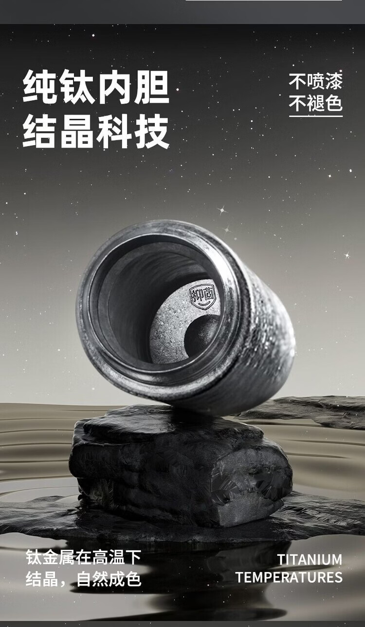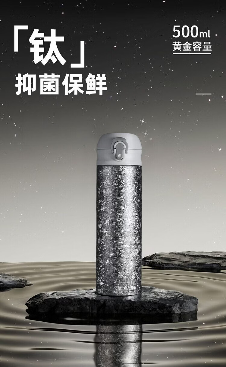 Pupan's high-looking water cup, pure titanium water cup, car-mounted bounce portable new thermos cup, pure titanium cup, tea cup, student 99.9% pure titanium ice crystal powder 350ML