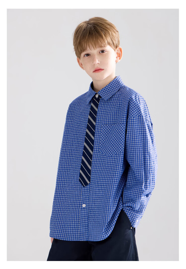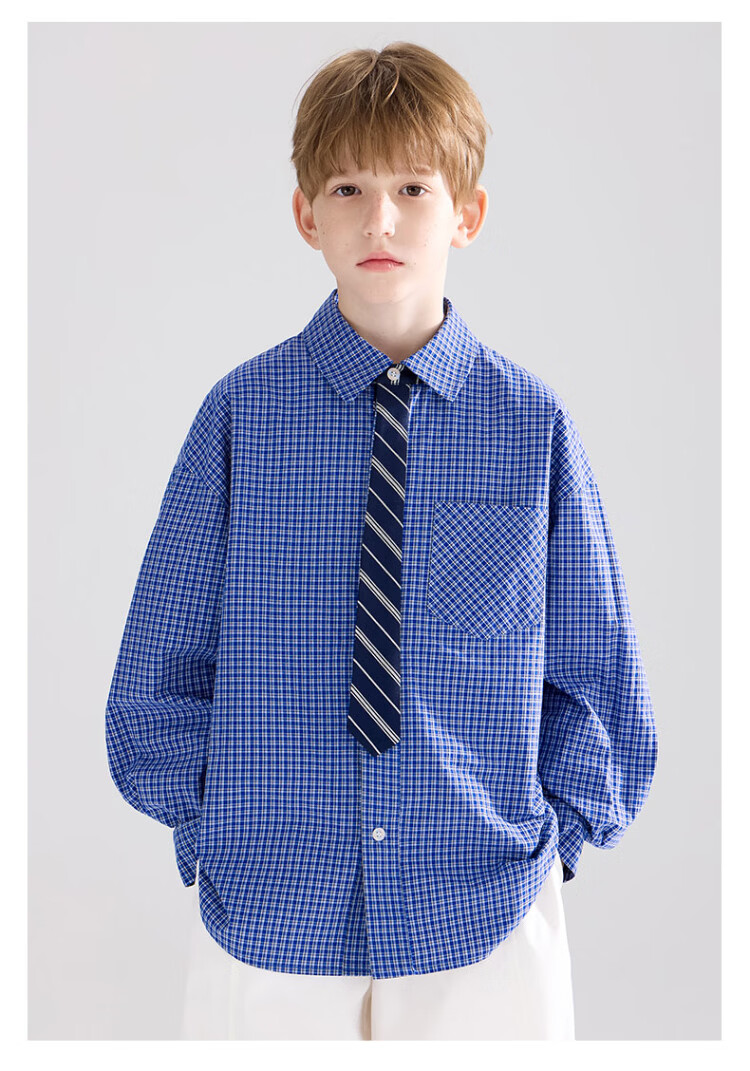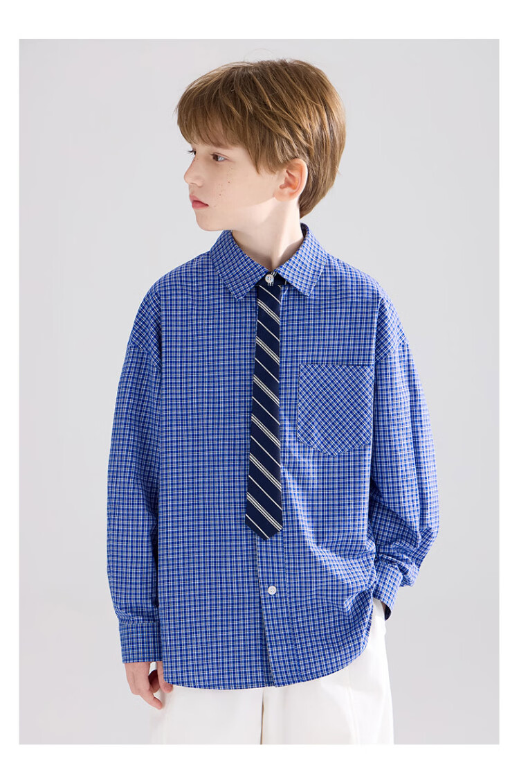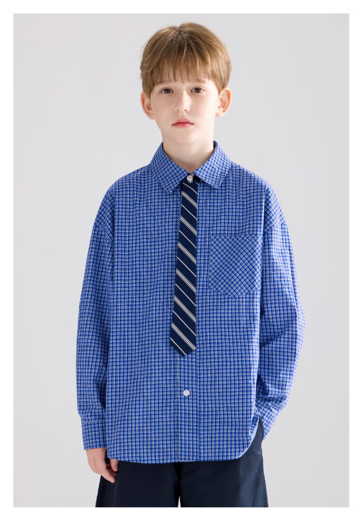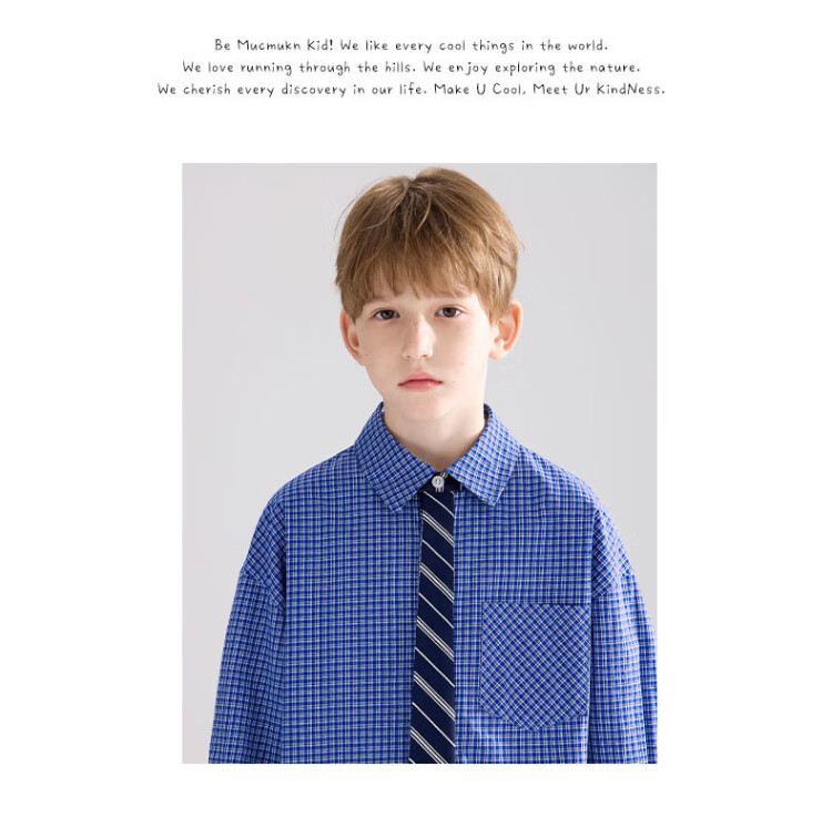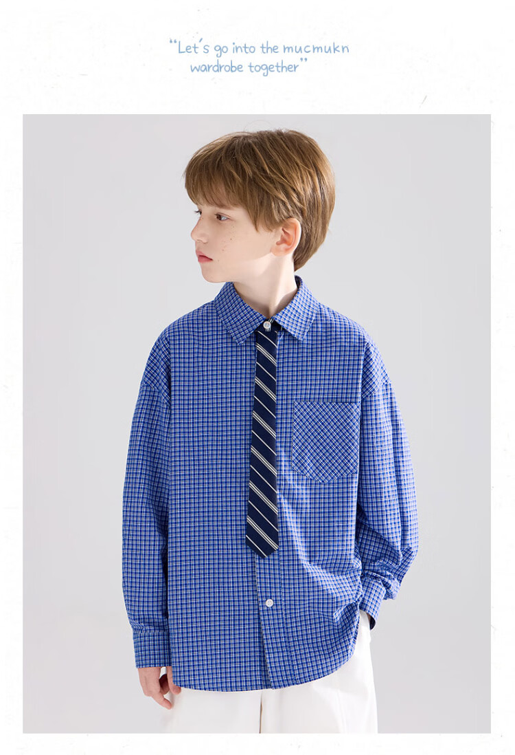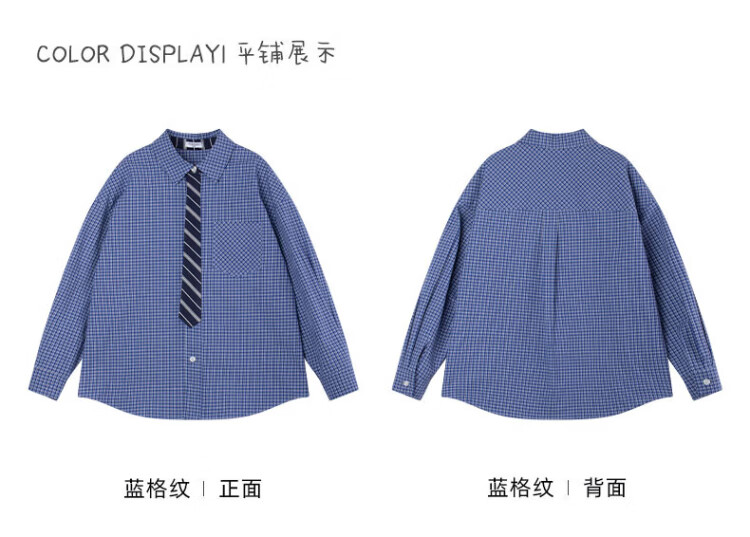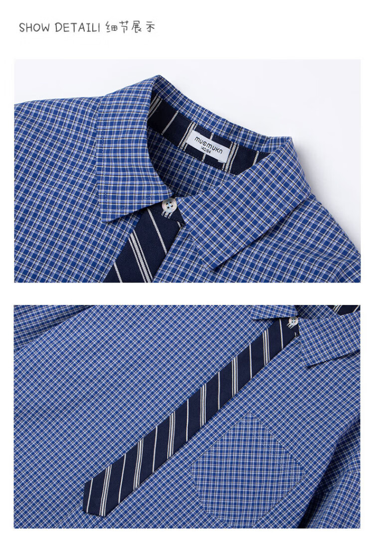 Mucmukn Muke college freshman blue plaid tie design layered shirt for boys and girls 26 spring new style blue plaid 160 cm