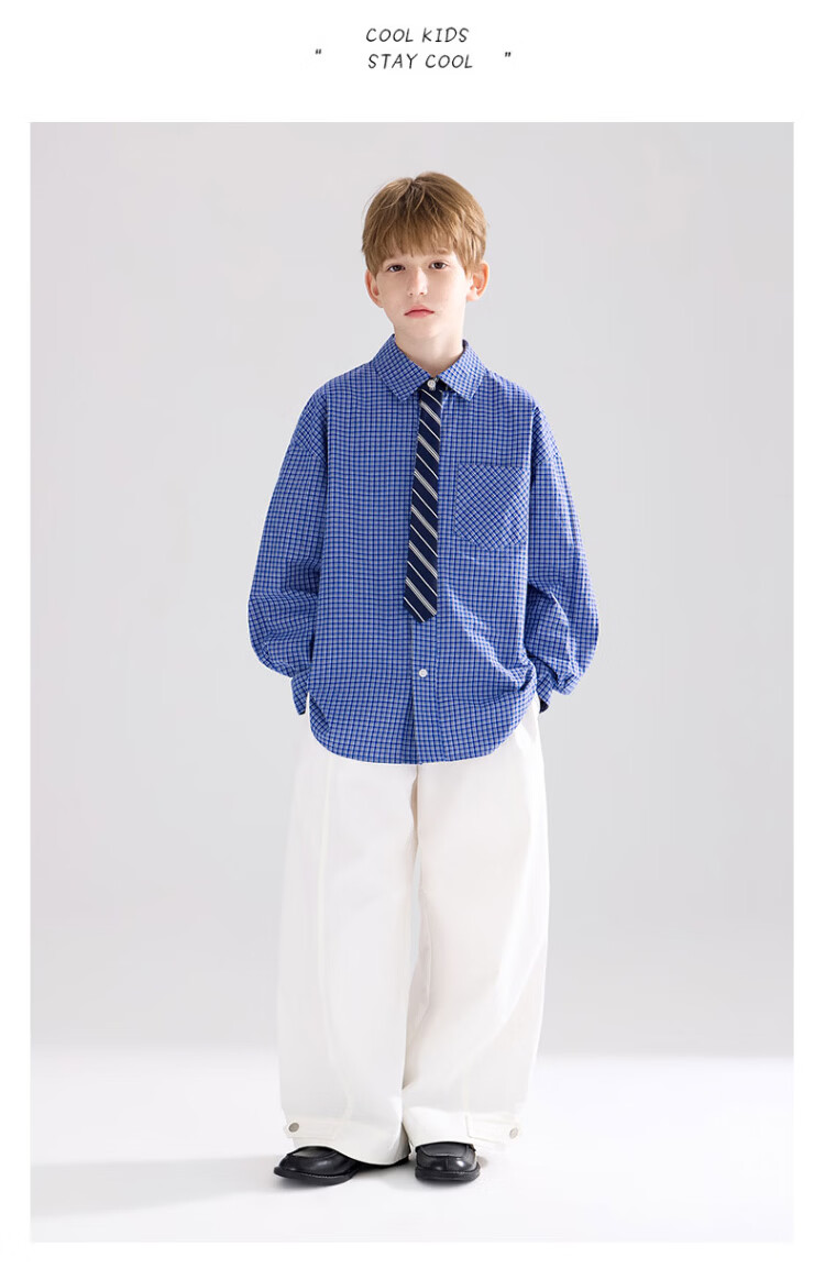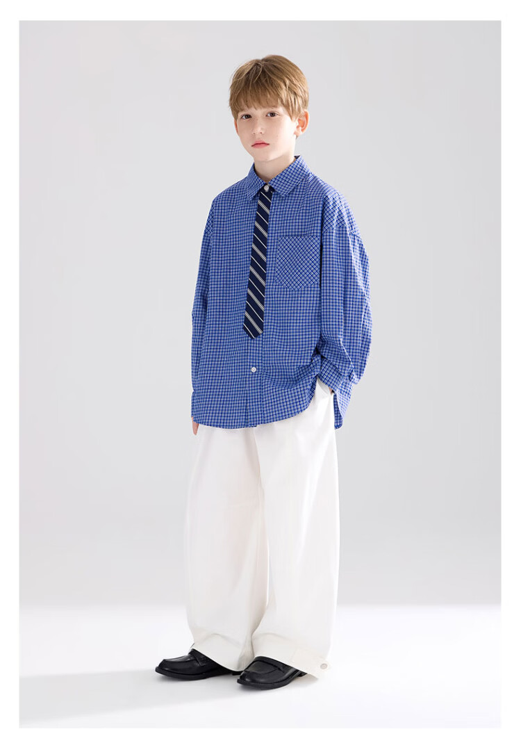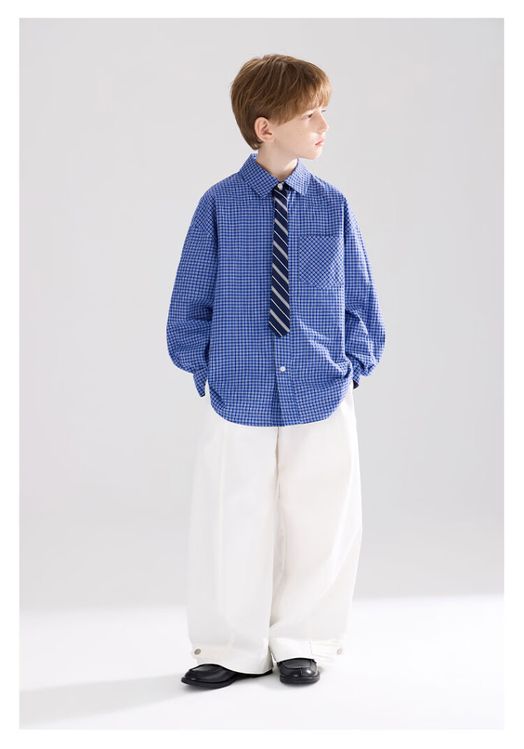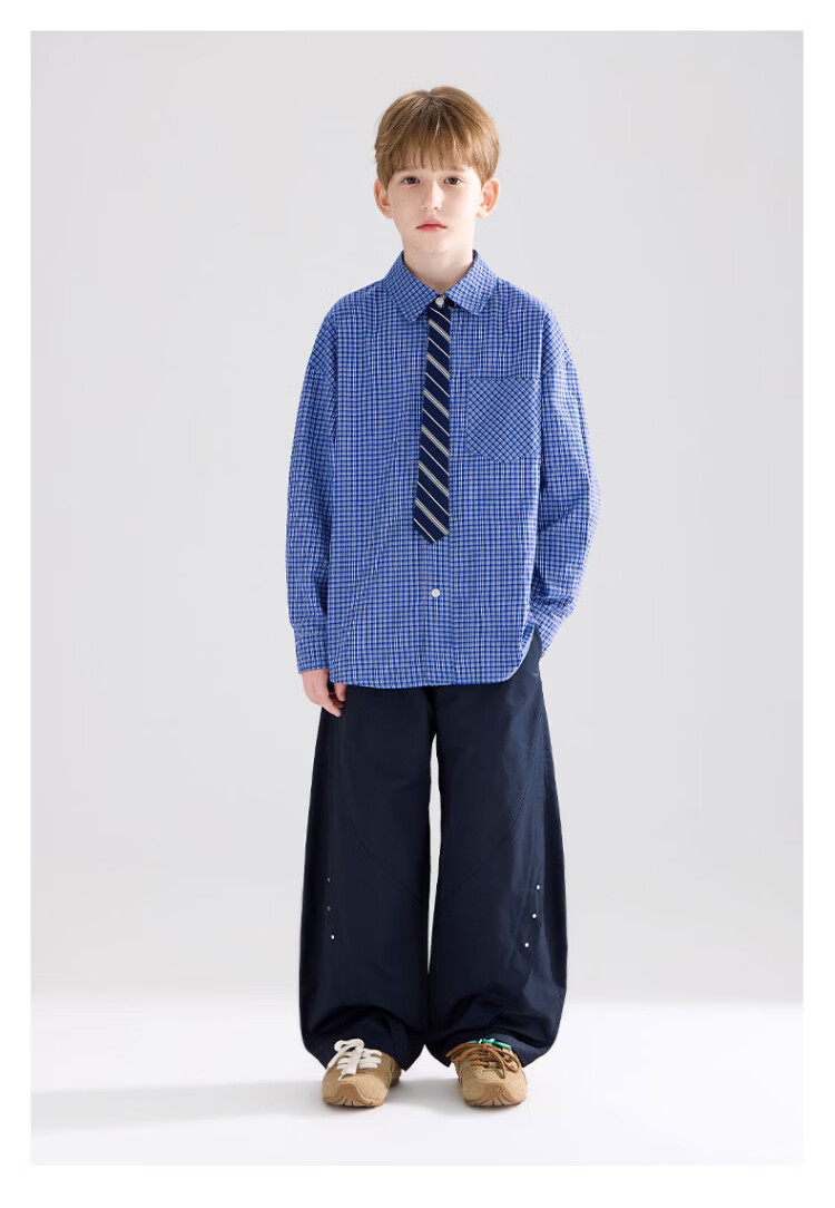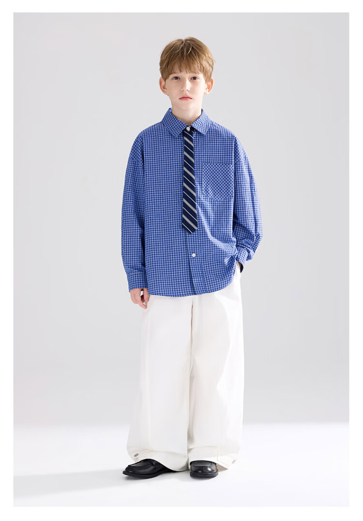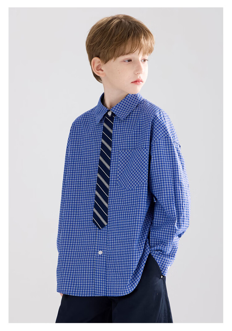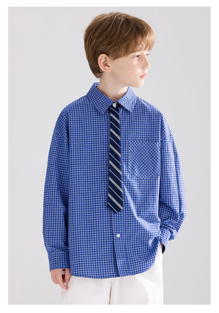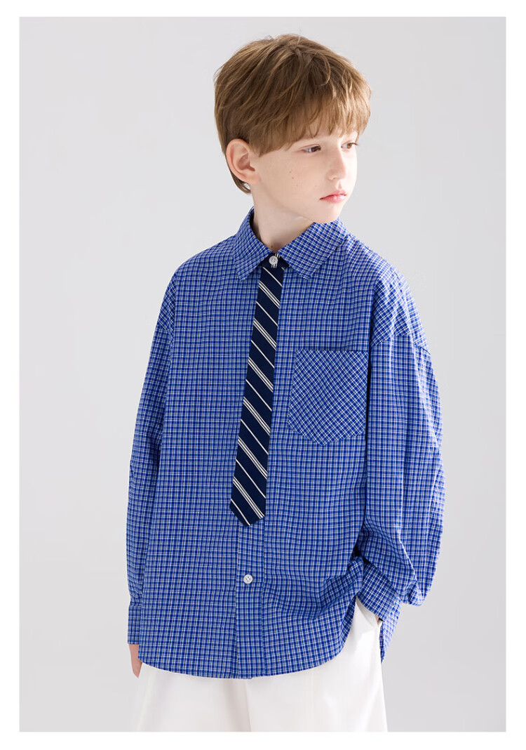 Mucmukn Muke college freshman blue plaid tie design layered shirt for boys and girls 26 spring new style blue plaid 160 cm
