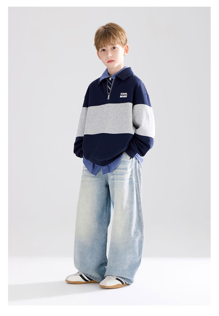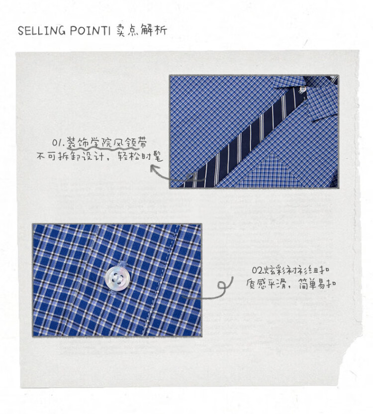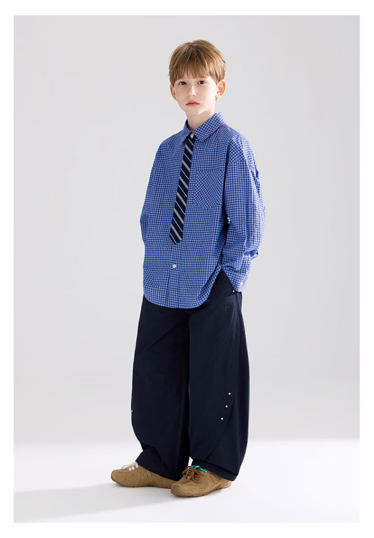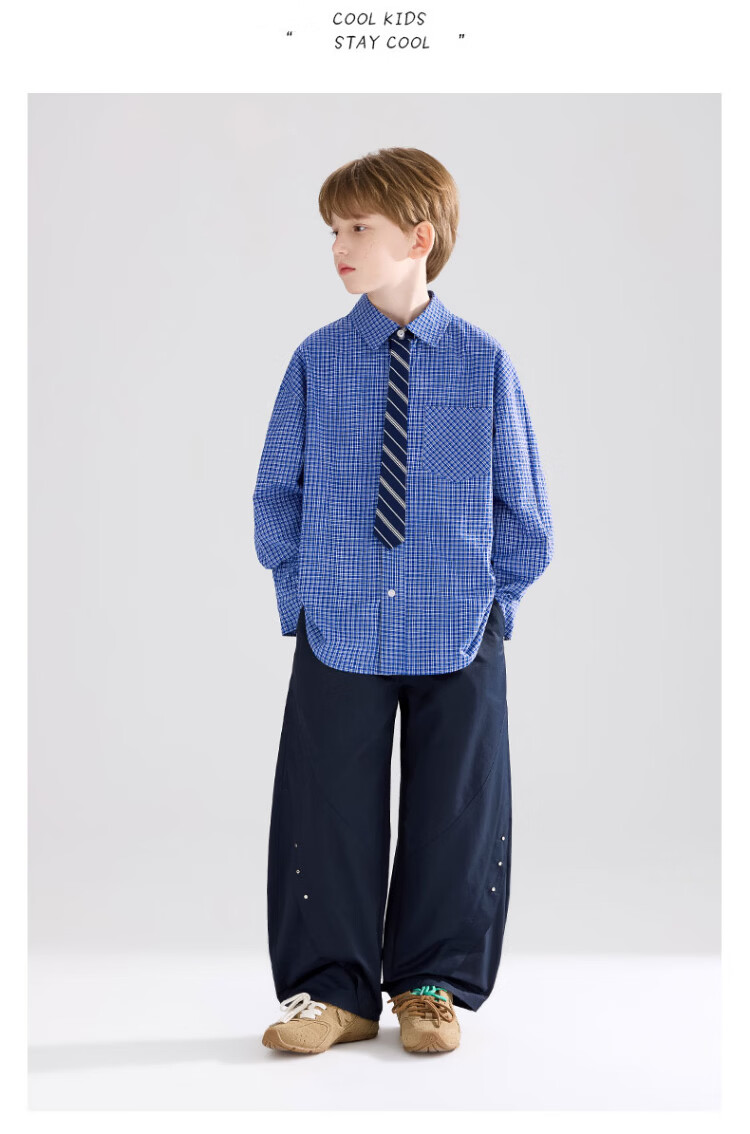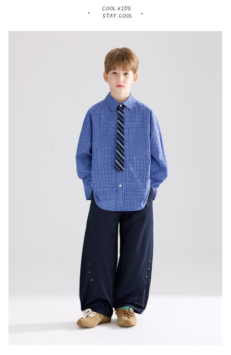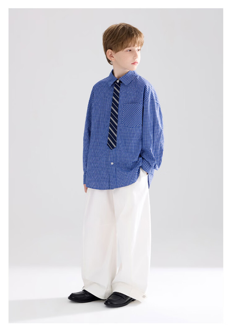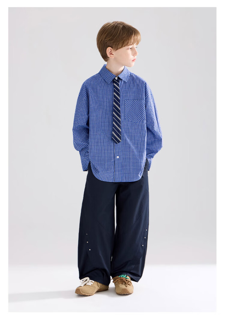 Mucmukn Muke college freshman blue plaid tie design layered shirt for boys and girls 26 spring new style blue plaid 160 cm