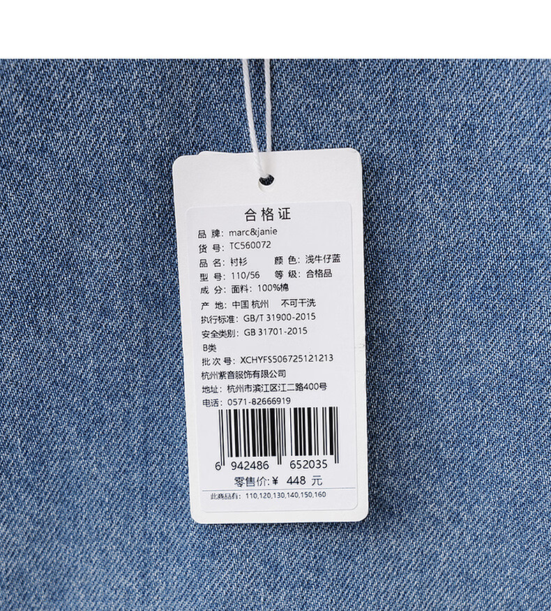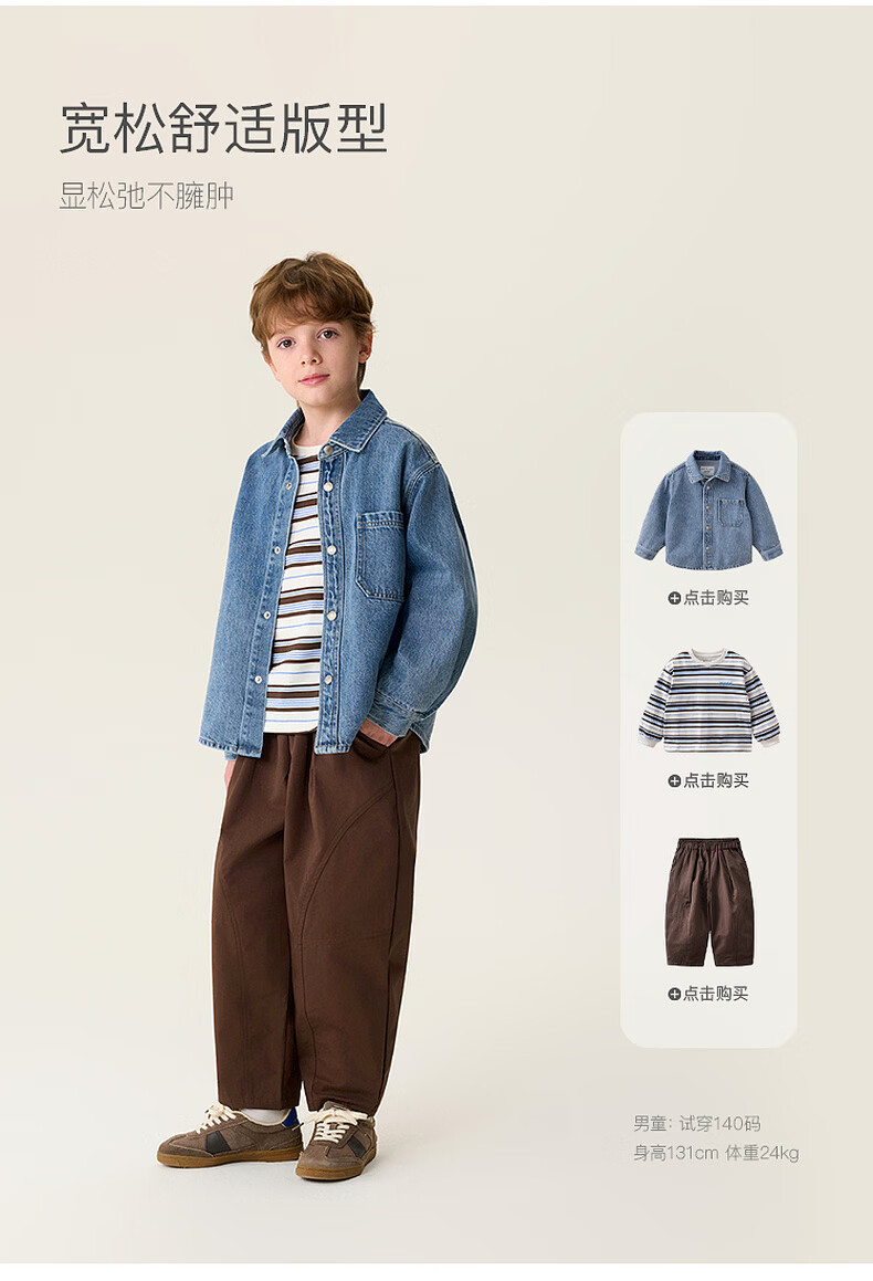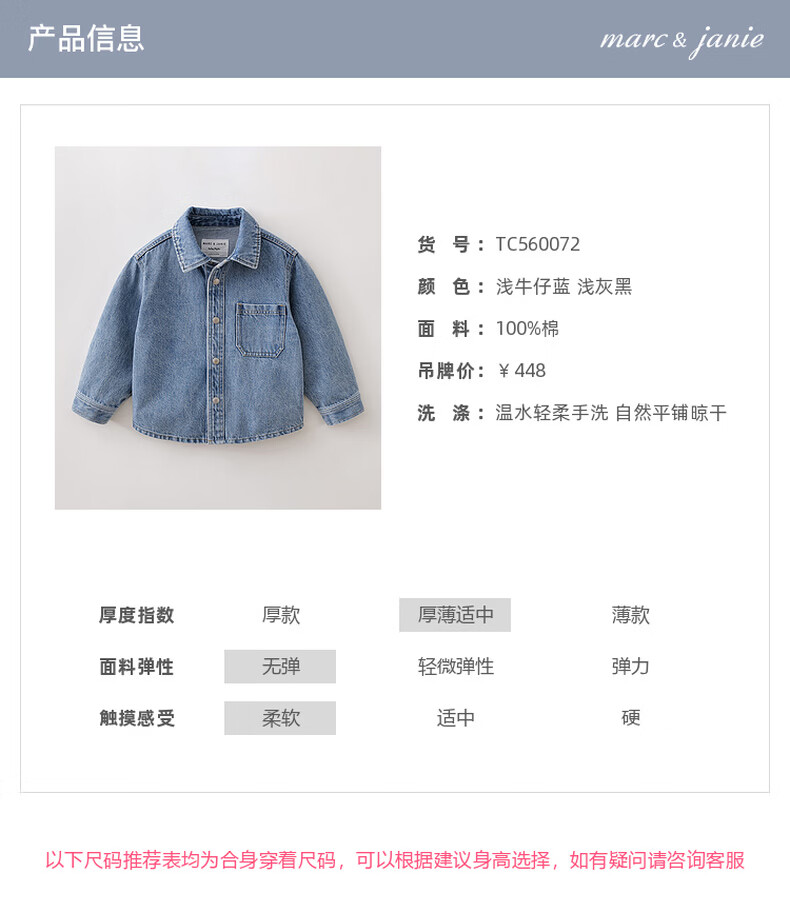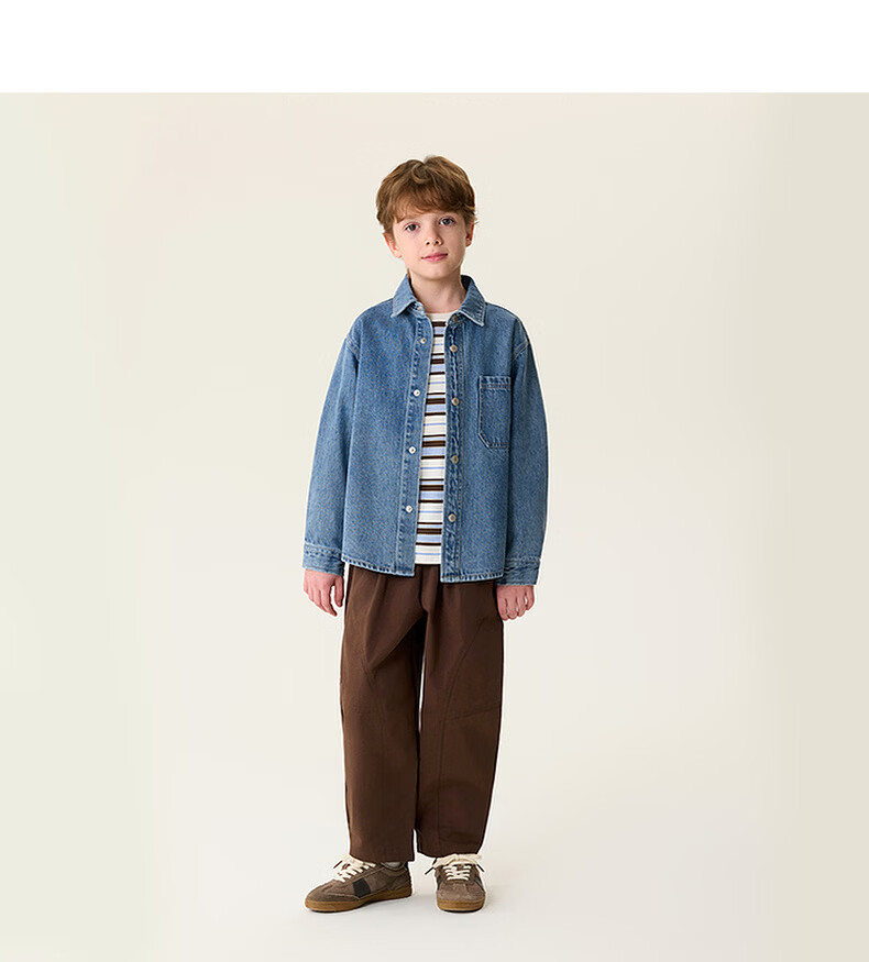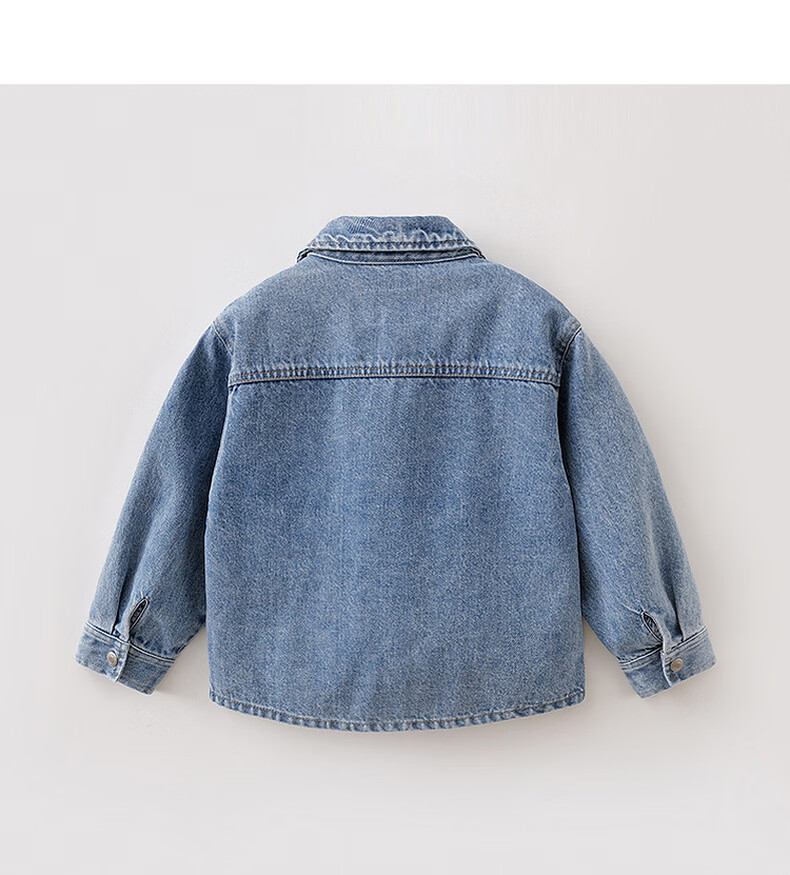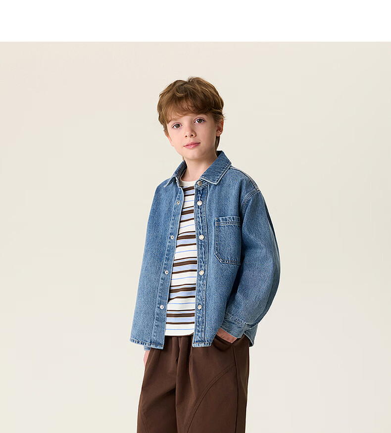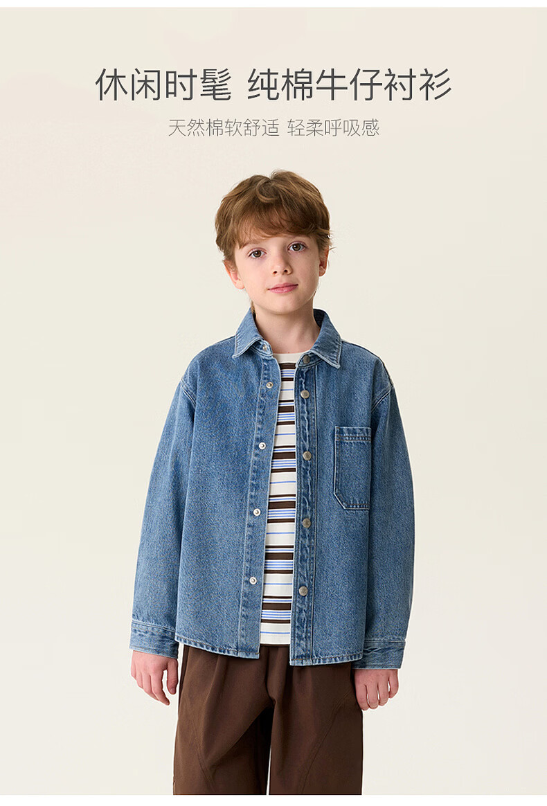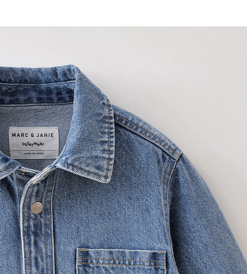 MARC&JANIE Mark Jenny casual and fashionable boys' pure cotton denim shirt children's jacket 2026 spring new style 560072 light gray black 130 (recommended height 121-130)