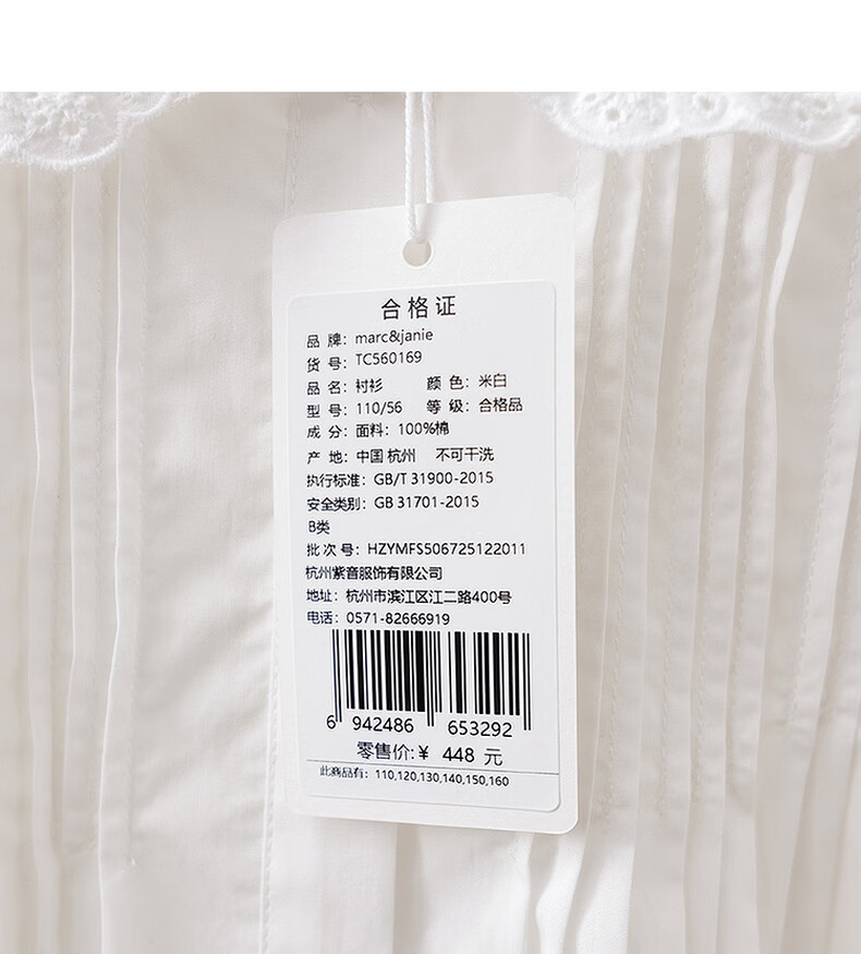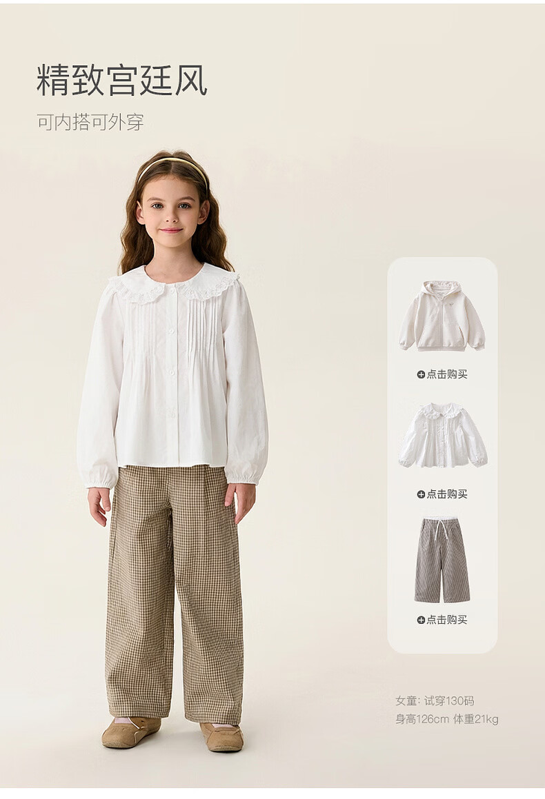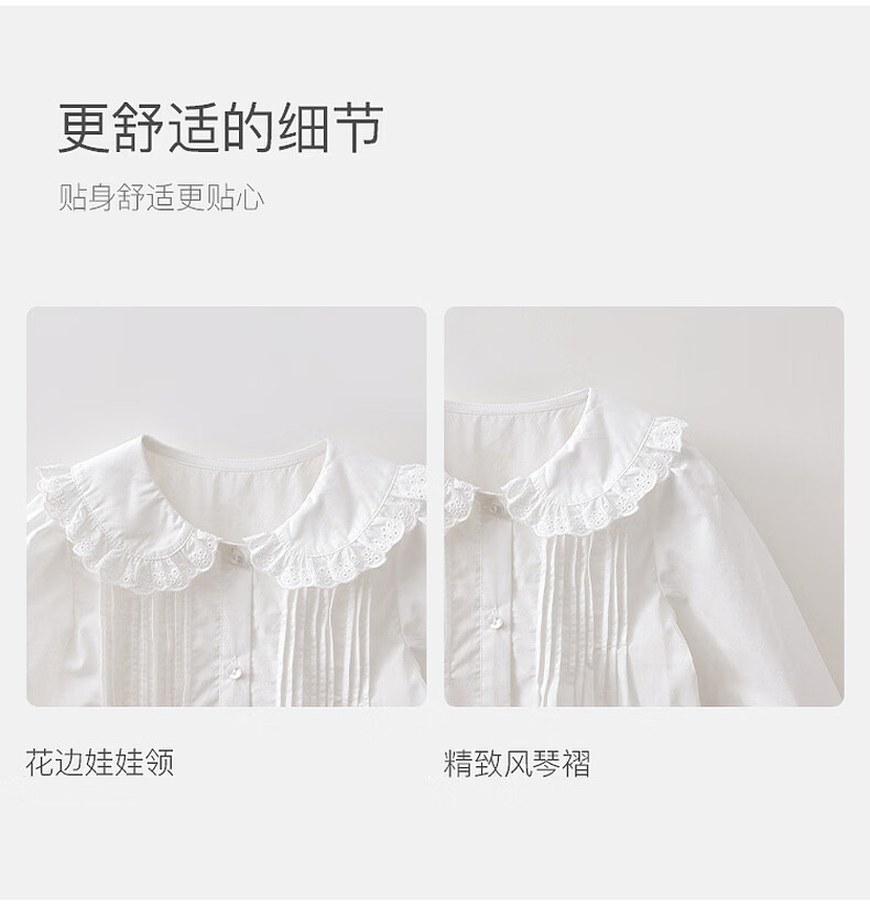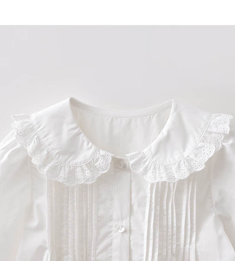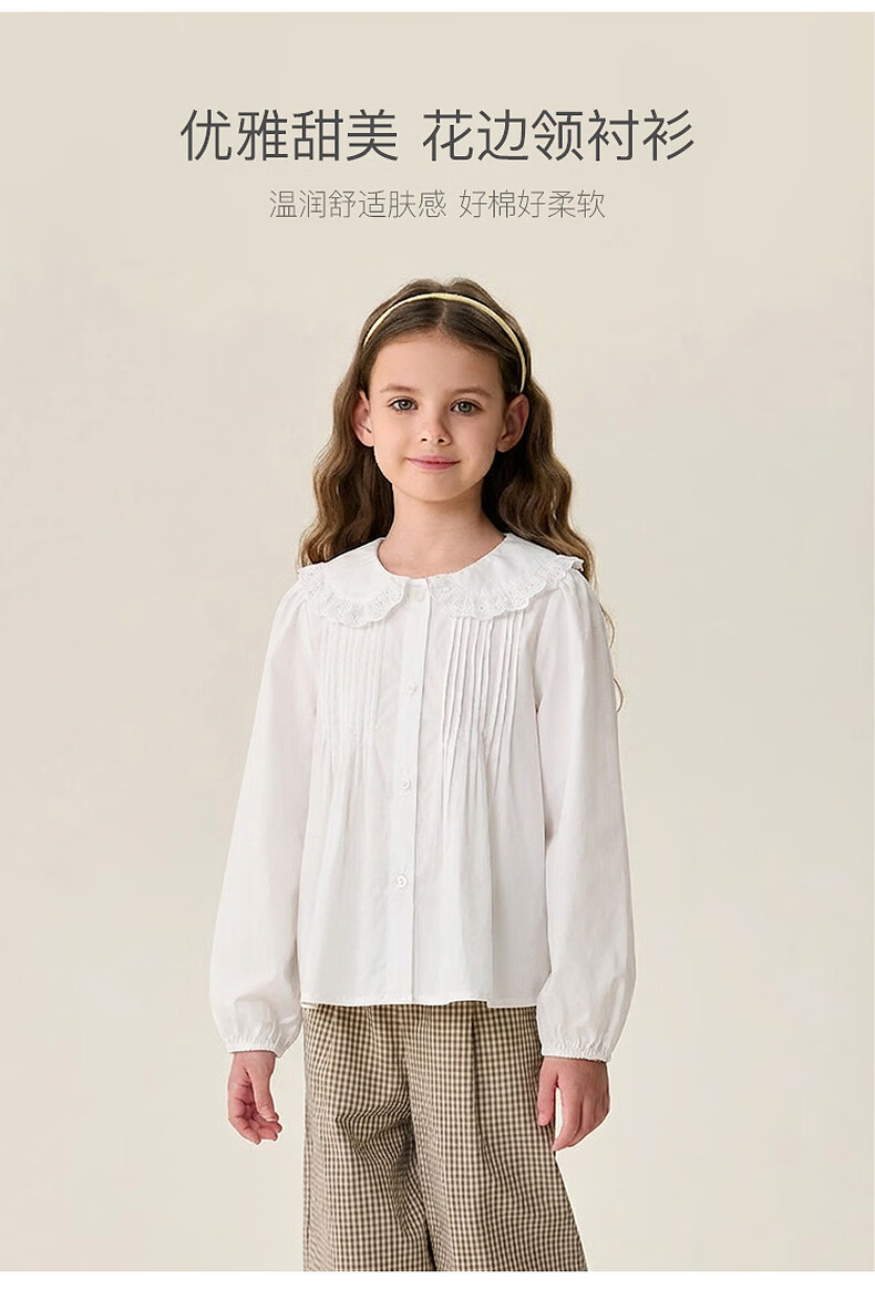 MARC&JANIE Elegant and sweet girls pure cotton collar shirt 2026 spring new style 560169 off-white 110 (recommended height 101-110)