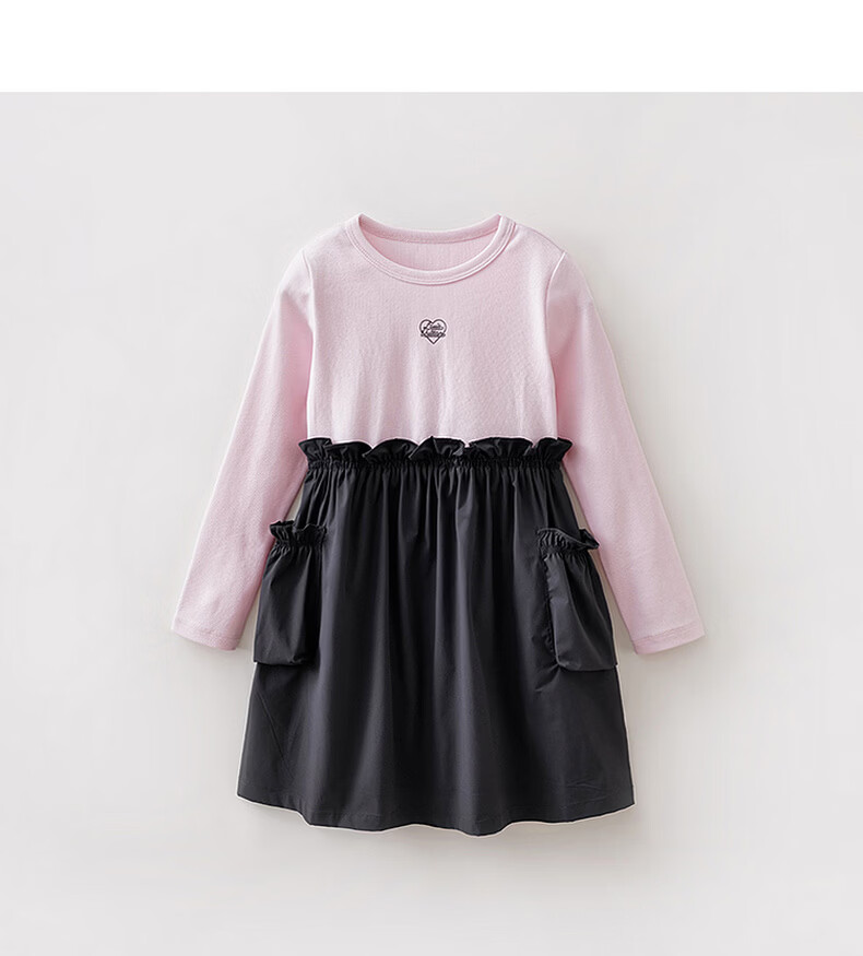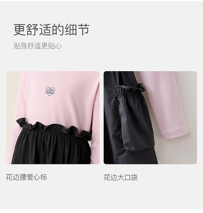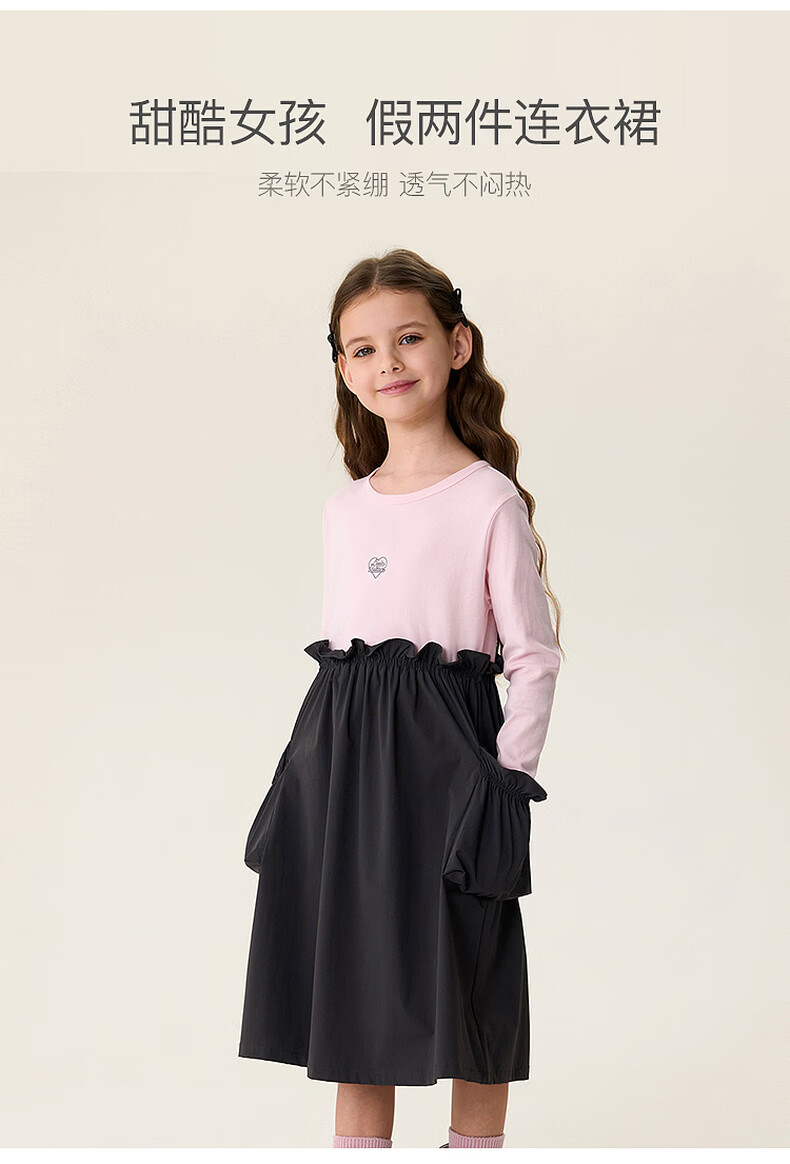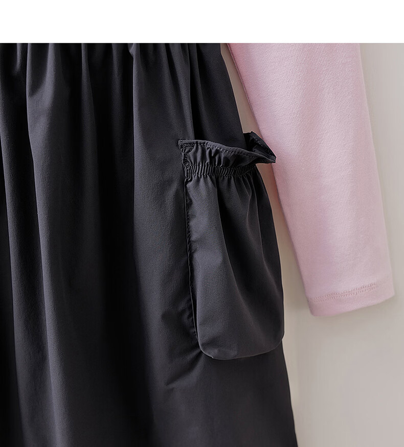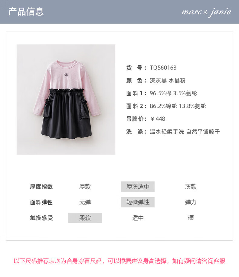 MARC&JANIE Sweet cool girl's lace fake two-piece dress Children's skirt spring new style 560163 dark black gray 110 (recommended height 101-110)