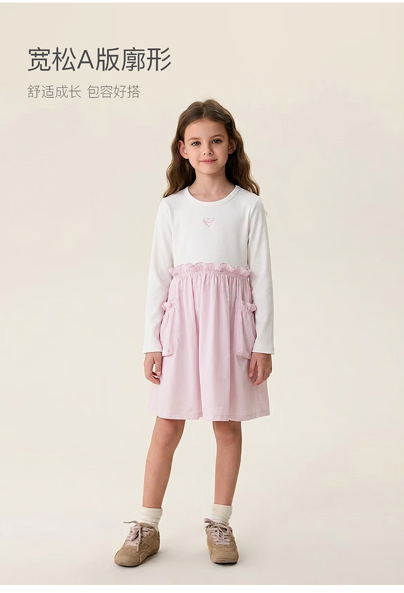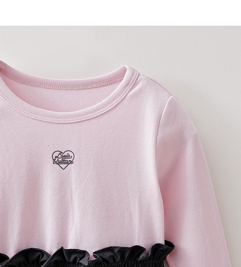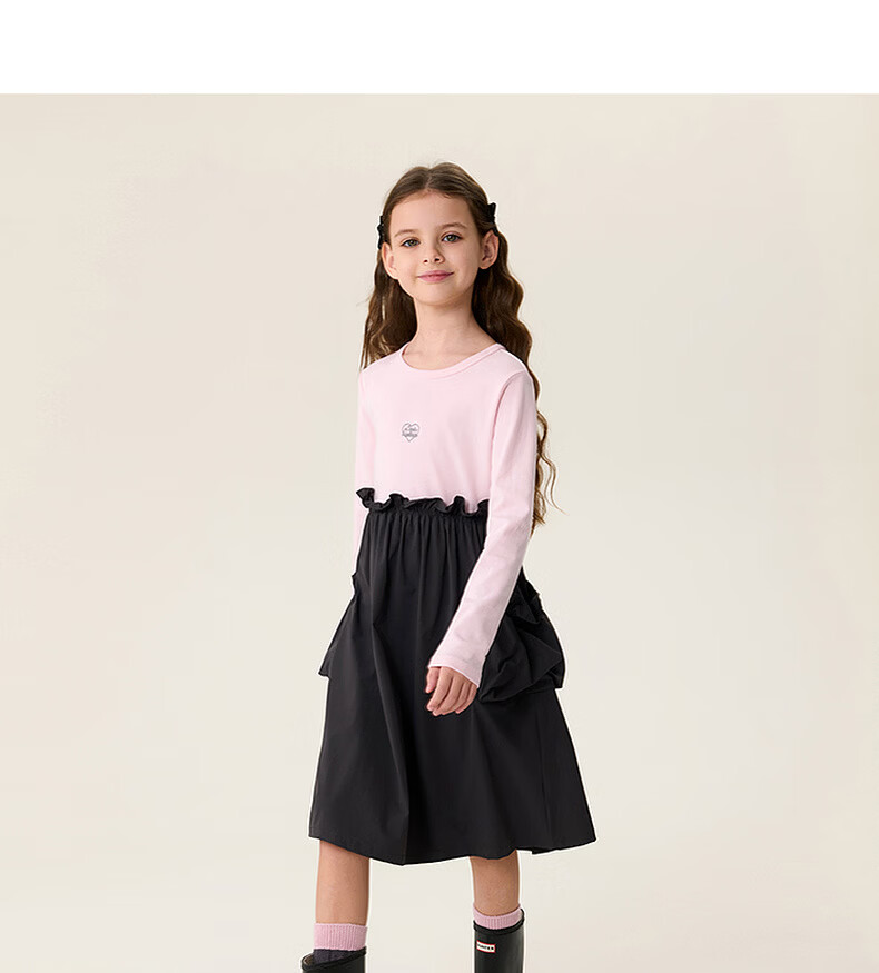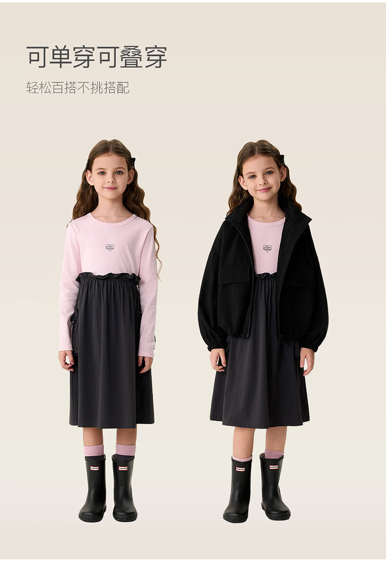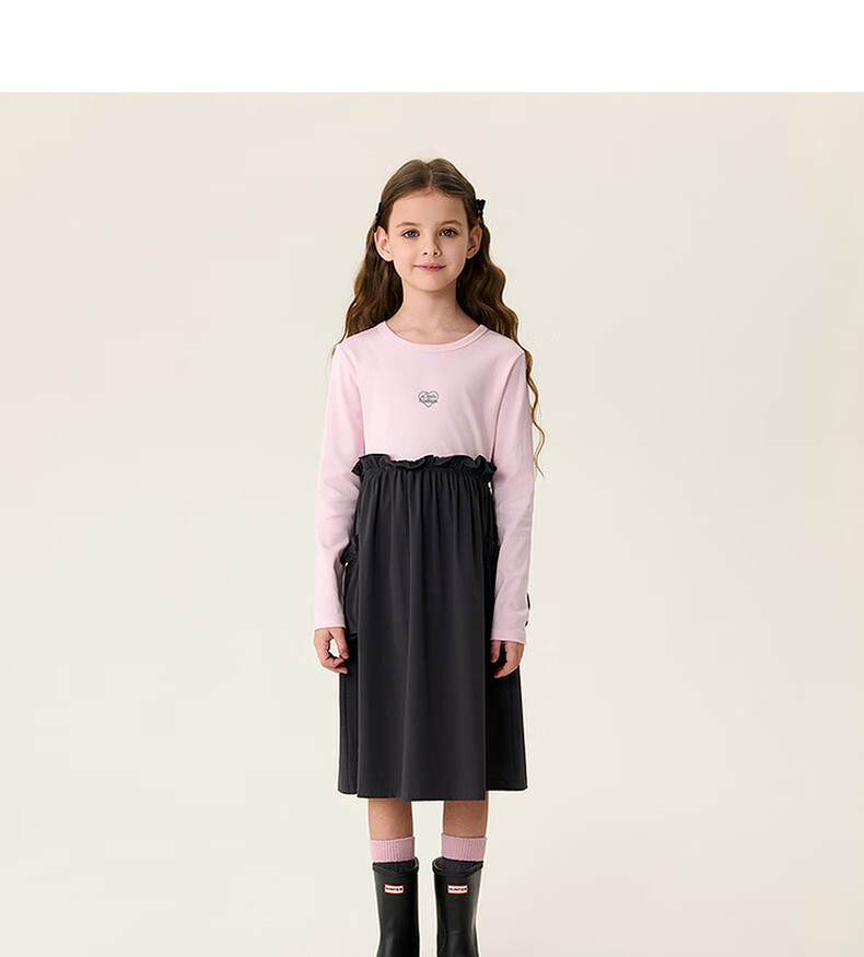 MARC&JANIE Sweet cool girl's lace fake two-piece dress Children's skirt spring new style 560163 dark black gray 110 (recommended height 101-110)
