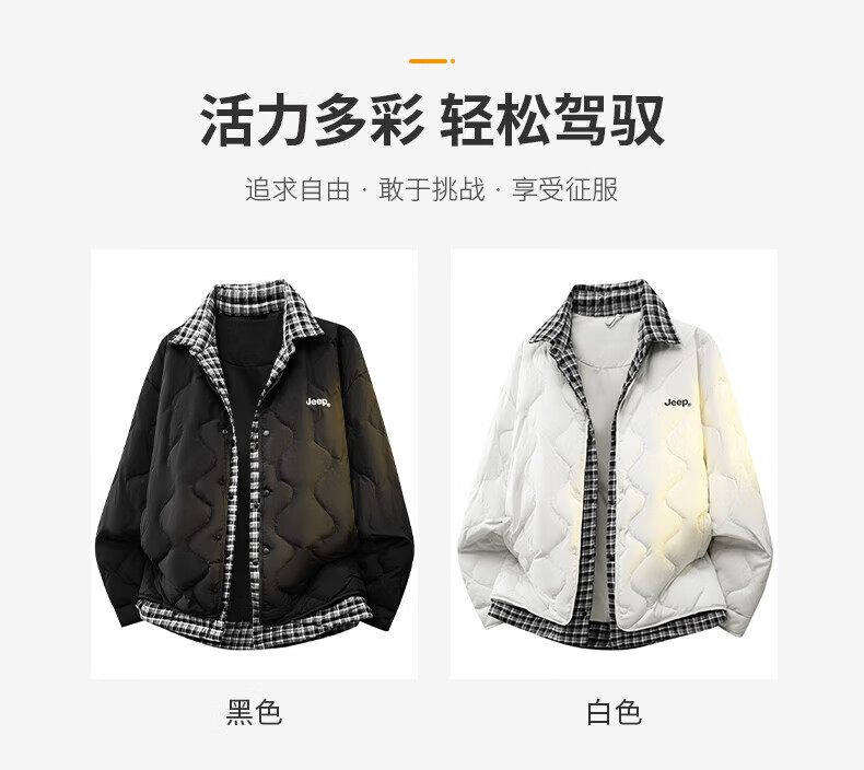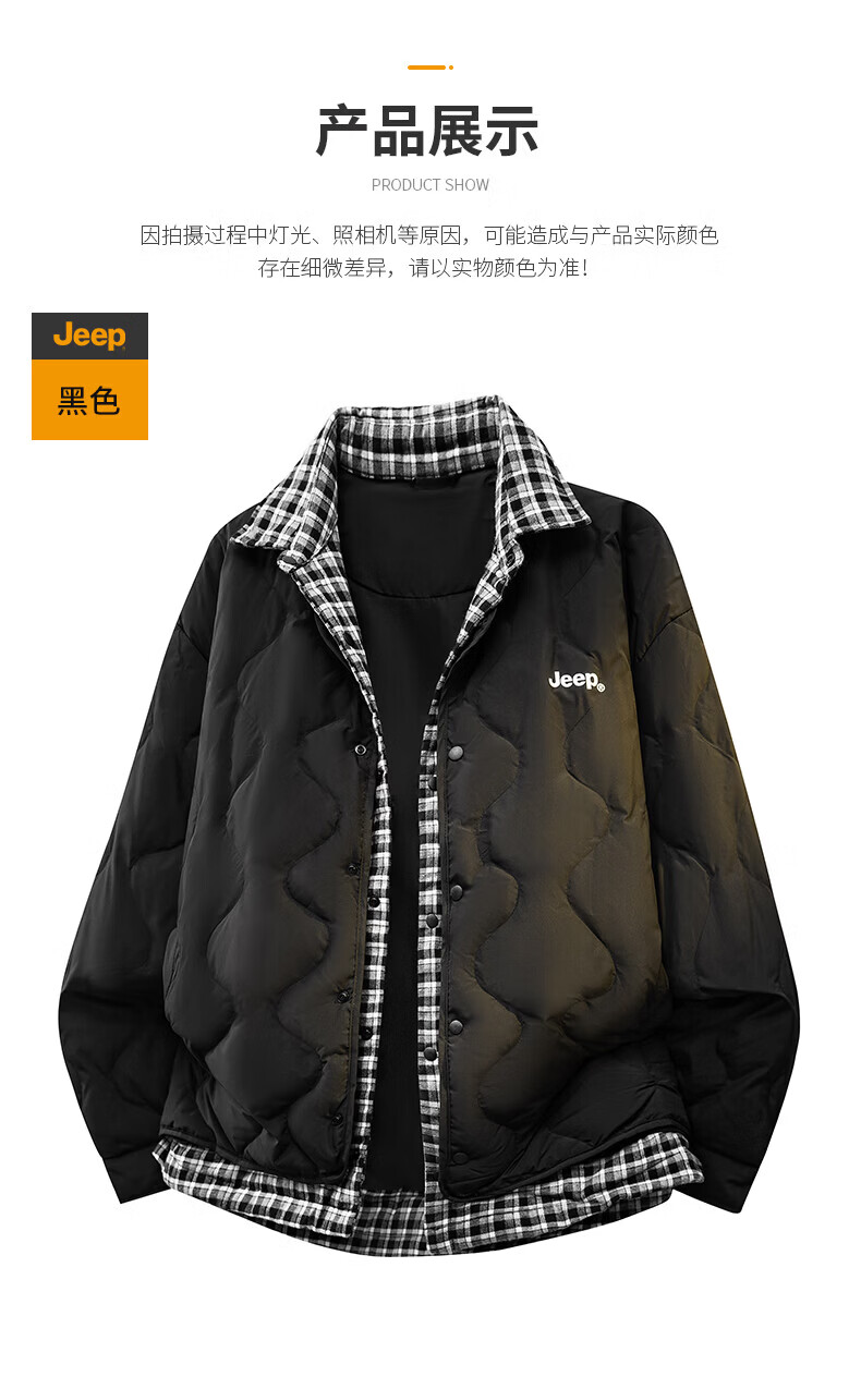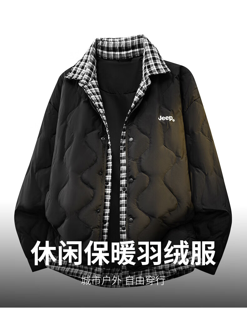 JEEP American genuine high-end fake two-piece down jacket winter new warm men's clothing casual lapel warm jacket black official authentic L