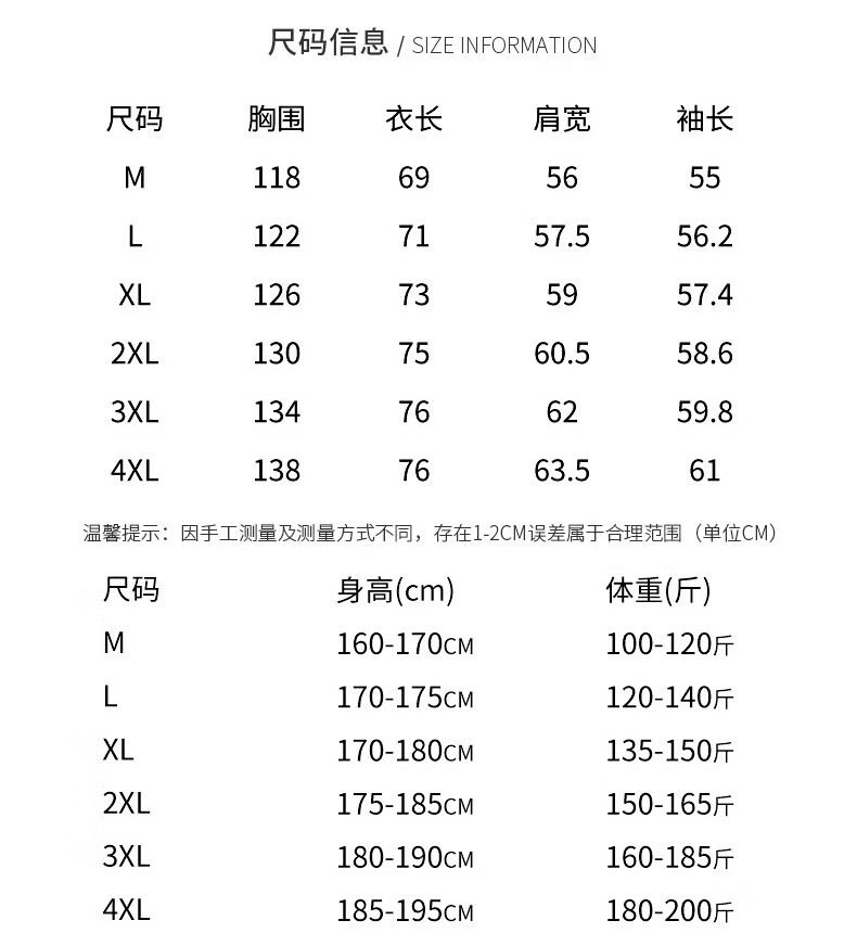China (cm) 165 / 88-90 170 / 96-98 175 / 108-110 180 / 118-122 185 / 126-130