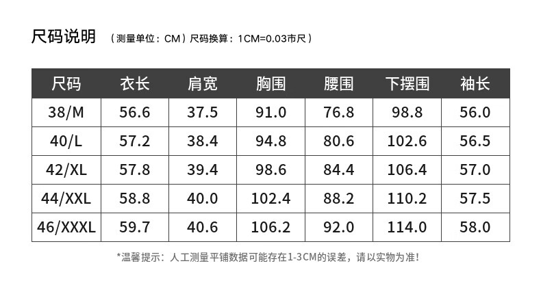 Size (cm) 42 44 46 48 50