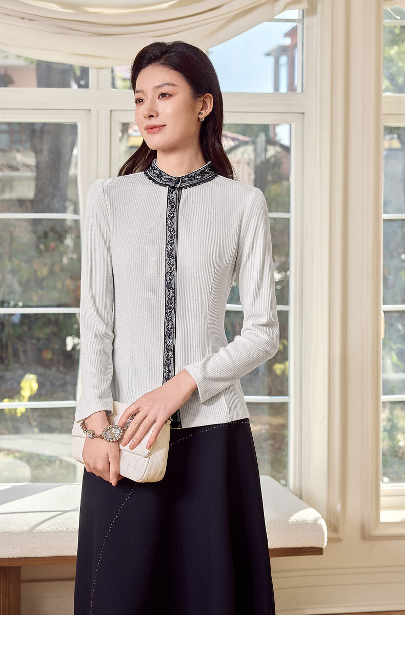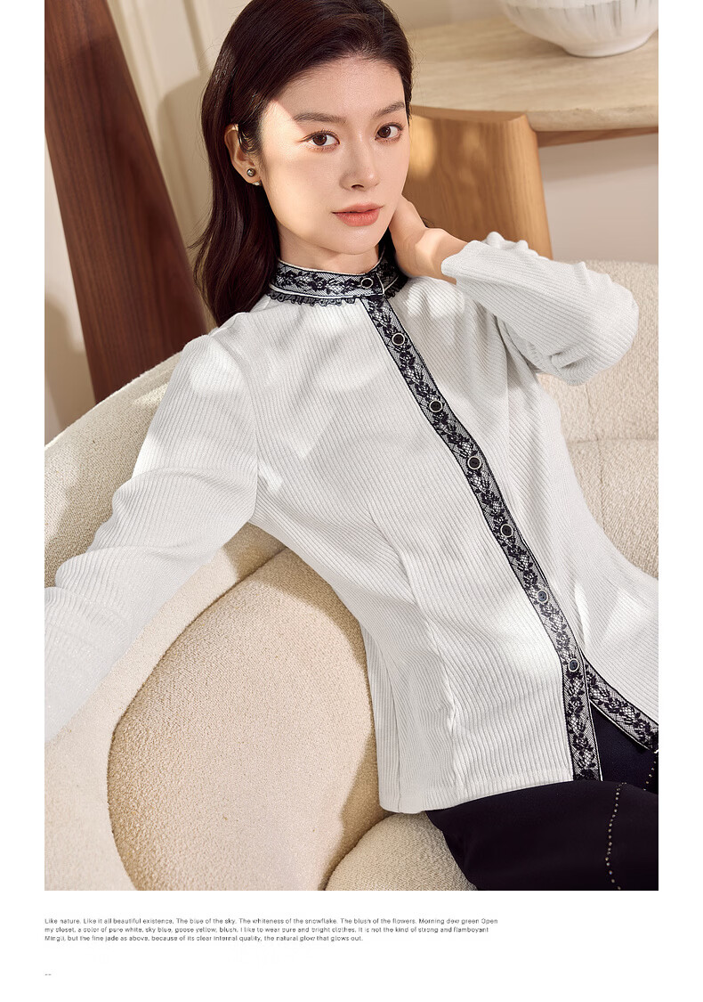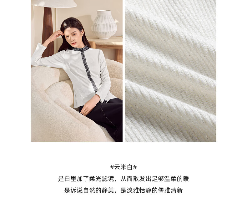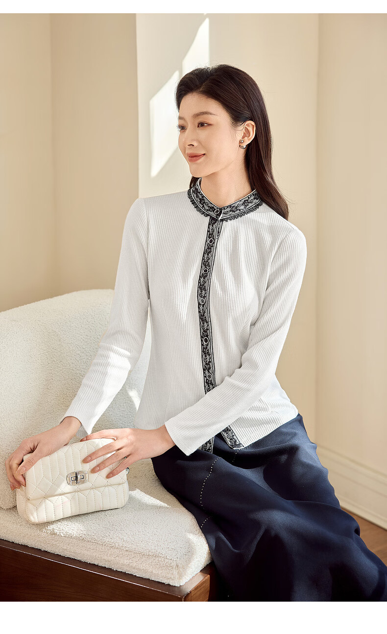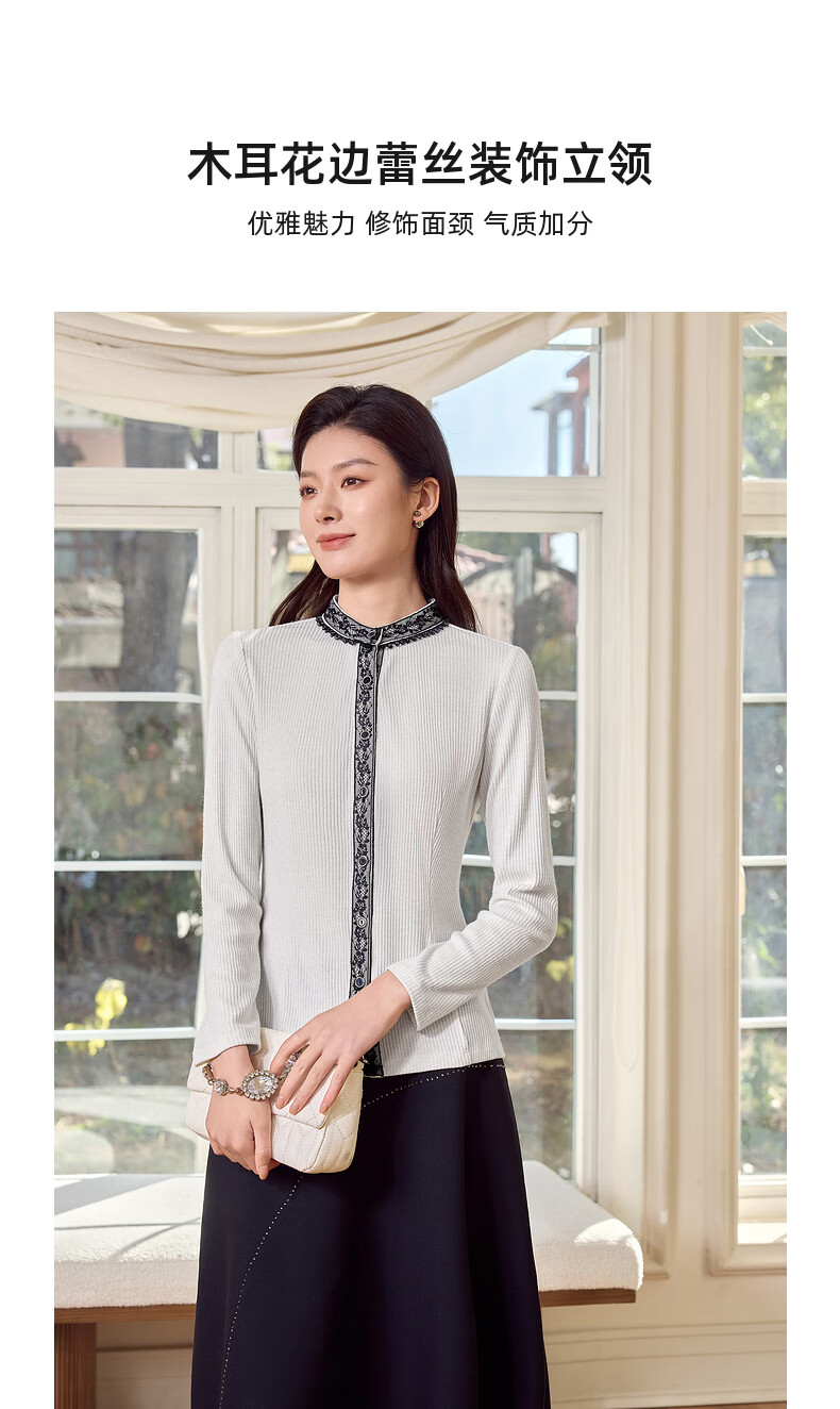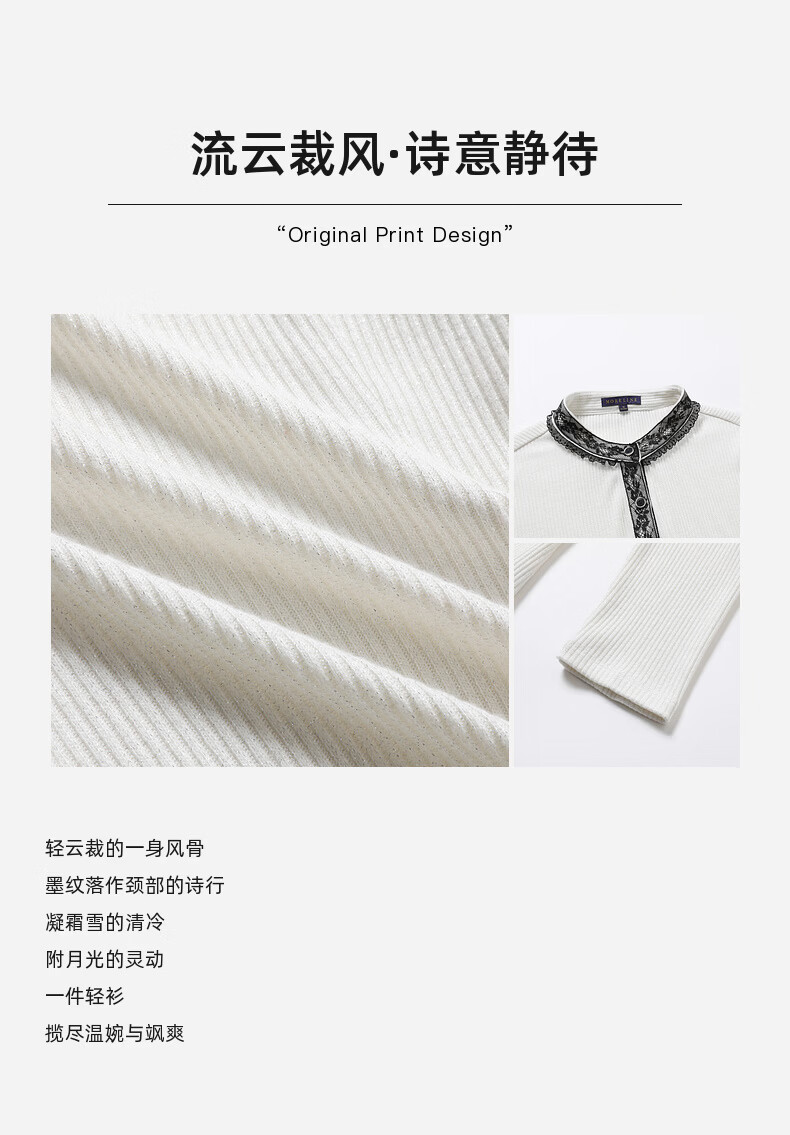 MORELINE Mulan Light Luxury Elegant New Chinese Style Silver Knitted Shirt Women's 2026 Spring New Age-Reducing Whitening and Slimming Shirt Yunmi White M