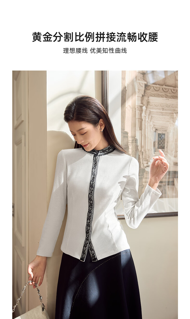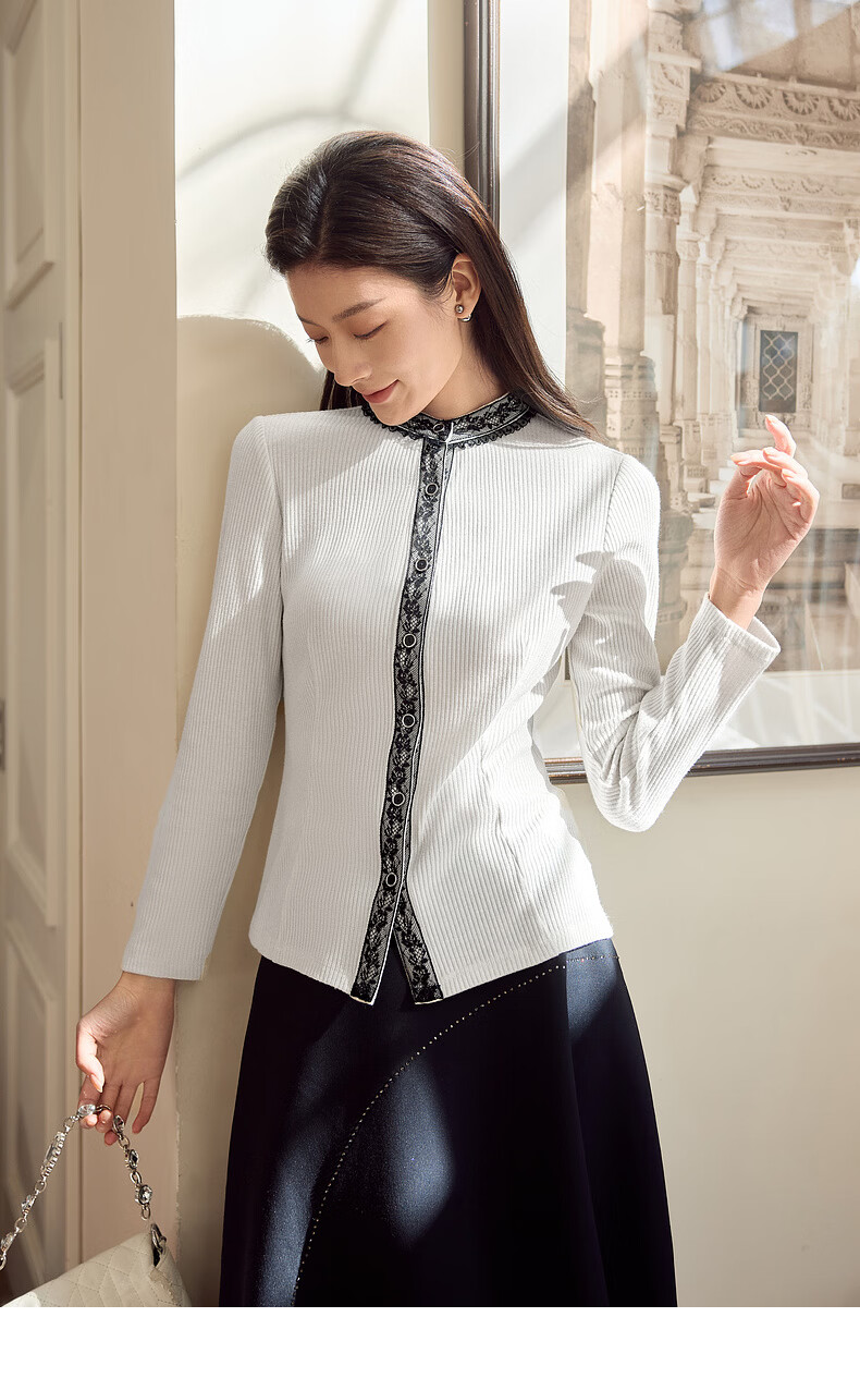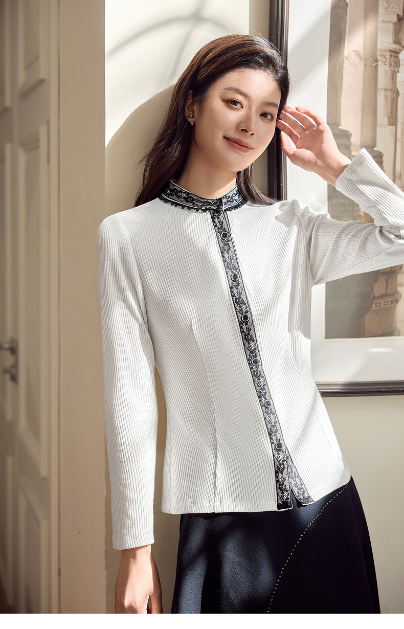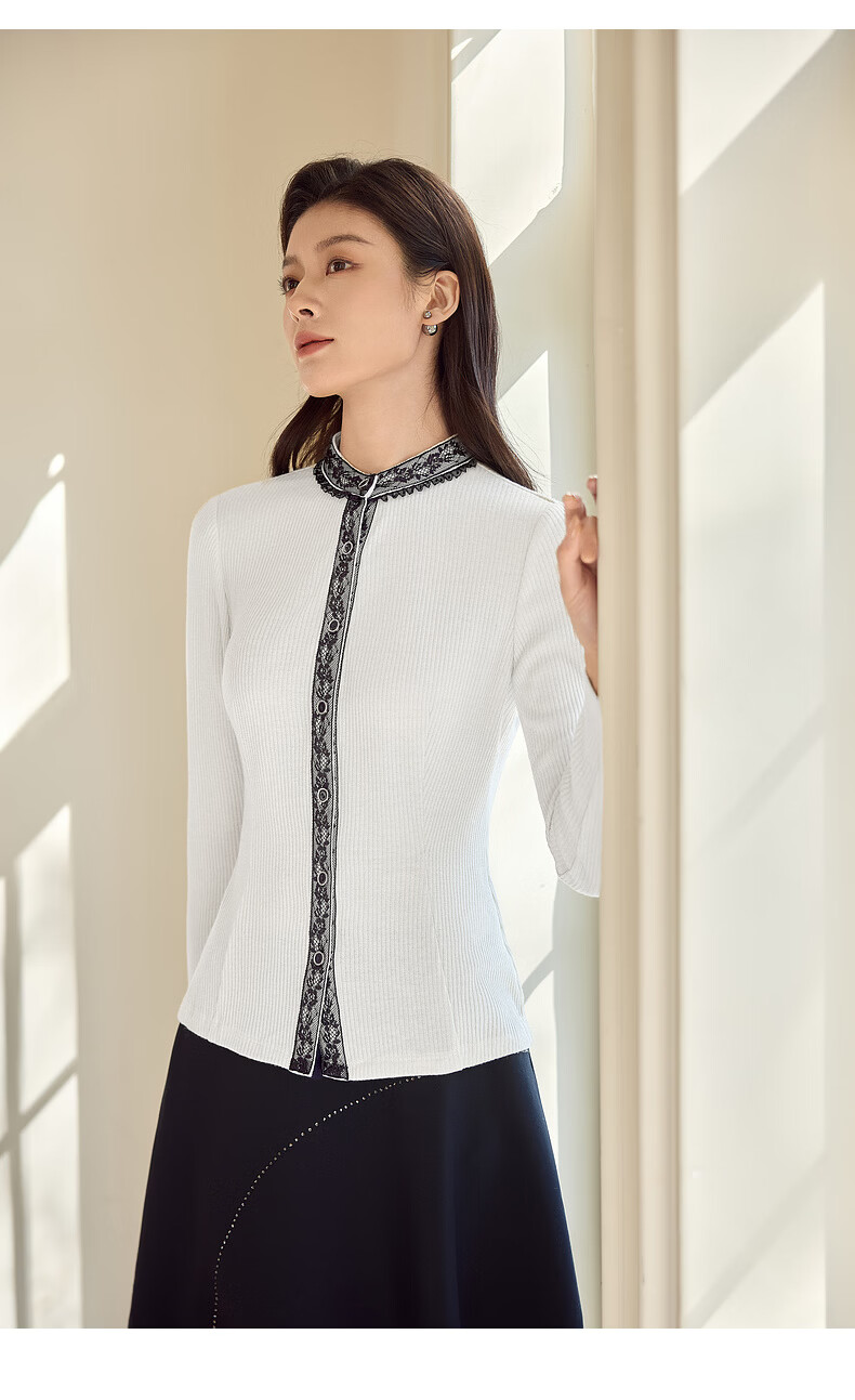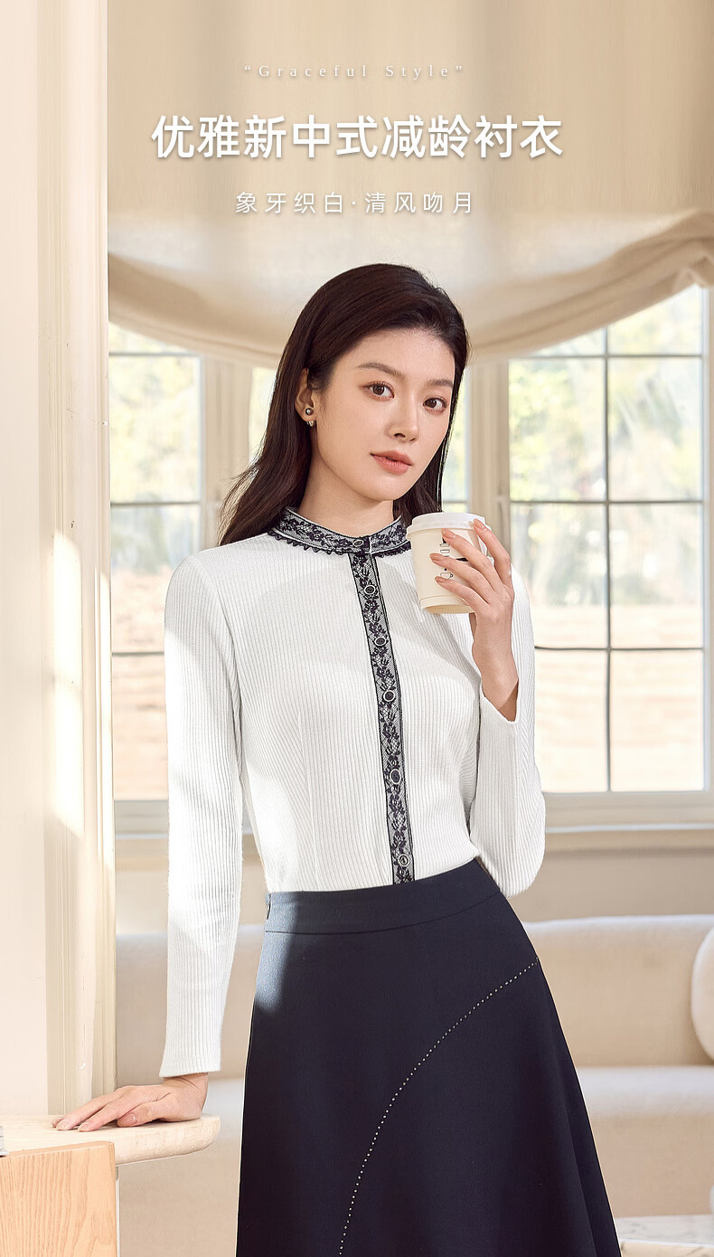 MORELINE Mulan Light Luxury Elegant New Chinese Style Silver Knitted Shirt Women's 2026 Spring New Age-Reducing Whitening and Slimming Shirt Yunmi White M