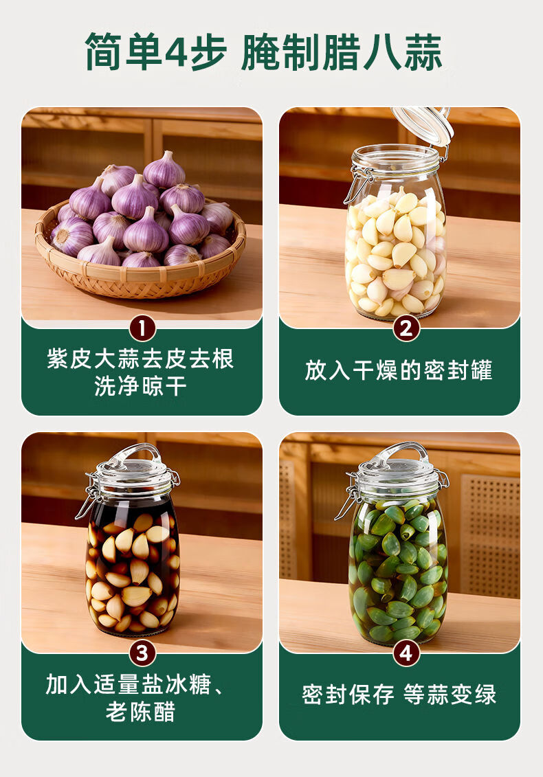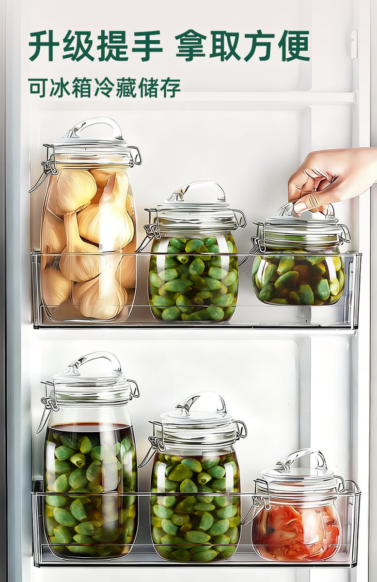 Fantasy Laba Garlic Sealed Jar Pickled Pickles Sugar Garlic Jar Pickled Laba Vinegar Empty Bottle Large Capacity Three-piece Set 750ml1000ml1600ml