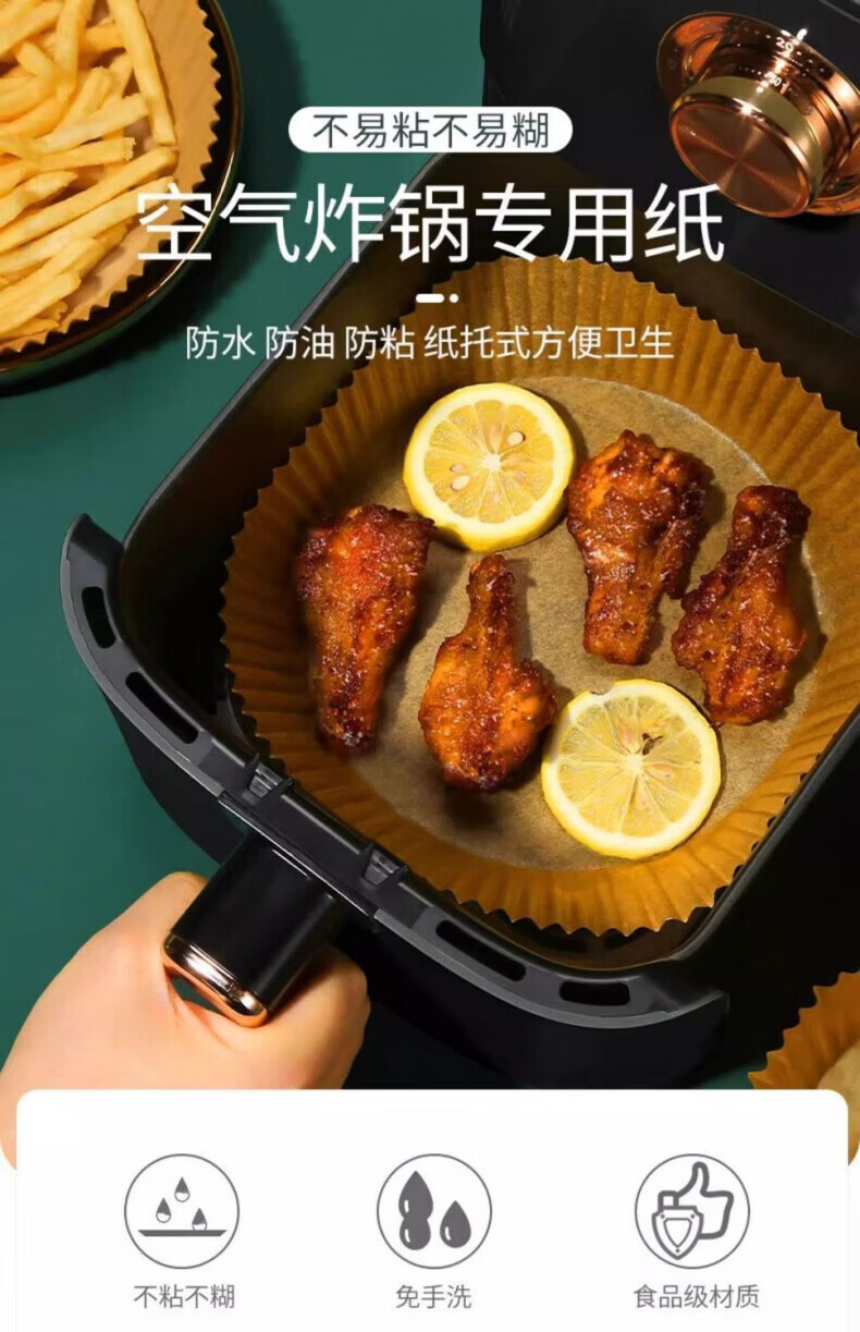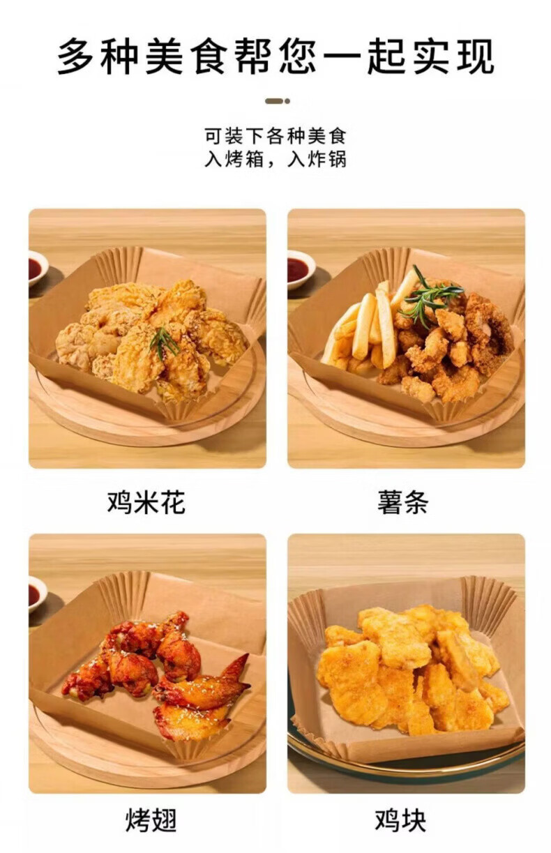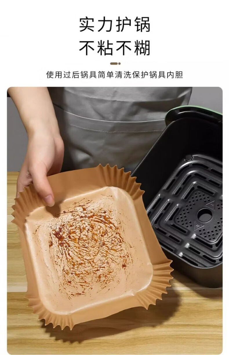 Jimang (JIMANG) air fryer special paper oven oil-absorbing paper household food tin foil bowl electric fryer square baking silicone paper 100 sheets square blister shell dust-proof and anti-deformation 3-5 liter fryer