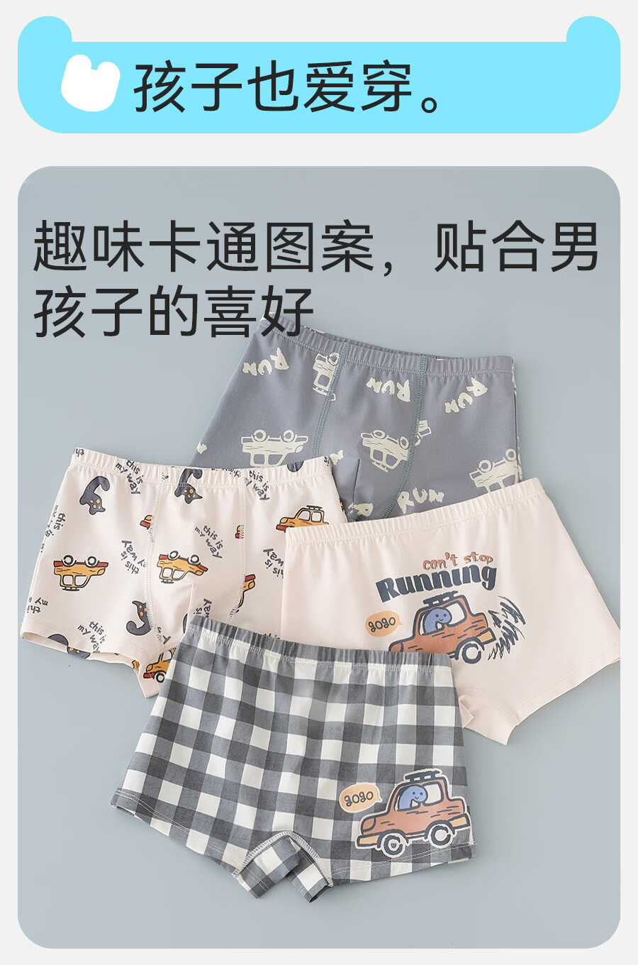 Mianqi Xiong boys' underwear, children's pure cotton type A boxer briefs, baby cotton boxer briefs, big children's boy shorts without buttocks G078-4 pack, type A pure cotton 10A antibacterial 120 - Height 110-125cm Weight 35-45Jin Jin is equal to 0.5kg